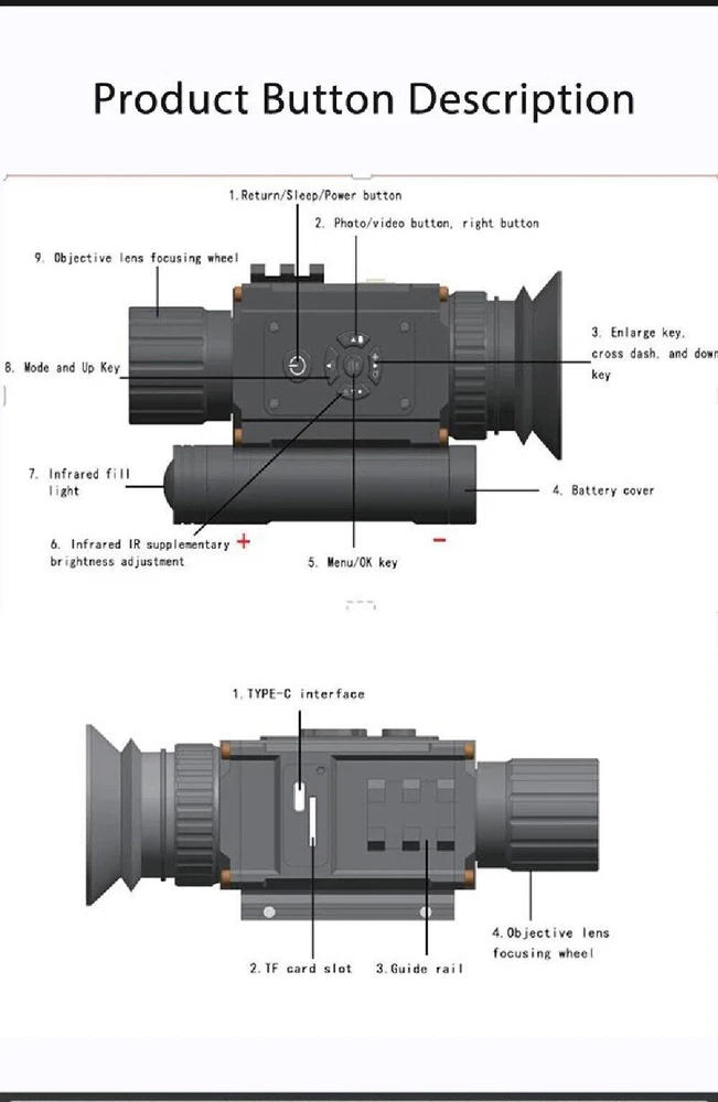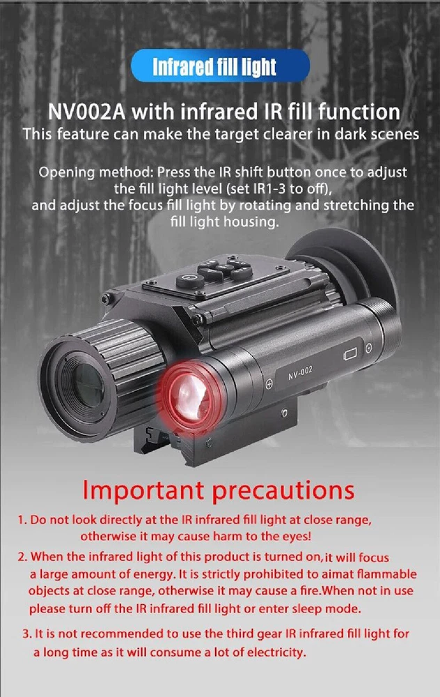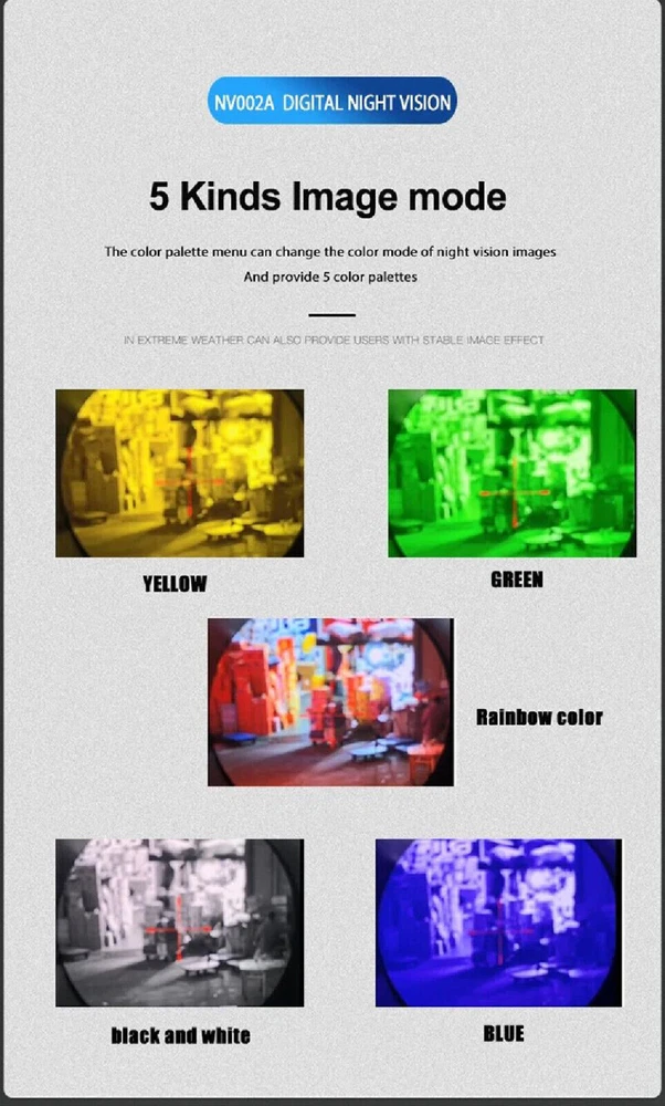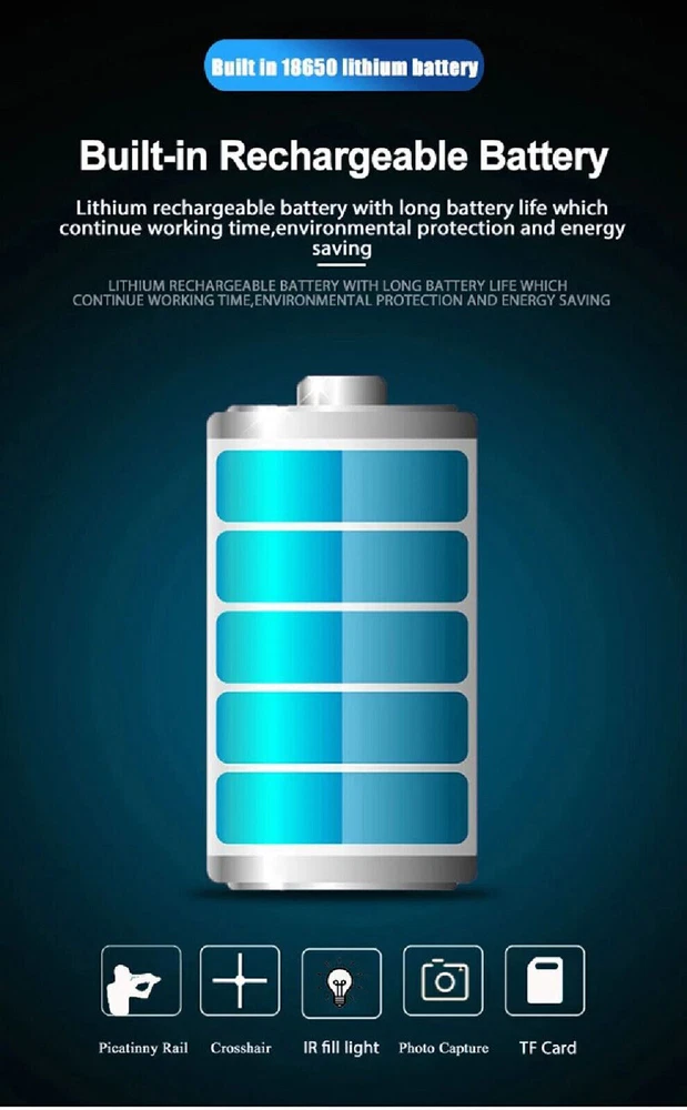 You may also like Tactical 3X Magnified 3x44RD Adjustable Red Green Dot Reflex Sight Optic Scope 28.89 USD Free shipping Fiber Optic Glock Sights For Standard Glock 17, 19, 22-27, 33, 34, 35, 38, 39 8.09 USD Free shipping Tactical Green Laser Sight Rifle Dot Scope + Switch+Picatinny Rail+Barrel Mounts 17.99 USD 2.0 USD 4X20/3-7X28/3-7X20 CROSSBOW AIR GUN RIFLE HUNTING SCOPE with Dovetail Ring Mount 11.69 USD Free shipping HD 4-16x44 Long Eye Relief Hunting Tactical 1/4MOA Optic Riflescope Fit .556.308 42.99 USD Free shipping 558 Holographic Red Dot Sight Green Dot EXPS3-2 Scope Weapon 44.99 USD Free shipping Red Dot Reflex Sight Scope for Pistol Glock 17 19 W/20mm Mount Mini 29.88 USD Free shipping Tactical 558/G43/G33 5X/3X Magnifier Sight Scope Clone w/ Quick Detach 20mm Rail 44.99 USD Free shipping Red Green Dot 551 Holographic Scope Sight For Rifle 20mm Rail Mount 31.99 USD Free shipping New Red Green Dot Sight Tactical EXPS3-2 Holographic Sight Hunting Rifle Scope 44.99 USD Free shipping 3-9X40 Rifle Scope Mil-Dot Reticle Optics Scope W/ Mounts - Adjustable Objective 36.99 USD Free shipping Megaorei 2 Night Vision Scope 850nm IR HD Camera DVR 720P Wildlife Scope 89.99 USD Free shipping Reflex Red Dot Sight Scope for Pistol Glock 17 19 with 20mm Mount A 29.88 USD Free shipping Red Dot Reflex Sight 3.25 MOA with Weaver Picatinny Mount Glock Pistol Scope 27.88 USD Free shipping Hunting G45/G43/G33 5X/3X Sight Magnifier Scope Clone Quick Detach QD 20mm Rail 55.99 USD Free shipping For 20mm GLOCK 17 19/Hunting Rifle RMR Red Dot Sight Collimator Sight Scope Mini 29.88 USD Free shipping NV002 Night Vision Rifle Scope / Handheld Monocular 4X Magnification With Built-in Crosshair Reticle Offer Details: Model Number: NV002 Reticle: Yes - Crosshair Color modes - 5: Green & black, white & black, yellow & black, blue & black, rainbow Size: 120 x 50x98 mm Weight: 260g Focusing minimum: 3cm Type: Monocular Magnification: Digital Zoom 4X Effective Visual Distance: 300m Operating Voltage: 3.7v Infrared wavelength: 850nm Infrared power: 3w Video format: MP4 Storage type: TF Card Transmission method: TYPE C Infrared range: 200m - 250m Video resolution: 1920*1080 Photo resolution: 3072X1728 Battery: rechargeable Battery Display resolution: 454x454 Frame rate: 30fps This Exclusive eBay Offer Includes: NV002: 1x Monocular 1x High Powered IR Torch 1x Rechargeable battery You may also like Red Laser Beam Dot Sight Scope For Gun Rail Pistol Weaver Hunting 11/20mm Rail 8.88 USD Free shipping 3.7V Universal Rechargeable Battery Charger for 16340 14500 Li-ion USB Cable 2.49 USD Free shipping Mini 800 Lumens LED COB Flashlights Bright Rechargeable Keychain Work Lamp lot 6.24 USD Free shipping 20mm Riser Mount Picatinny Weaver Rail Scope Extension Riser Base Mount Adapter 10.49 USD Free shipping Mini Red Dot Reflex Sight Scope 20mm Mount Glock 17 19 Pistol Rifle 29.88 USD Free shipping 2.4'' Digital Camera 32GB HD 1080P 44MP LCD Display Screen 16X Zoom Anti-Shake 29.99 USD Free shipping Green Laser Pointer Visible Dot Light 532nm 10 Watt USB Rechargeable 31.99 USD Free shipping Tactical ARC Accessory Rail kit for ACH / MICH Combat Helmet USA 12.99 USD Free shipping Mini COB Work Light Rechargeable LED Flashlight Portable Keychain Torch Lamp US 2.18 USD Free shipping Tactical 3X Magnified 3x44RD Adjustable Red Green Dot Reflex Sight Optic Scope 28.89 USD Free shipping LED Torch UV Light Ultra Violet Blacklight LED Pocket Flashlight Mini Torch 1.99 USD 0.99 USD Mini RMR Red Dot Reflex Sight Collimator Scope 20mm Rail For Glock 17 19 Hunting 27.88 USD Free shipping Fiber Optic Glock Sights For Standard Glock 17, 19, 22-27, 33, 34, 35, 38, 39 8.09 USD Free shipping Pistol Shotgun Rifle Barrel Mount Flashlight Scope Laser Tube Clamp Gun Adapter 4.89 USD Free shipping 9000 Mile Strong Pointer Pen 5mW 650nm Red Light Visible Beam Light Lazer 2.49 USD Free shipping Tactical Green Laser Sight Rifle Dot Scope + Switch+Picatinny Rail+Barrel Mounts 17.99 USD 2.0 USD