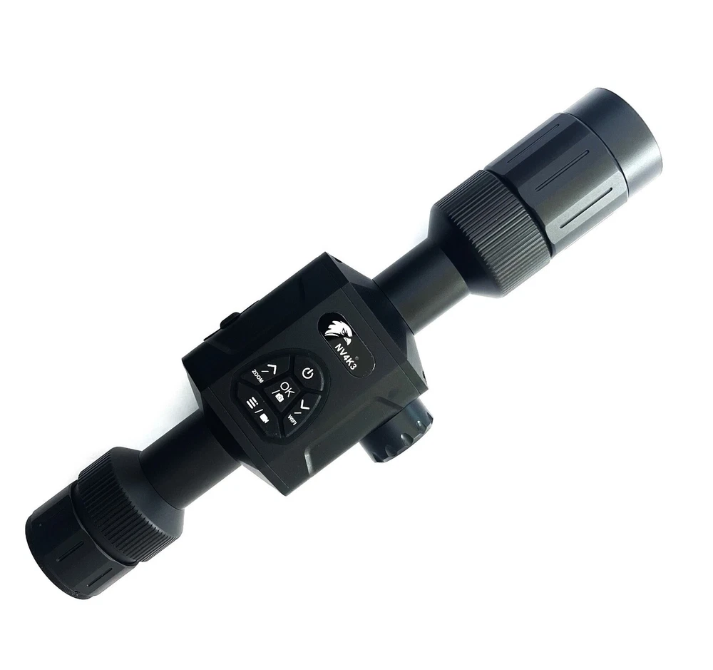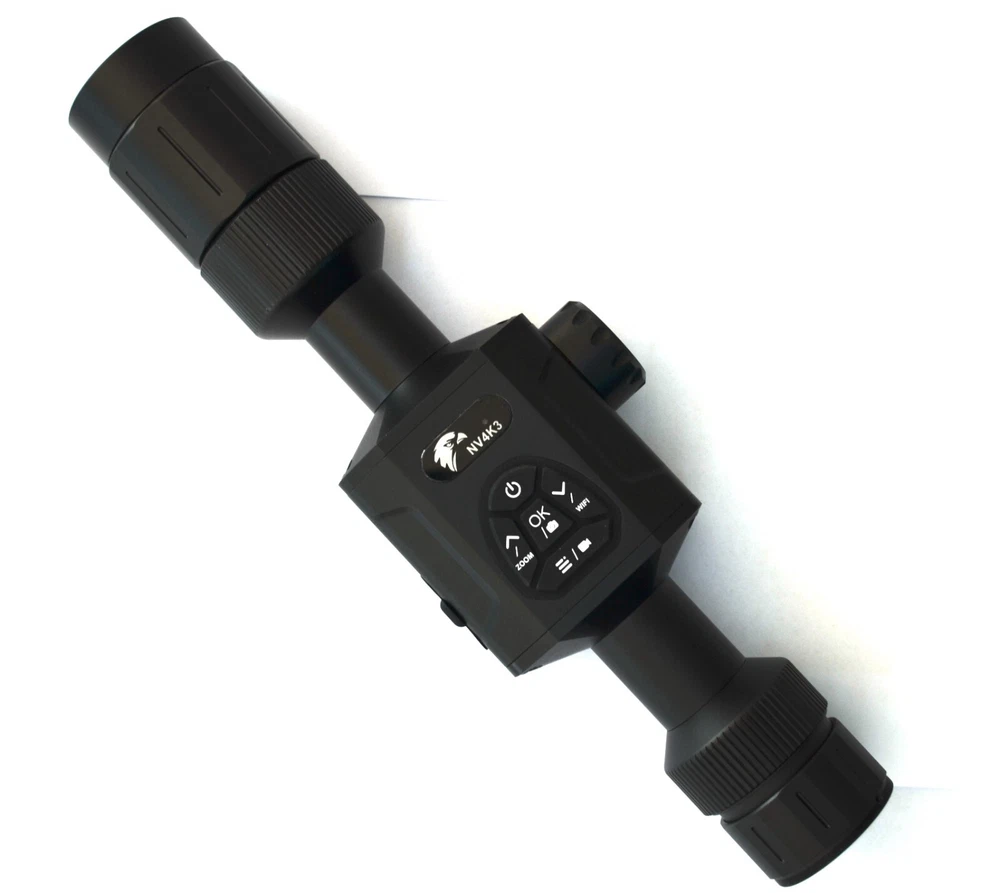4K resolution and 1024X768 high resolution OLED display 1: All housing material are aluminum and lenses material are glass, not plastic material. So strong enough to support impact resistance > 1000G/1ms. 2: Built-in WIFI allows real-time video streaming at your smartphone (default Wi-Fi Password: 12345678), Connect with Smartphone using Roadcam App,support IOS and Android. 3: 1024X768 dots high resolution 0.39'' OLED display. 4: Night vision distance up to 500m, thanks to the ultra low-light CMOS with external 850nm Infrared illuminator 5: High quality Japanese CMOS sensor with photo resolution at 3840X2160 pixels, record video at full HD resolution at 4k 6: 4X~ 16X magnification. 7: Compatible to common mounts and fixtures, can also be used with standard 21mm and 11mm rails 8: Eye relief up to 60mm 9: To adjust position of reticle (both day & night mode), simply tap the menu button and enter the "Reticle" > "Reticle adjustment" menu. Then you can adjust the crosshairs in both X and Y directions. 10: 18650 Lithium battery is not included due to shipping regulations See the future in high definition with thenew 4K infrared night vision scope. Hunt with an advanced 4K sensor, providing full-color clarity in daytime – with classic emerald or black and white viewing options, more clearly than 1080p digital scope, It has a 1024X768 dots high resolution OLED 0.39" display, more clearly and color fresh. It has classic shape and small size shape. Classic shape with 30mm rings to fix and a removable 850nm or 940nm IR Illuminator. All material are Aluminum and glass, impact resistance more than 1000G,