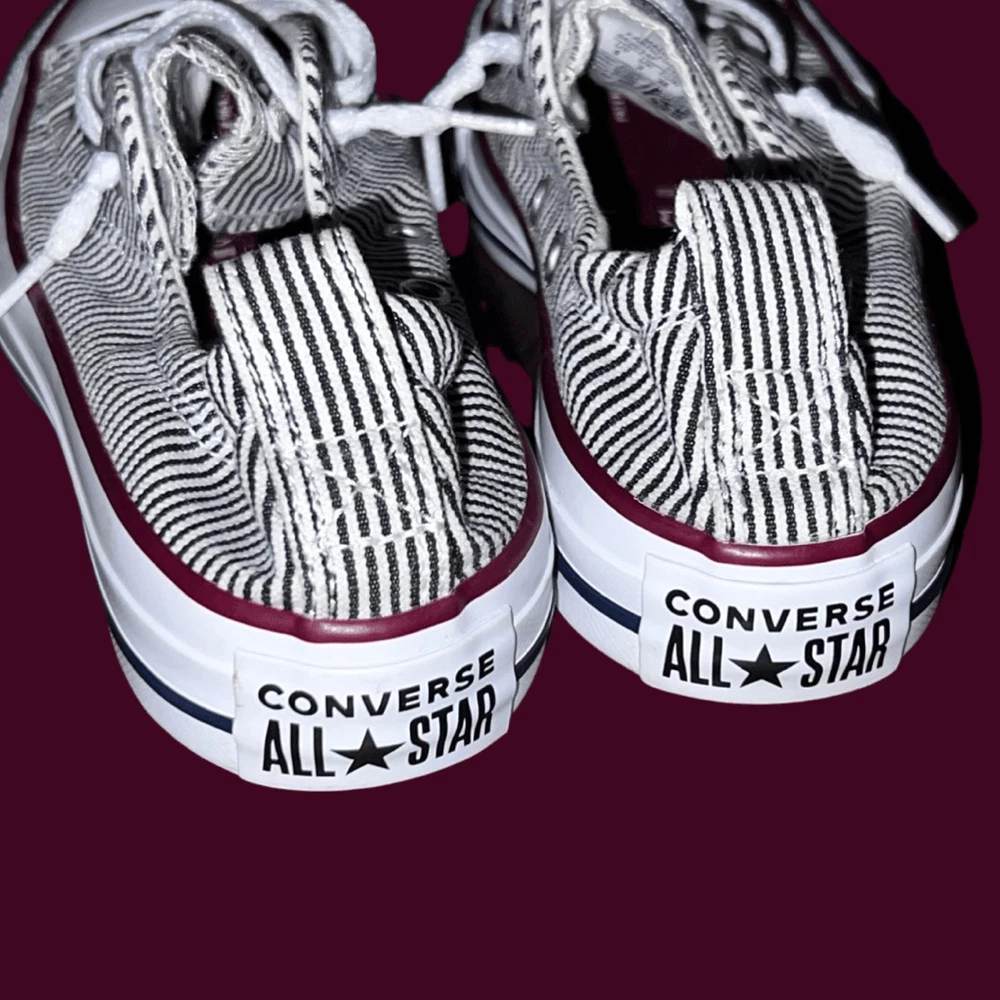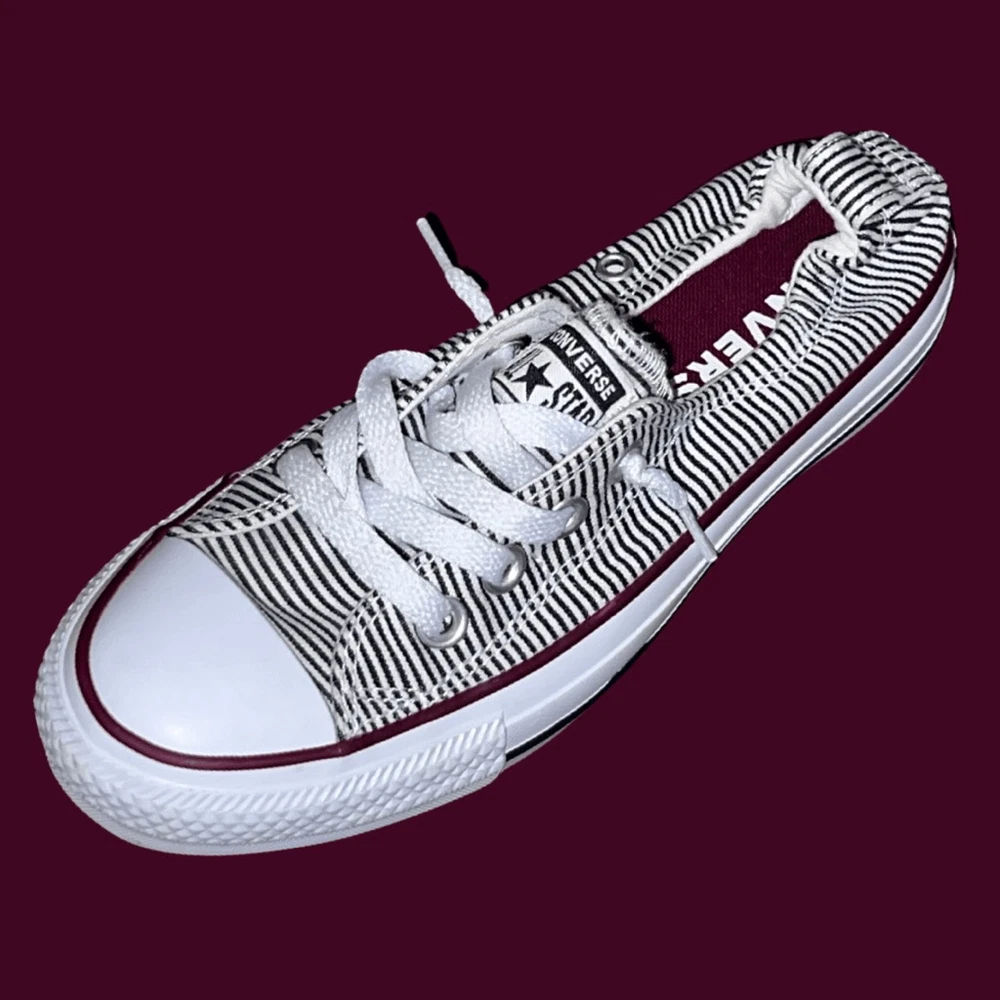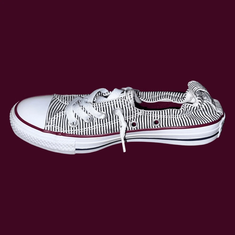 Women's Converse Chuck Taylor All Star Chambray Striped Shoreline Sneakers Size 5 SHOE FEATURES All-over tie-dye brightens the look up for the season SmartFOAM sockliner for comfort Softened stitching and lining SHOE CONSTRUCTION Canvas upper Mesh lining Foam midsole Rubber outsole Great Shape Clean Smoke Free Home Thanks For Looking!