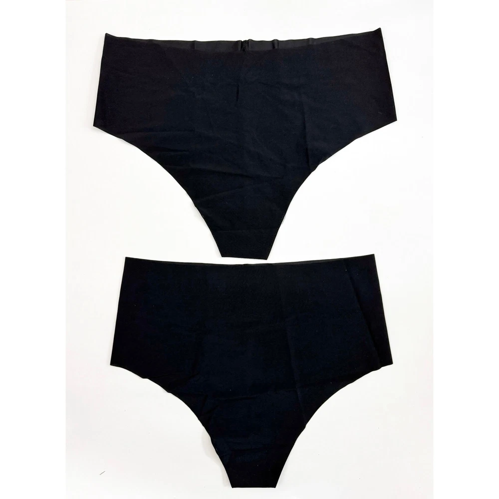 1 PAIR HIGH RISE, 1 PAIR MID RISE Luxury microfiber blend (78% nylon, 22% elastane) Fit-tested by real women Raw-cut edges without elastic, trim, or taping to eliminate digs and bulges Four-way stretch and high recovery High fabric breathability Fast drying Pilling resistant Machine washable