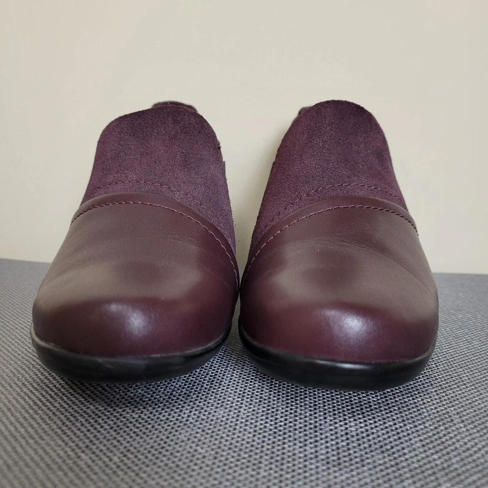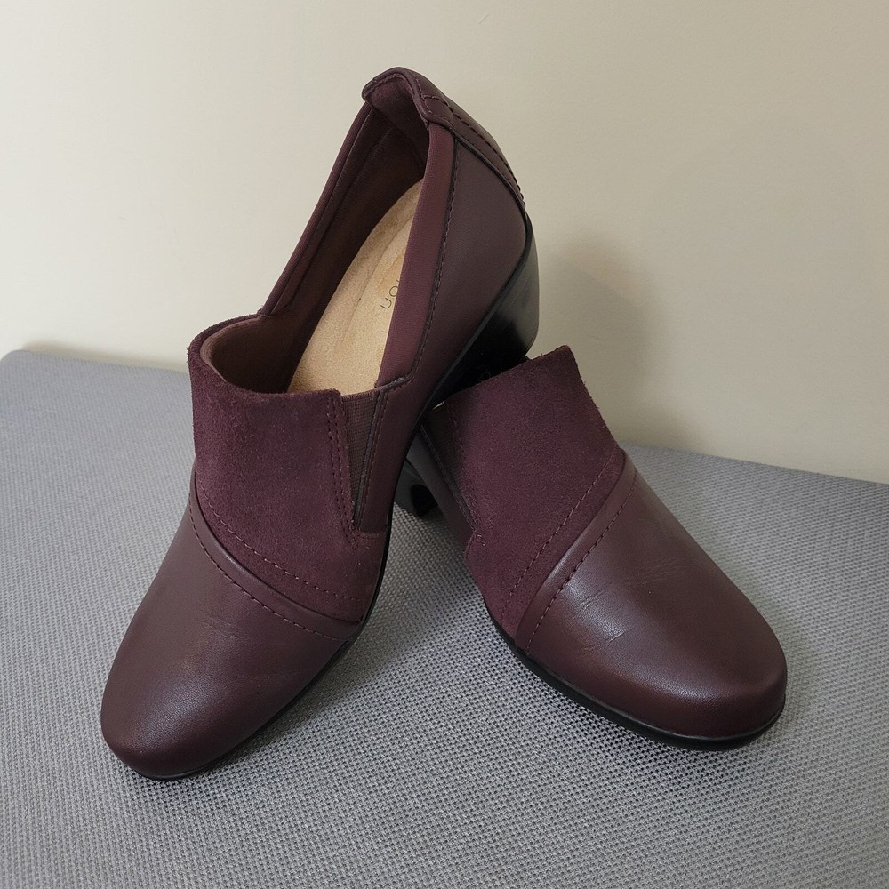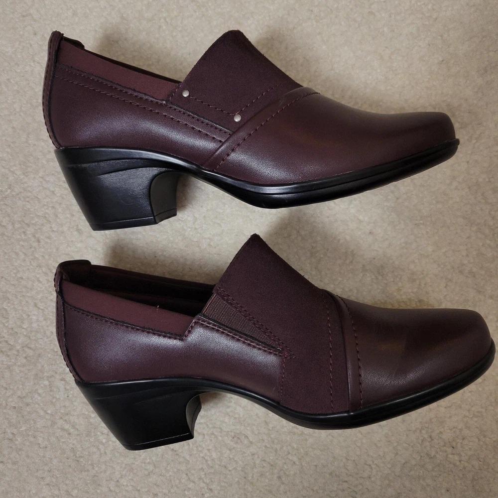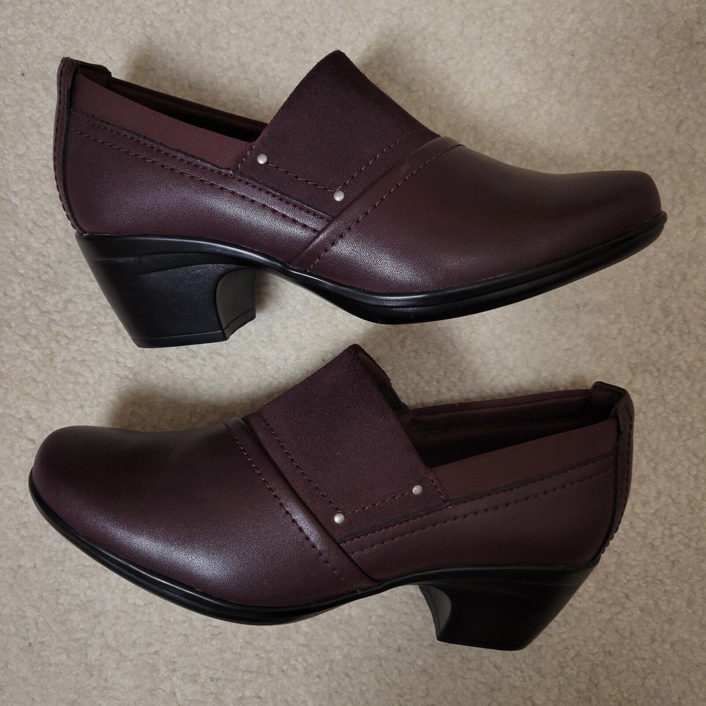 NWOT Clarks Emily Step Loafer Bootie Heels Size 6.5 Slip On Ultimate Comfort Leather Cushion Insole Synthetic Rubber Outsole Color-Dark Burgundy Heel Height-2" NEW WITHOUT TAG OR BOX Every Effort Has Been Made To Accurately Describe & Photograph This Item. Some Colors May Vary Depending On Lighting & Device Used To View. Please Reach Out If You Have Questions Prior To Purchase. I Am Happy To Help. Shipping From A Smoke & Pet Free Facility. USPS Ground Advantage