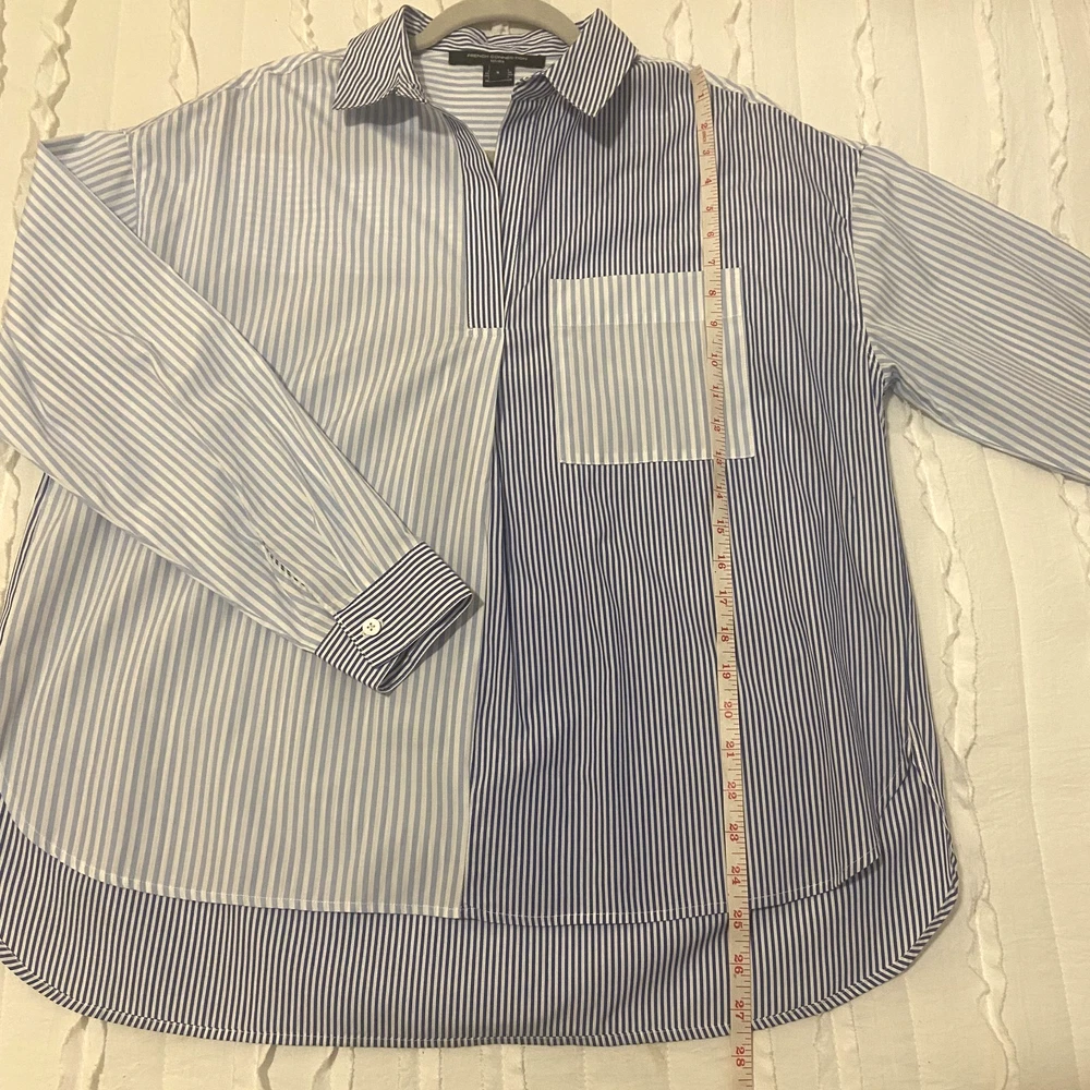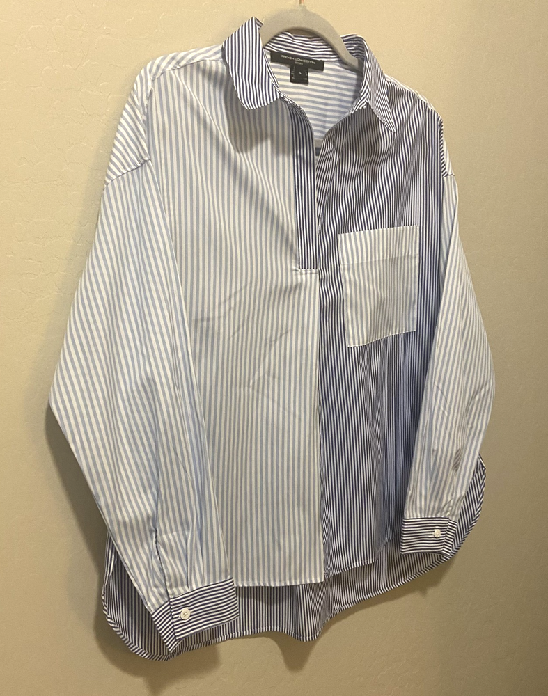 Add effortless style to your wardrobe with this NWOT French Connection Women’s Mixed Blue Striped Popover Shirt in Size Small . Designed with a blend of contrasting blue stripes, this top offers a modern, eye‑catching look that stands out while still feeling classic and versatile. The popover design provides an easy, relaxed fit that’s perfect for both casual days and polished outfits. Made from quality materials and crafted with French Connection’s signature attention to detail, this shirt delivers comfort, breathability, and a flattering silhouette. The mixed stripe pattern adds visual interest, making it easy to pair with jeans, trousers, or skirts for a chic everyday style. Please see photos for all measurements:) All items sold by Happy Life USA, LLC are accurately described in the condition section of each listing, and any flaws are clearly noted for the buyer prior to purchase. All pre‑owned items are pre‑washed (unless new with tags) and carefully placed into garment bags for added protection during shipping. We offer a 30‑day return policy, and buyers are responsible for all return shipping costs.