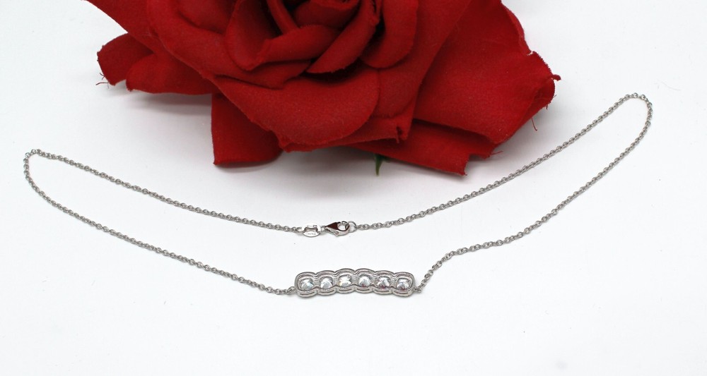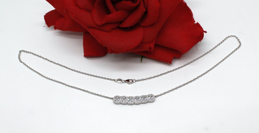 This is a gorgeous sterling silver and cubic zirconia necklace from JTV. It is new with out tags. The necklace is 18 inches long. The center bar is about 1/4th of an inch tall. It is new with out tags. This is stamped 925 CZ china. Please consider donating jewelry or scrap you no longer wear. Keep your bid will help homeless pets..... Whiskers Rescue Inc. Whiskers Rescue Inc. is a small non profit dedicated to the humane reduction of the feral and stray cat population though trap, neuter, return. We offer a free TNR voucher program to low income, NJ residents, to allow caretakers to spay/neuter the feral cats they feed. We provide free equipment rentals and training to anyone who wants to transition from feeding to becoming a caretaker. We rely heavily on ebay sales and jewelry donations to fund the program. We fund 500-600 spay/neuter surgeries per year preventing thousands of homeless kittens from being born on our streets. We would like to thank everyone here on ebay for all of your generous support.