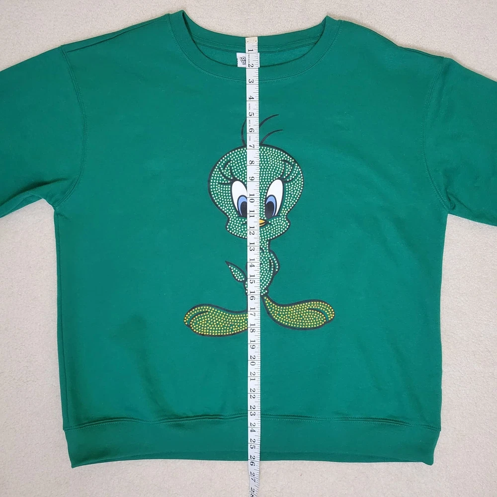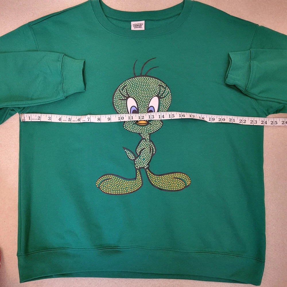 NWOT Looney Tunes Tweety Sweatshirt Studded XXL Size Women's/Juniors XXL (19) Tweety Bird Graphic Embellished W/Studs Kelly Green Color Long Sleeve Pull On Crew Neck 60% Cotton 40% Polyester Machine Wash/Tumble Dry Measurements Laying Flat Approximate: Shoulder To Shoulder-23" Chest-24" Sleeve-22.5"Shoulder Seam To Wrist Length-26" Soft Warm Fun - Doesn't Everyone Love Tweety? NWOT Every Effort Has Been Made To Accurately Describe & Photograph This Item. Some Colors May Vary Depending On Lighting & Device Used To View. Please Reach Out If You Have Questions Prior To Purchase. I Am Happy To Help. Shipping From A Smoke & Pet Free Facility. USPS Ground Advantage