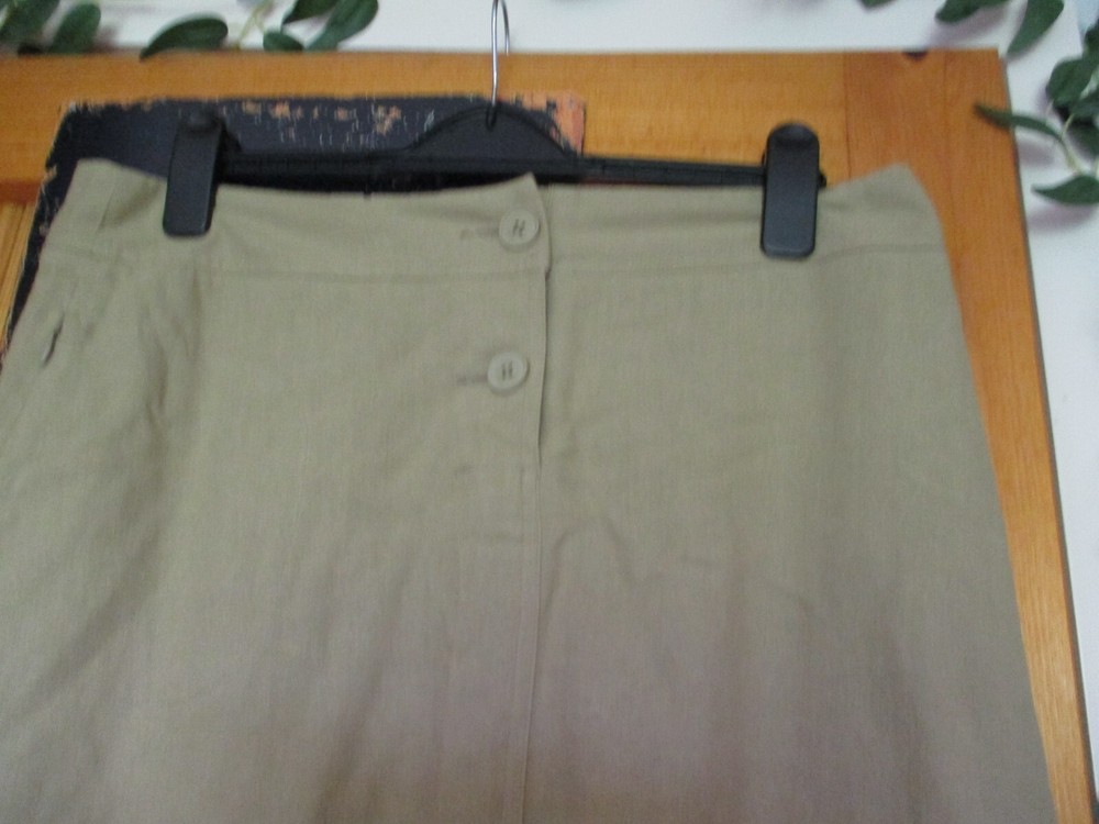 New with tag women's Travel Linen skirt from Rohan. Yellow brown colour called "khaki". 55% linen, 45% polyester. Crease-resistant. Size UK 14. Fastens with front buttons. One zipped side pocket. Measures approx. 44 cm across the waist and 84 cm to bottom hem. Slit at rear hem. If you are interested in buying more than one item, please message me as I may be able to list them together to combine postage.