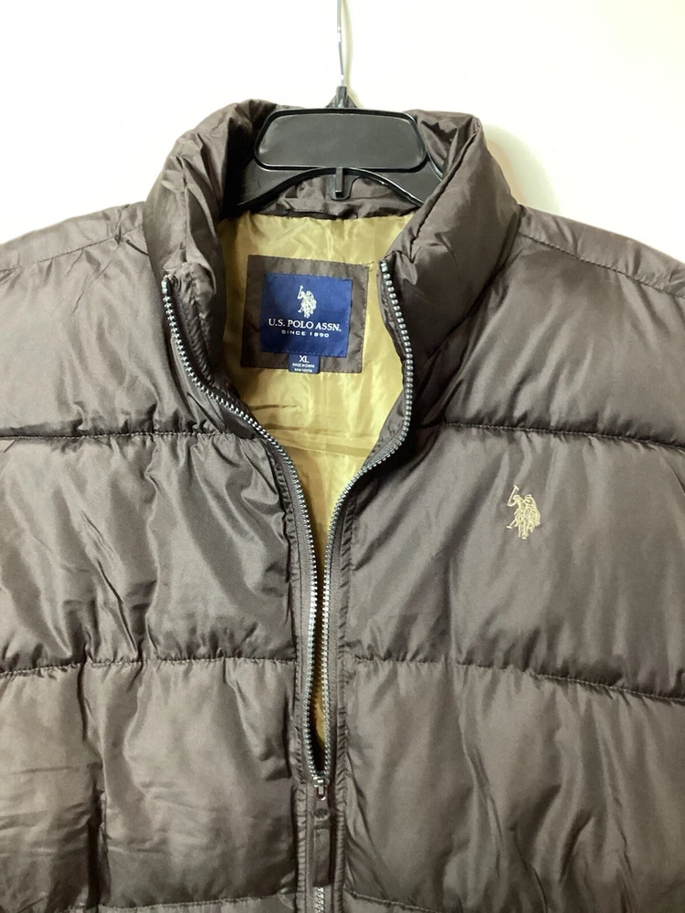 This U.S. Polo Assn. men's puff vest in dark brown is a versatile piece perfect for travel, casual outings, workwear, or business meetings. Made of softshell polyester material and insulated with polyester, it features a full zip closure and pockets for added convenience. The stand-up collar adds a touch of sophistication while the mid-length cut provides warmth and comfort. This vest is machine washable and comes in XL size with a regular fit. The vest is perfect for outdoor activities such as walking, golf, or hiking during the fall, winter, or spring seasons. The solid pattern and colorful theme make it a classic piece that can be personalized to match any style. The vest is not handmade and was manufactured in China. Get this U.S. Polo Assn. men's puff vest today to stay warm and stylish wherever you go.