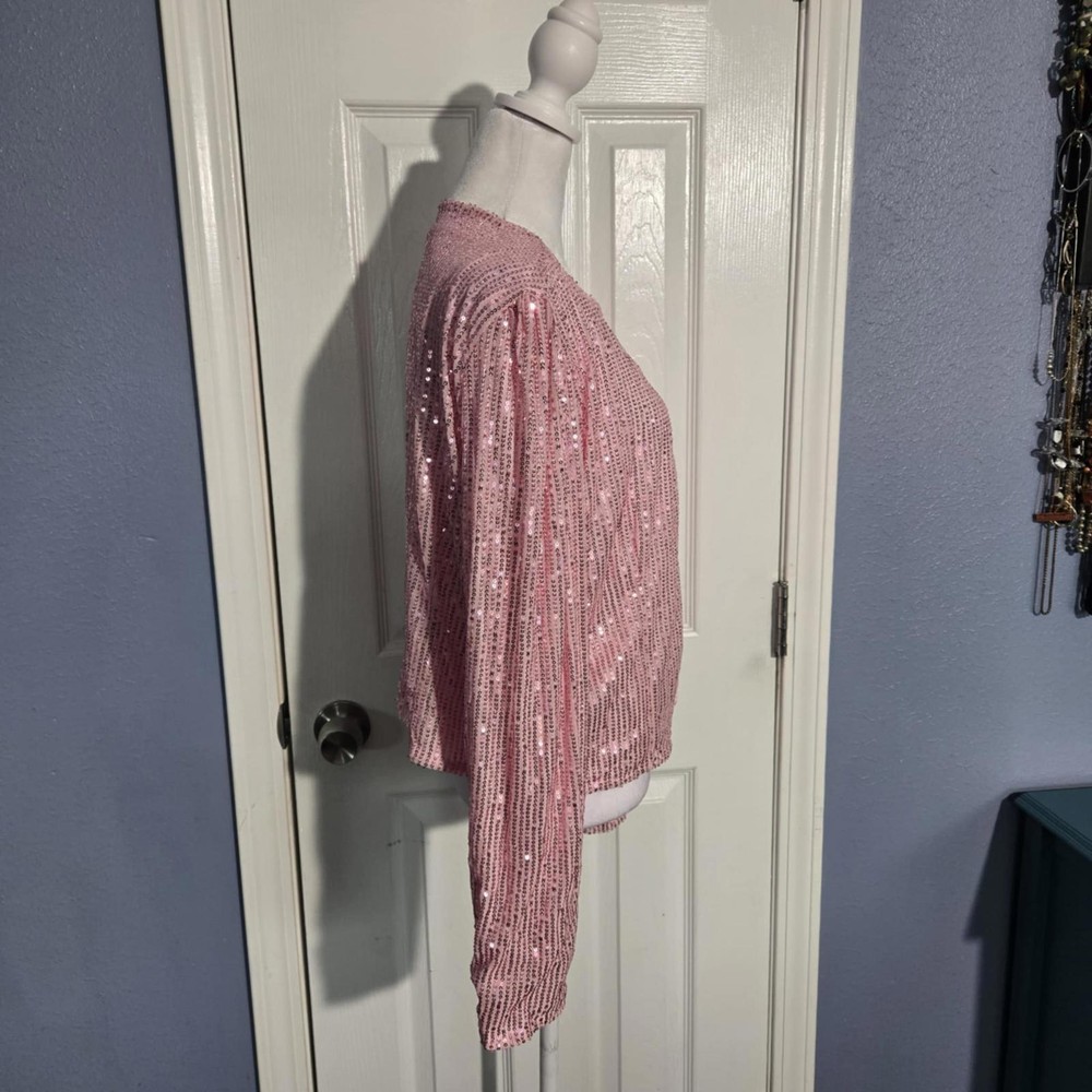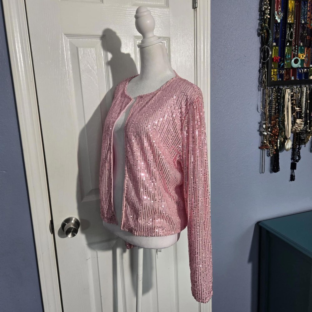 NWOT Women XXL Shimmering Pink Sequined Cardigan Jacket Christmas Valentine NYE