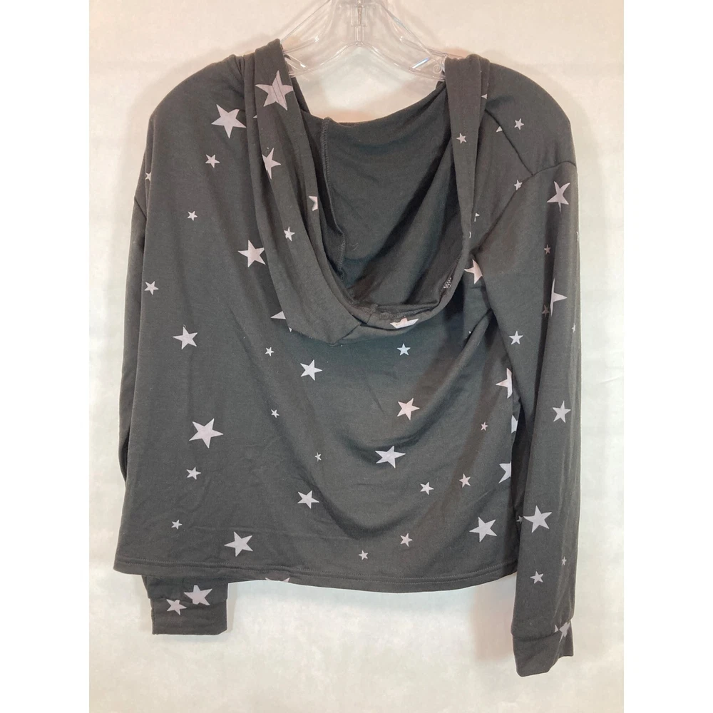 NWOT -Womens Long Sleeve Hooded Active Top - Sportelle Gray with Star Design