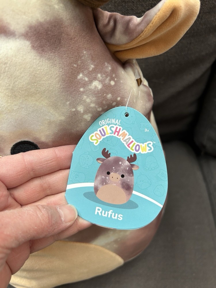 Brand new with tag, Squishmallows 14" Rufus The Moose Stuffed Toy. Super cute moose with brown antlers and a tan tummy. Very soft and cuddly! Would make a great Christmas or Birthday gift!