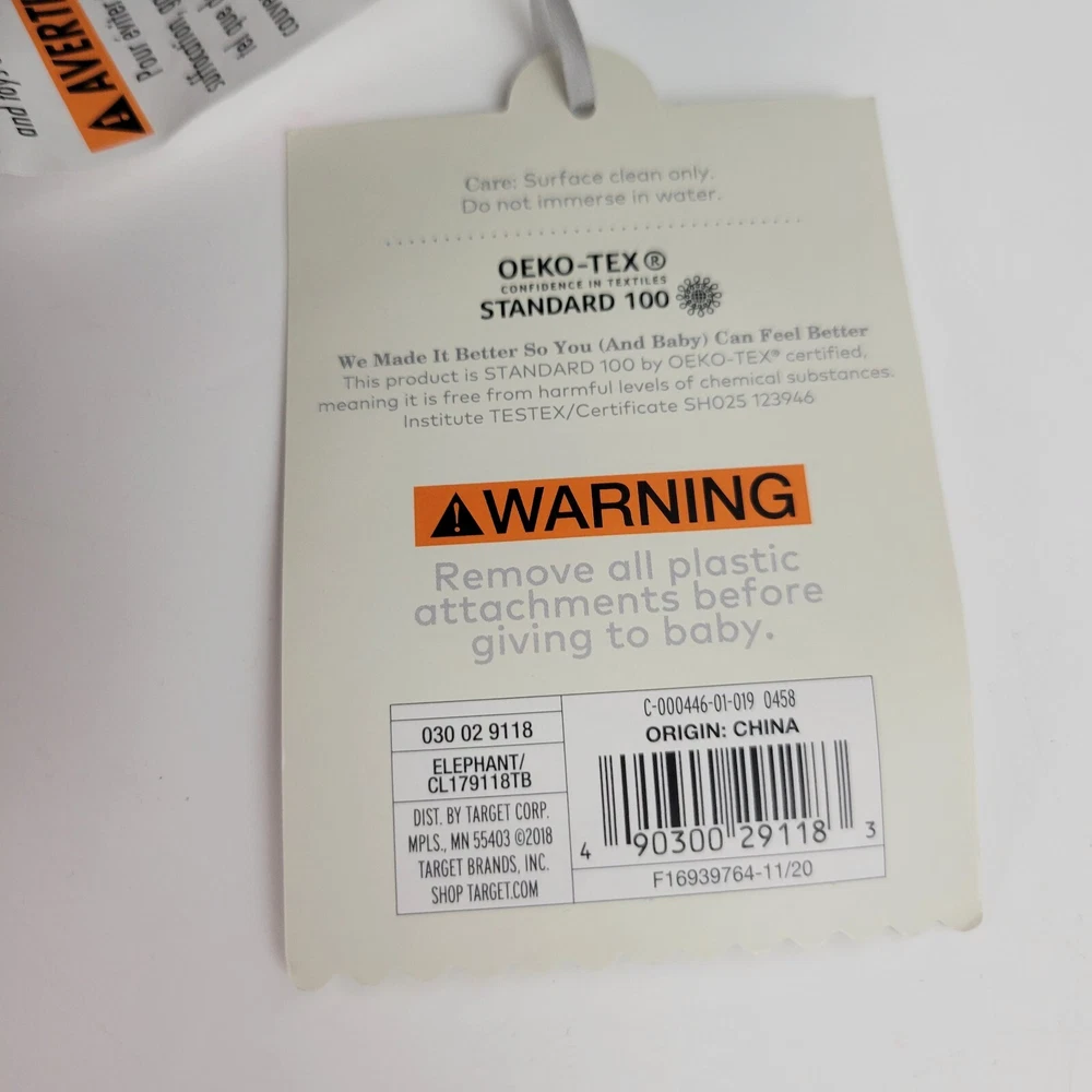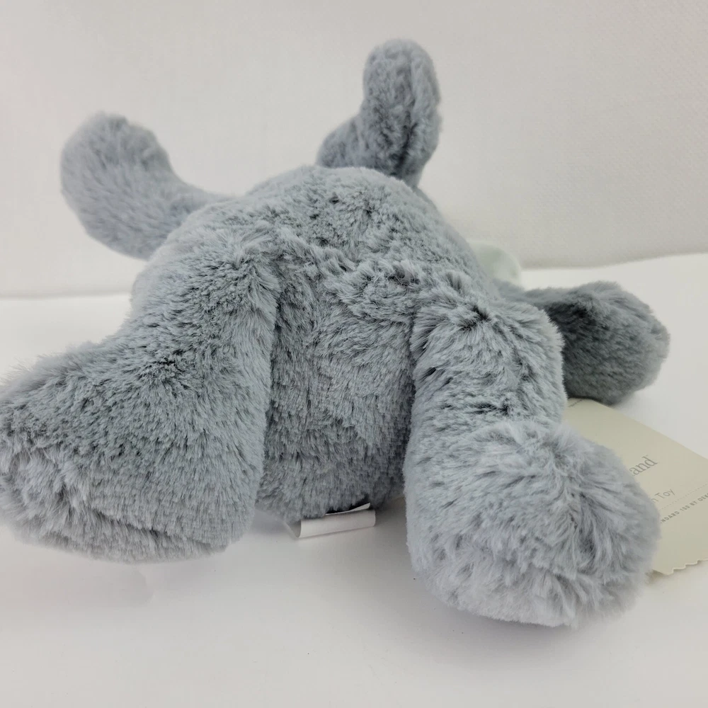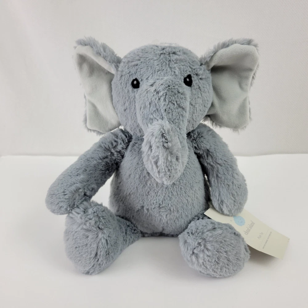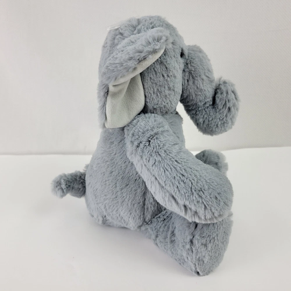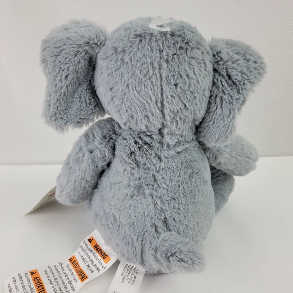 This is a brand new with Tags plush elephant. It measures approximately 9" tall from its seat to the top of his head.