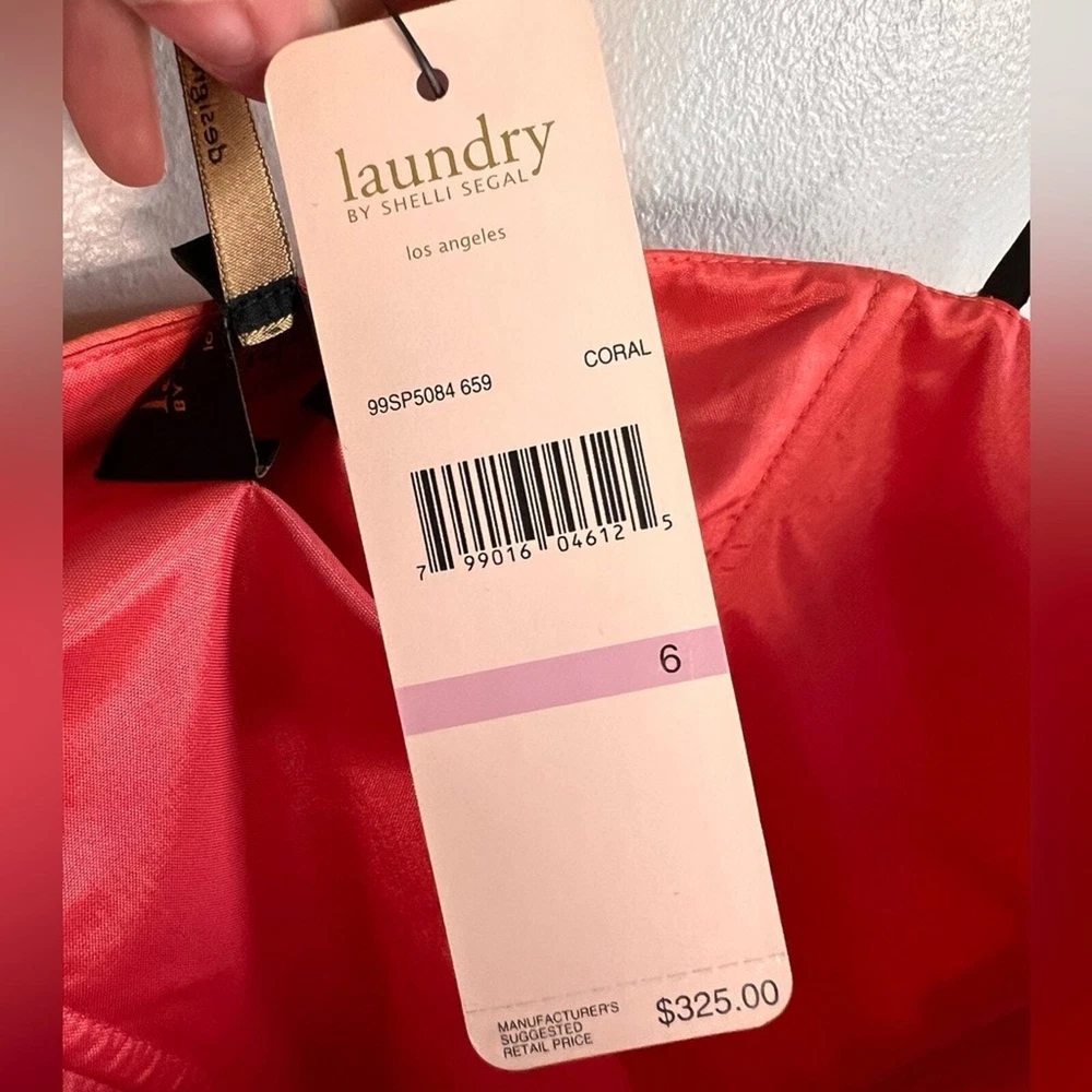 NEW WITH TAGS - $325 RETAIL! Laundry by Shelli Segal Color: Coral 100% silk Strapless formal dress Great for spring / summer wedding guest or prom PTP: 16” Can provide additional pictures or measurements, just leave me a comment.