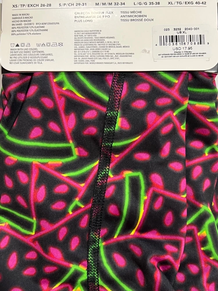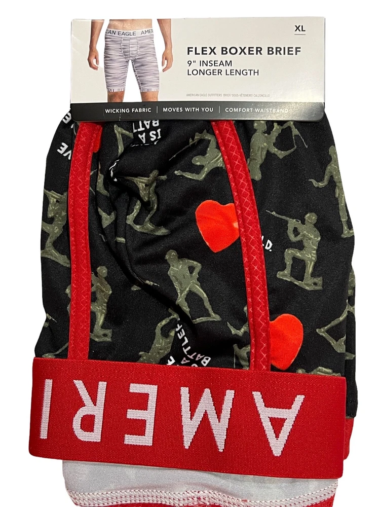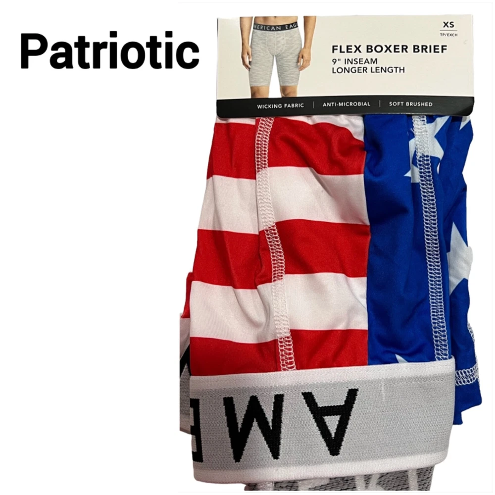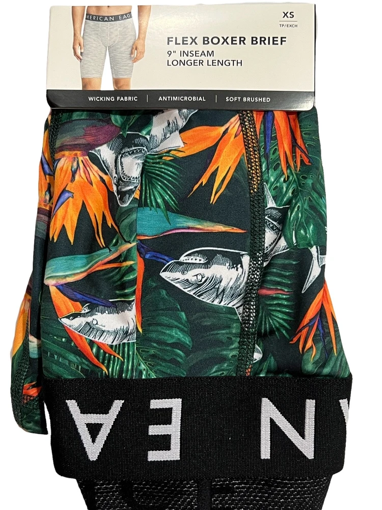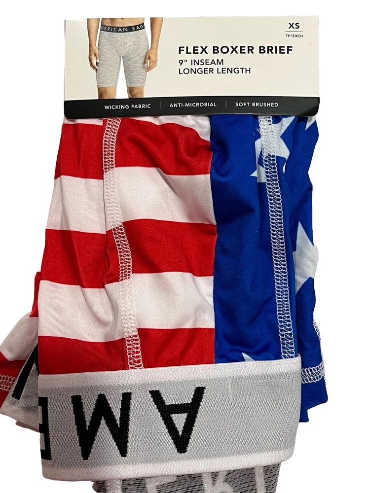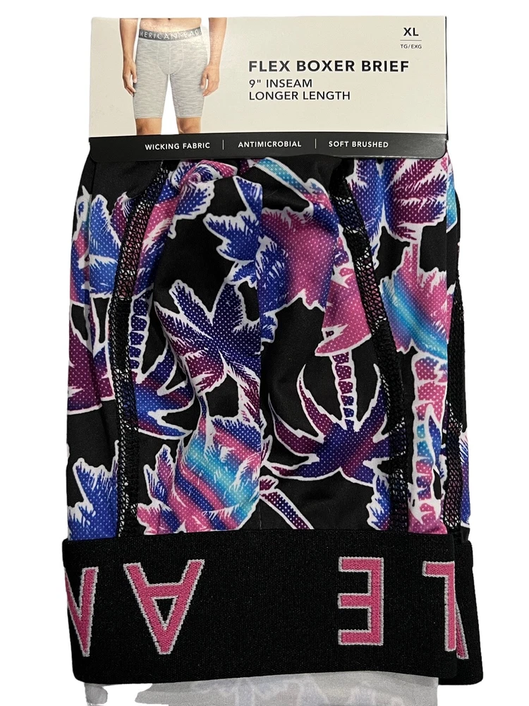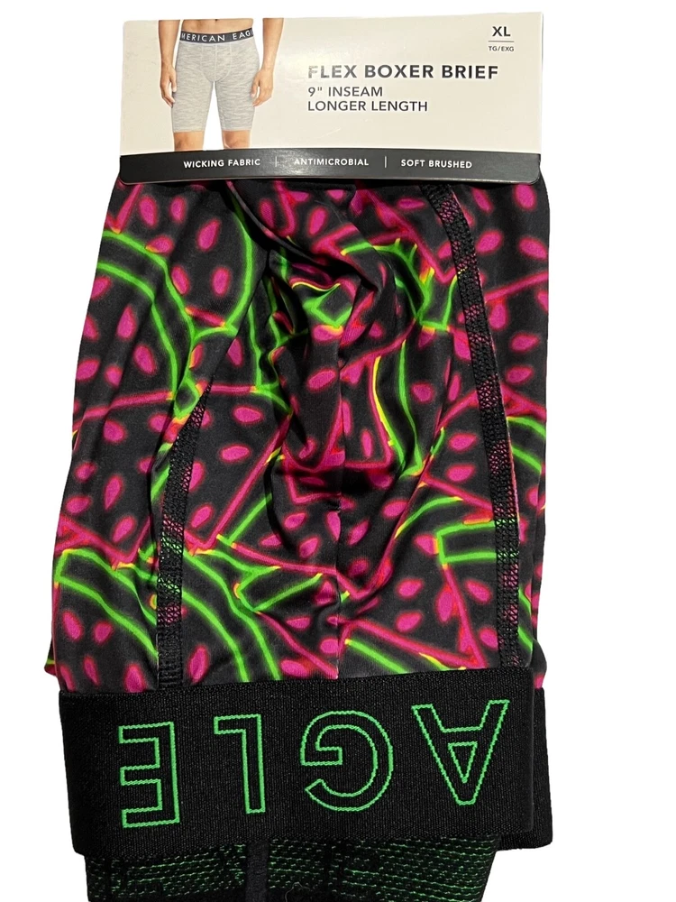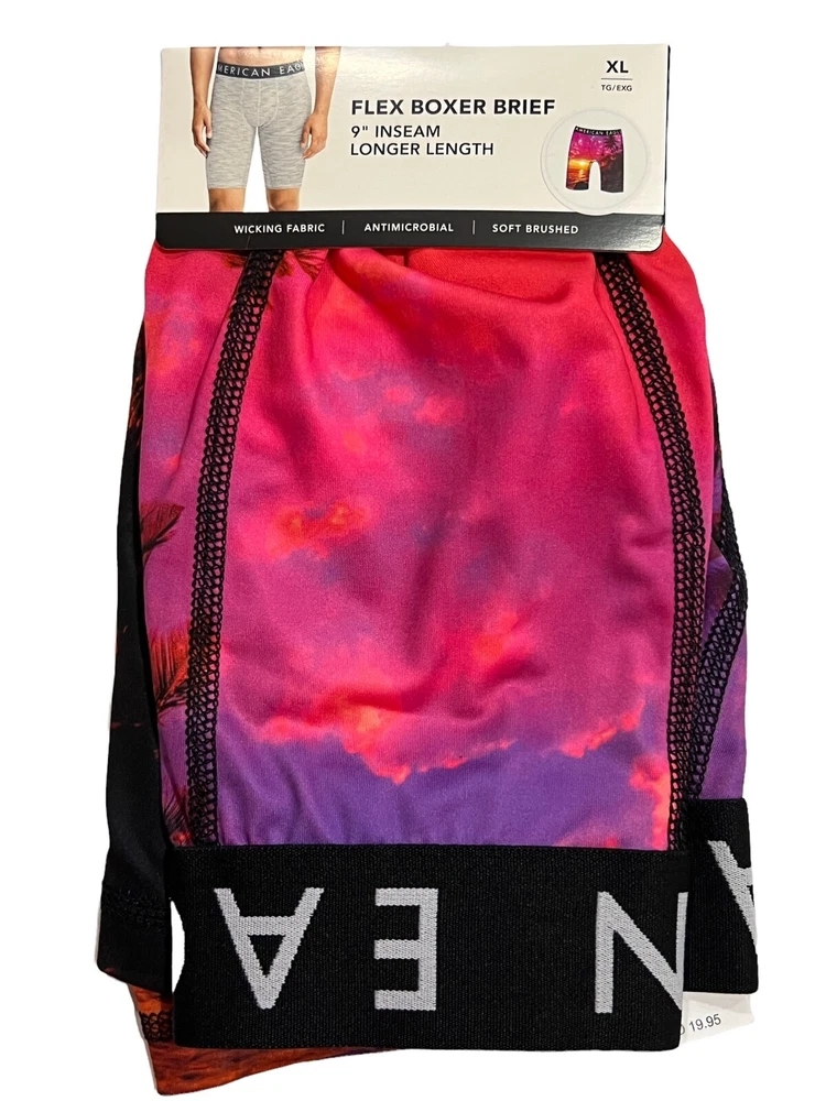 New flex boxer briefs available to choose from. 9" inseam. The eagles style package states XXL, but the waist tag and waistband state that it is a size XL. Price is for one item. All prices are firm. No consideration will be given to offers.