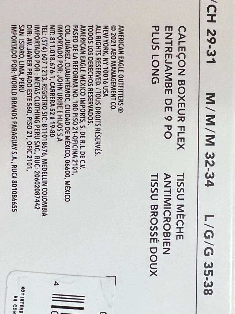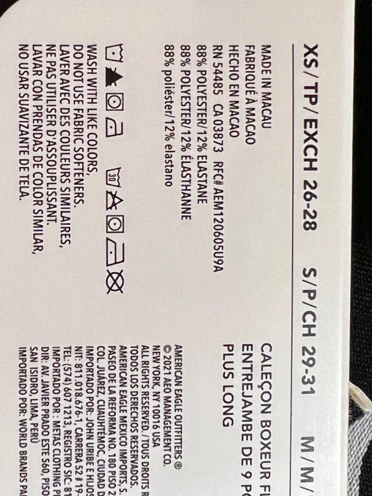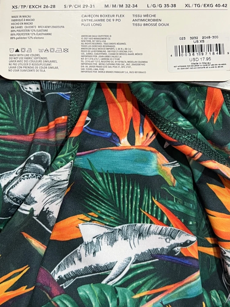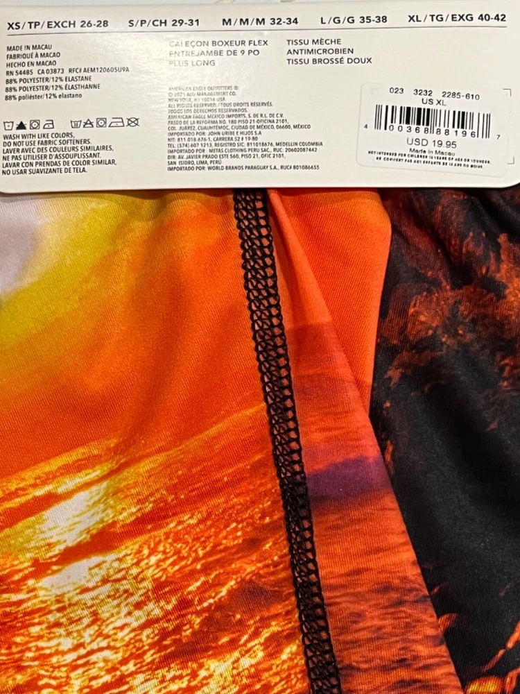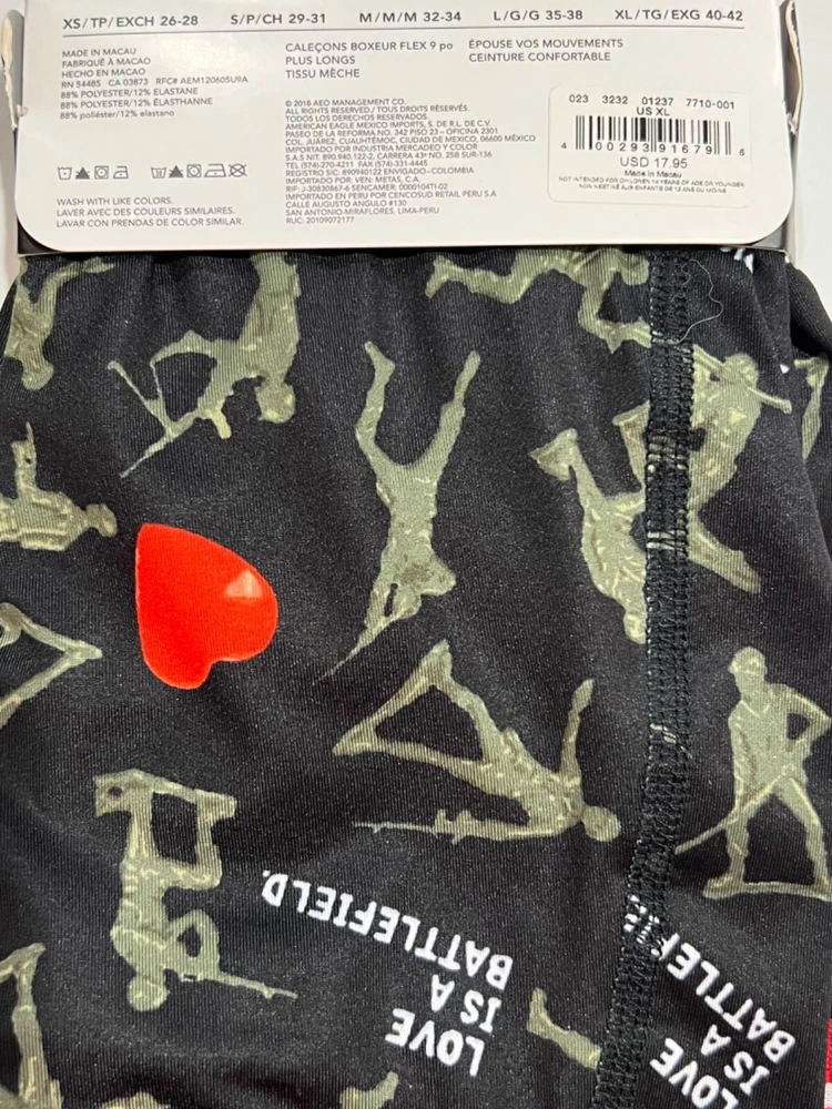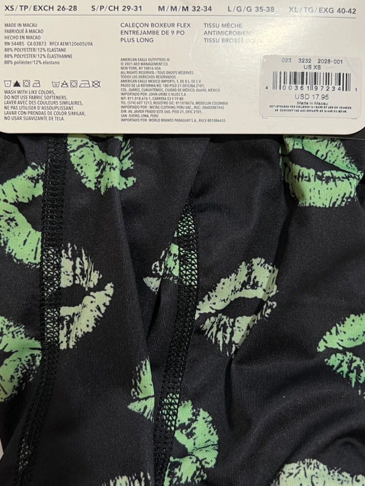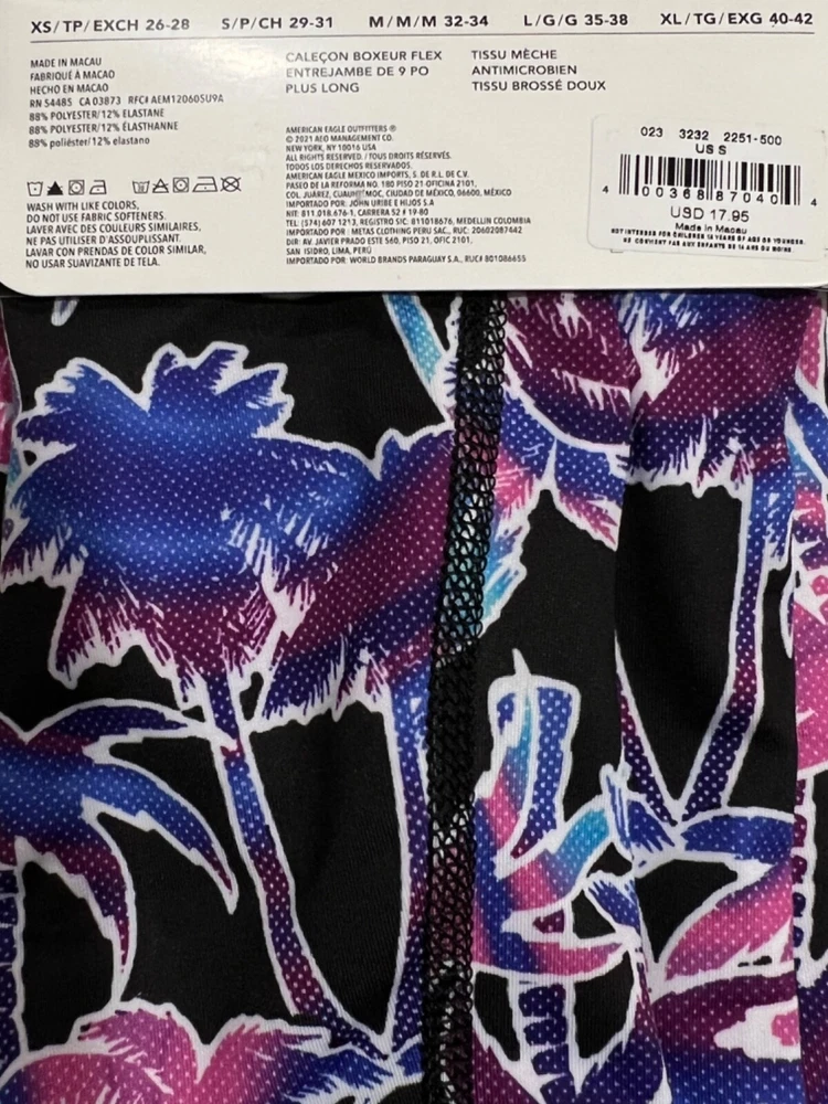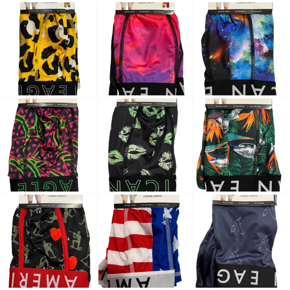 New flex boxer briefs available to choose from. 9" inseam. The eagles style package states XXL, but the waist tag and waistband state that it is a size XL. Price is for one item. All prices are firm. No consideration will be given to offers.
