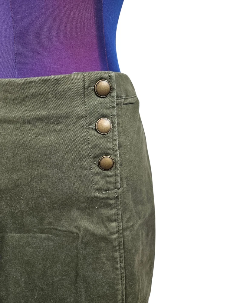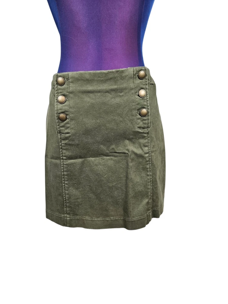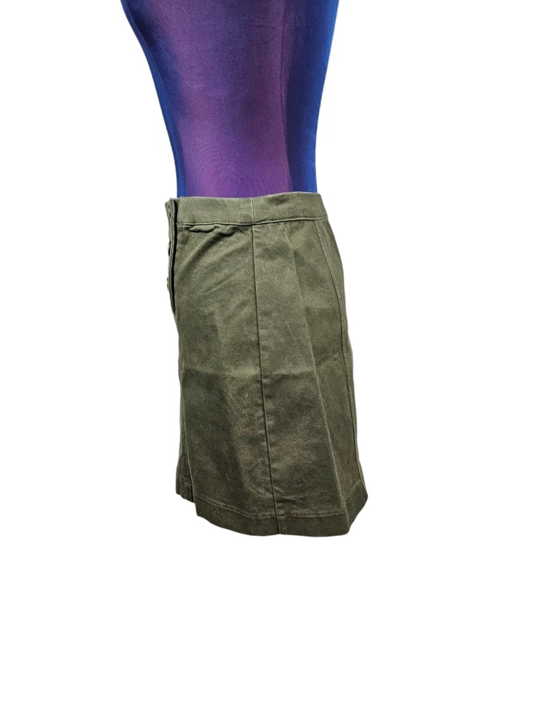 NWT Abercrombie & Fitch Olive Y2K Sailor Cotton Jean Skirt Size 0 Women's H57 New with tags NWT Abercrombie & Fitch Olive Y2K Sailor Cotton Jean Skirt Size 0 Women's. Features super soft olive green woven cotton, Y2K style, pull on with front button closure, brass buttons, falls at thighs, mini skirt, no stretch, no pockets, utility. Measurements laying flat waist 13" length 15" hips 17.5" Fabric cotton, polyester This garment is new with tags, no defects. Returns accepted under the following conditions: Item must still have tags attached and in same condition as stated Buyer pays all shipping costs Refund amount will be for the item price only