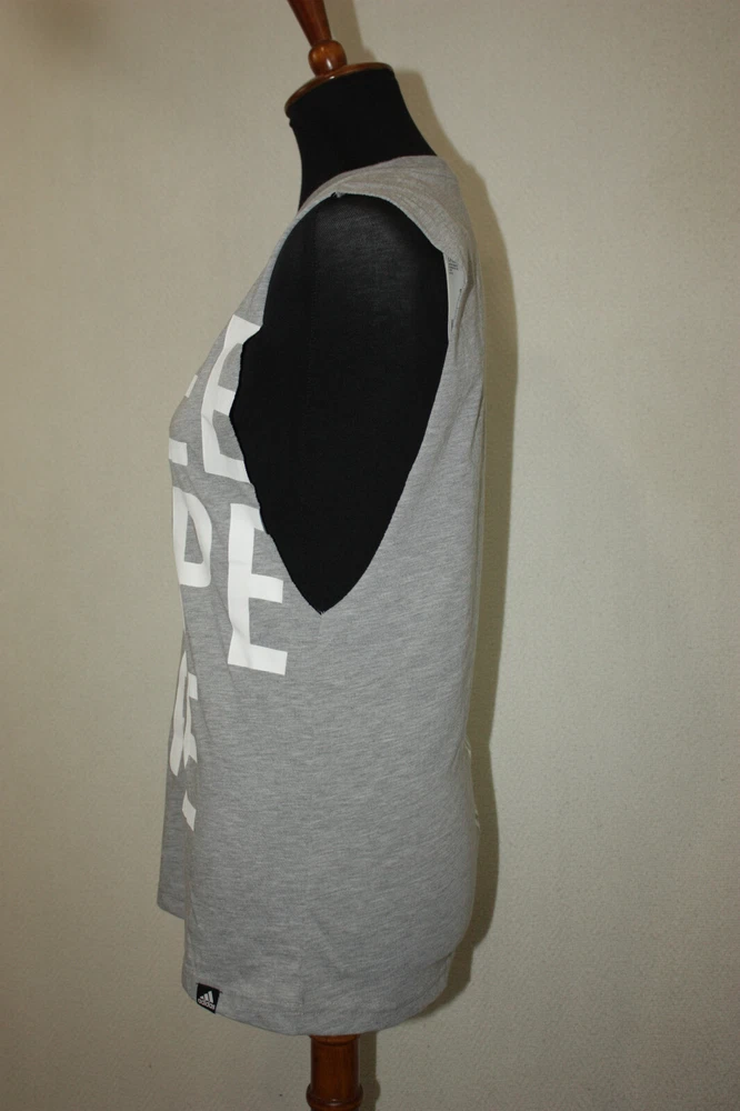 Welcome to Pim's clothing sales Brand new condition light weight t-shirt. Cut off sleeveless. Medium gray with white accents. Brand: adidas Material: 80% Polyester 20% Cotton Size : S tagged Bust: 16 armpit to armpit Shoulders: 13 Length: 26 back of collar to hem (Ask if you need more measurements) Please Remember all Clothing Items may fit differently depending on Brand, Fit, Use or Prior customization. We strongly urge our customers to check measurements first to guarantee proper fitting. Please be sure to check out our listings frequently for more high quality Designer Brand clothing items at a fraction of the price. We are getting new inventory all the time! You never know what amazing deals you may find :) Shipping discounts will be provided for multiple purchases - Please contact us after multiple purchases for an updated invoice.