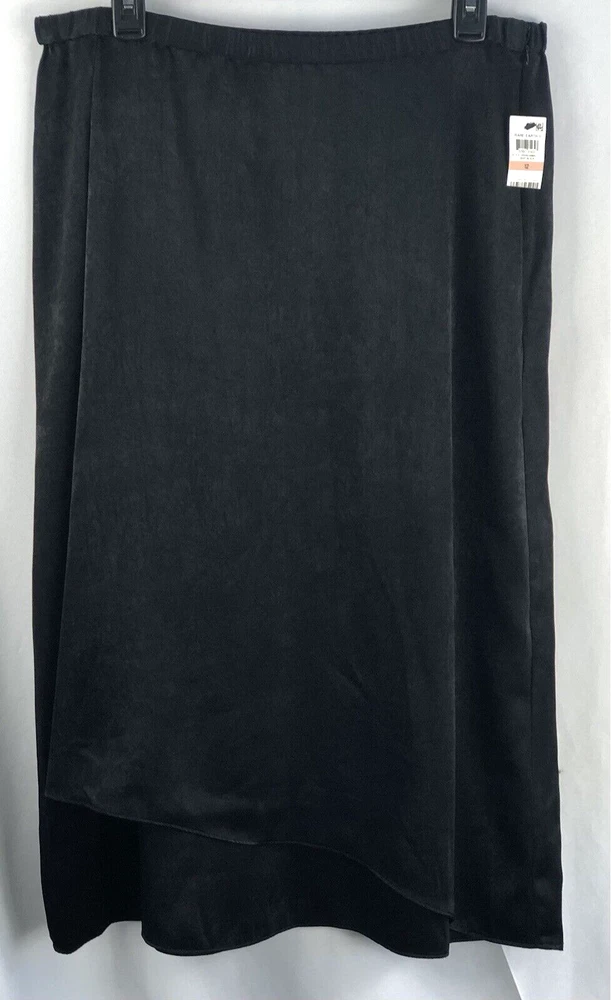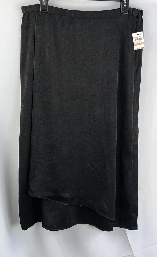 Color: Black Closure: Pull On Size: 12 Season: Winter, Fall, Spring, Summer Style: Wrap Skirt Length: Midi Department: Women Pattern: Solid Type: Skirt Material: Polyester Fabric Type: Satin Theme: City, Classic, Elegant, modern, career Occasion: Workwear, Business, Casual Size Type: Regular Brand: Alfani Vintage: No Features: Elastic Waist