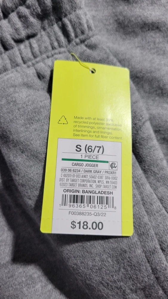 NWT! All In Motion Kids Sweatpants Fleece Cargo Joggers Gray Size S (6/7)