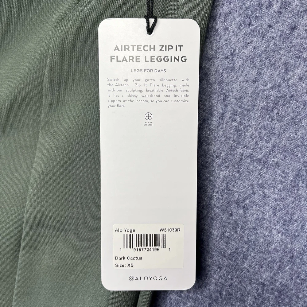 NWT Alo Yoga High-Waist Zip It Flare Green Flared Athletic Leggings Pants XS