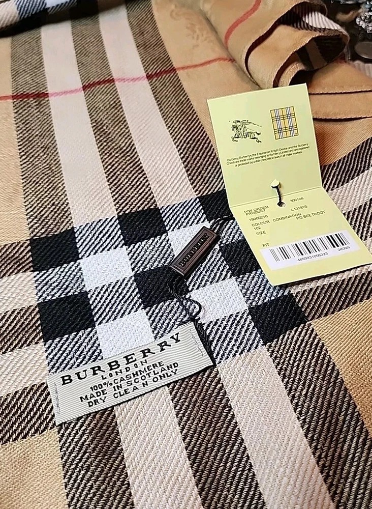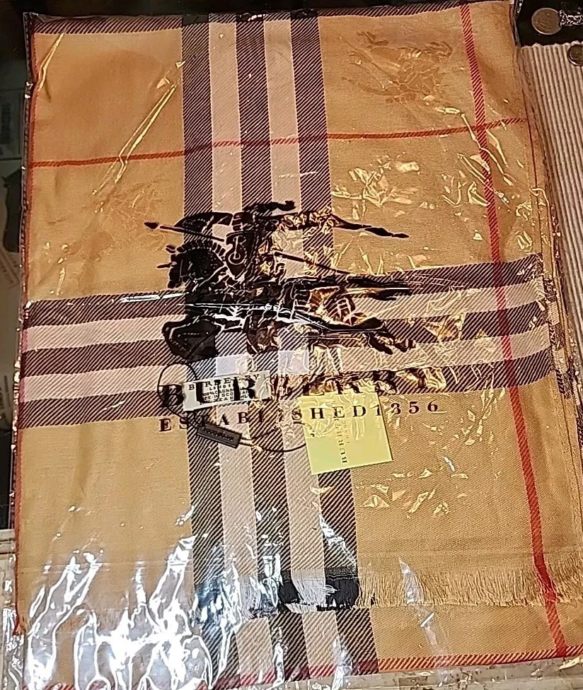 Elevate your wardrobe with this stunning Burberry Cashmere Classic Check Scarf. Featuring the iconic beige check pattern and adorned with an equestrian knight, this scarf is the perfect accessory to add a touch of sophistication to any outfit. Crafted from luxurious cashmere, this scarf is perfect for keeping you warm and stylish during the colder months. This scarf is brand new with tags and packaging, ensuring that you receive a high-quality, authentic Burberry product. Perfect for women who appreciate classic style and quality craftsmanship, this scarf is a must-have addition to any wardrobe. Don't miss out on this opportunity to own a piece of Burberry's timeless elegance. Please see pics..last pics are the scarf I opened to show proof of tags and color. The ones I am selling are unopened. Currently selling for 600.00 at Saks or Burberry directly if not sold out.