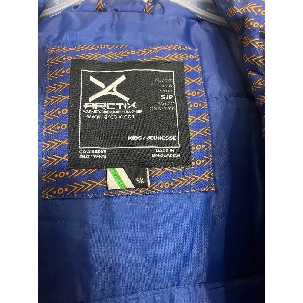 The NWT Arctix Boys Sz 5 Warm Winter Coat is a stylish and practical outerwear piece perfect for young boys. Made with man-made outer shell material and insulated with polyester, this coat is designed to keep boys warm during the winter months. The long sleeves, zip closure, and casual style make it ideal for everyday wear, while the blue color and zipper accents add a fun touch. With a machine washable garment care, this coat is easy to maintain, making it a convenient choice for busy families. Perfect for winter activities like skiing, this Arctix coat combines functionality with a playful design for boys.