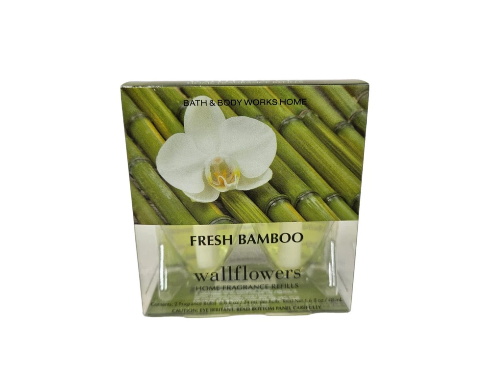 NWT Bath & Body Works Wallflowers Home Fragrance Refills Fresh Bamboo 2 Pack I51 New with tags NWT Bath & Body Works Wallflowers Home Fragrance Refills Fresh Bamboo 2 Pack. Recharge and reset with this inspiring blend of sweet bamboo, lush jasmine, and wild grasses grounded with warm oak Bath & Body Works Fresh Bamboo Wallflowers Home Fragrance Refills, 2-Pack (1.6 fl oz total) FRAGRANCE: Sweet Bamboo, Lush Jasmine, Wild Grasses grounded with Warm Oak. OVERVIEW: Fragrance that welcomes you home! Combine with your favorite Wallflowers Fragrance Plug, sold separately, to scent any room with noticeable fragrance for weeks and weeks. This item is new with tags, no defects. Only removed from box for pictures.