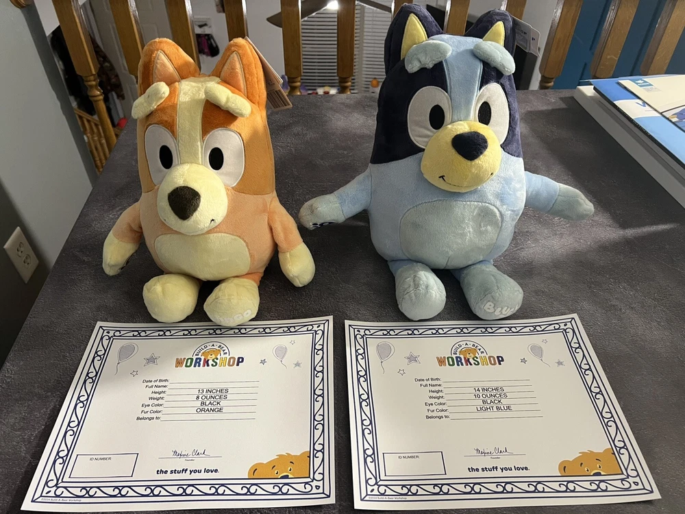 This Build-A-Bear Workshop plush set features Janet and Bingo Granny Rita, two adorable grandmas from Bluey's world. They come in a multicolor medium size and are perfect for children aged 3 and up. The plush toys are washable and made in China, with no California Prop 65 warning. These plush puppies are part of the Other Stuffed Animals category and make a great gift for any occasion, especially Christmas. Fans of Bluey will be delighted to add these beloved characters to their collection.