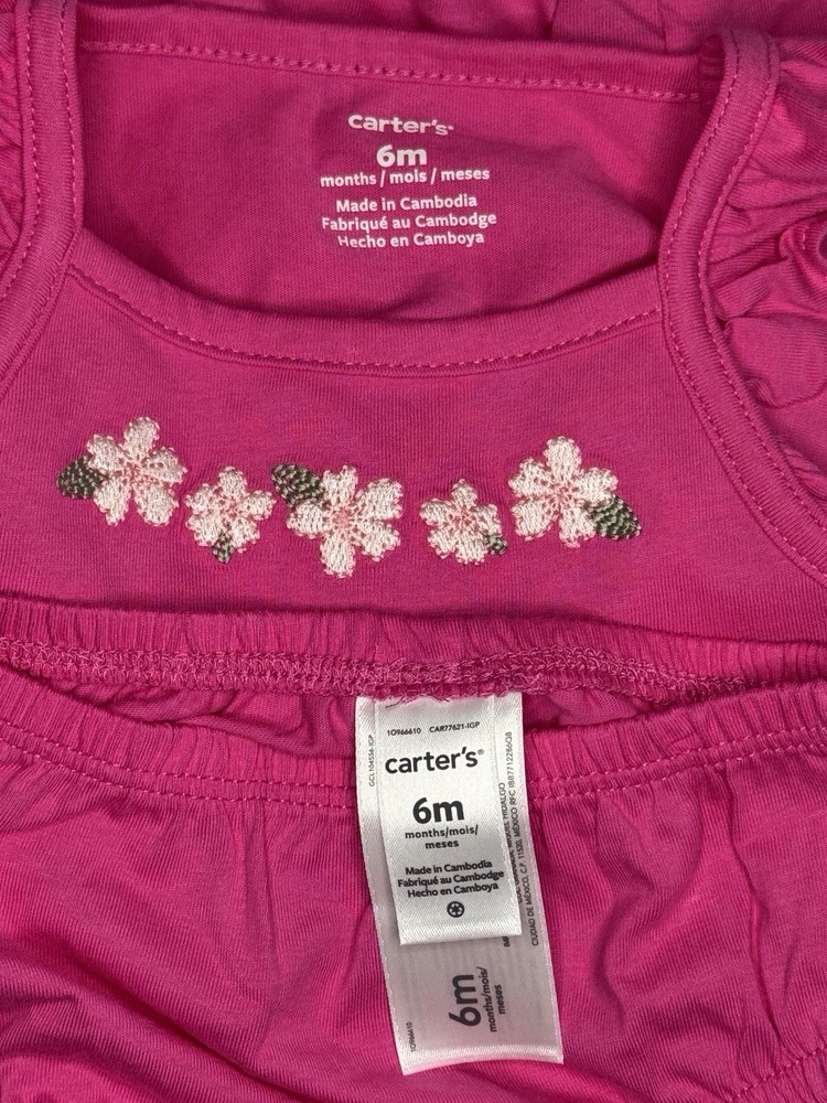THIS IS A BRAND NEW WITH TAGS CARTERS SIZE SIX MONTH BABY GIRL 2 PIECE OUTFIT - DRESS & DIAPER COVER I try to make sure that the photos of my items accurately reflect the actual color of the item in person. However, due to the differences in monitor and device settings (brightness, contrast, saturation, etc) there may be a slight difference in color between what is shown on the site and the actual product. Please feel free to ask any questions or for additional pictures prior to purchasing as no returns are accepted.