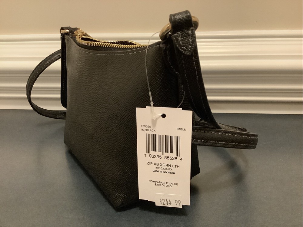 NWT COACH CW336 Zip Top Crossbody Bag in Crossgrain Leather Black