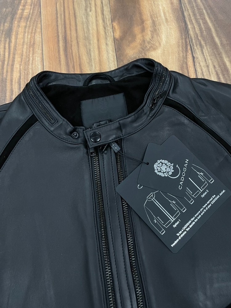 BRAND: CADOGAN SIZE: XX-Large FABRIC CONTENT:100% NAPA LEATHER CONDITION: NEW WITH TAGS PLEASE NOTE JACKETS SEEM TO RUN SMALL!! DOUBLE CHECK WITH MEASUREMENTS BELOW!! MEASUREMENTS ARE LAYING FLAT & APPROX. CHEST:24.5 SHOULDERS:22 SLEEVE LENGTH:22 LENGTH:28.5 PLEASE FEEL FREE TO ASK QUESTIONS BEFORE PURCHASE Thank you!