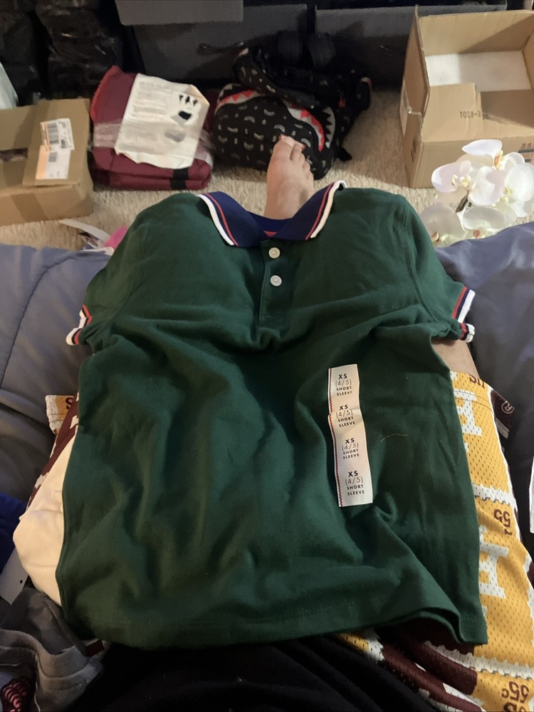 The product is a new with tags Cat & Jack Boys Green Polo Shirt in size XS (4/5). Made from a cotton blend material, this short sleeve polo shirt features a solid green color, collared neckline, pullover closure, and is designed for casual occasions. Perfect for young boys, this stylish polo shirt is ideal for everyday wear and can be easily paired with different bottoms for a smart casual look. The Cat & Jack brand ensures quality and comfort for your little one.