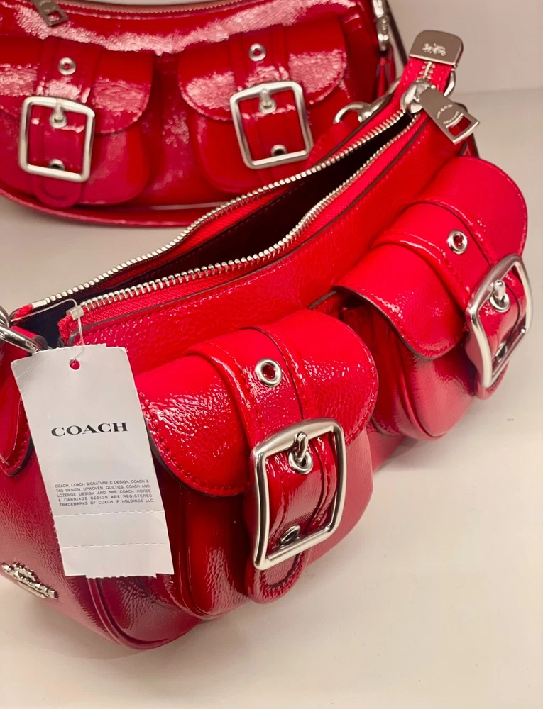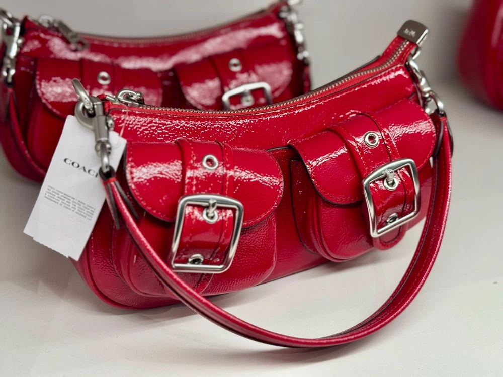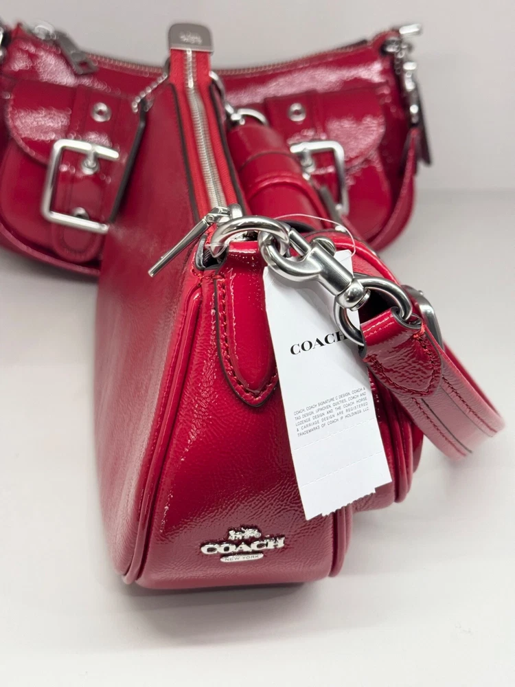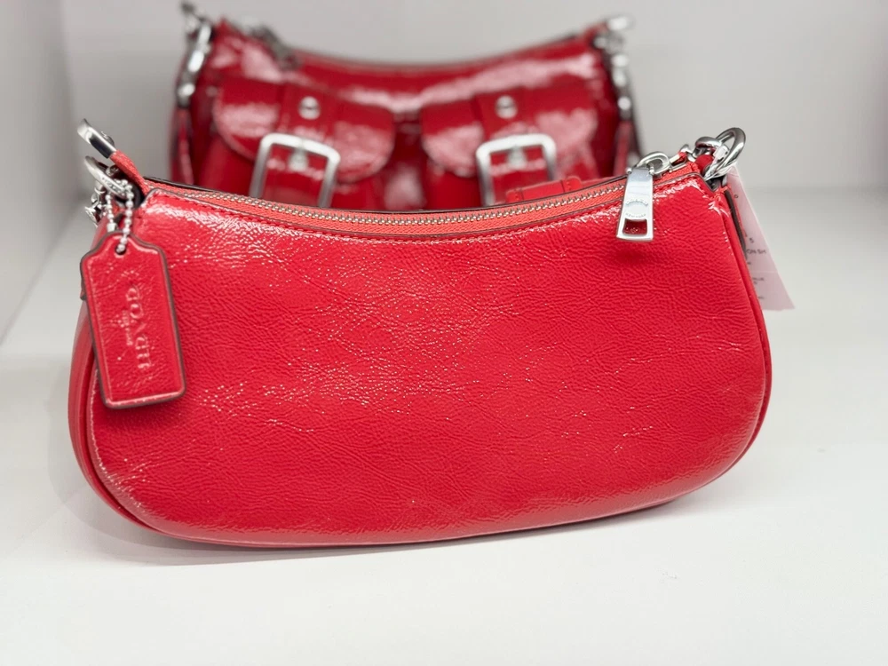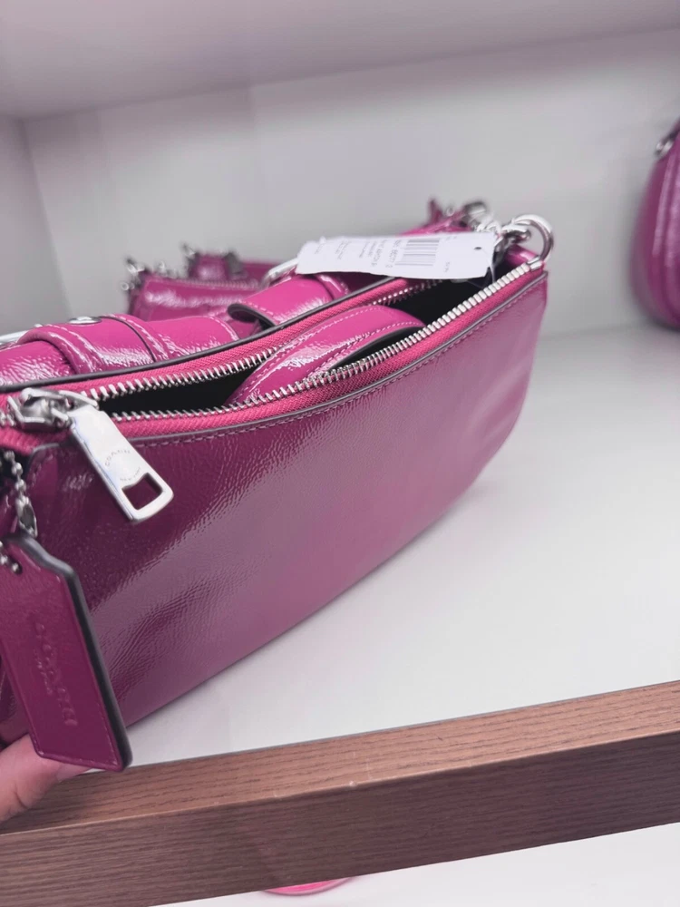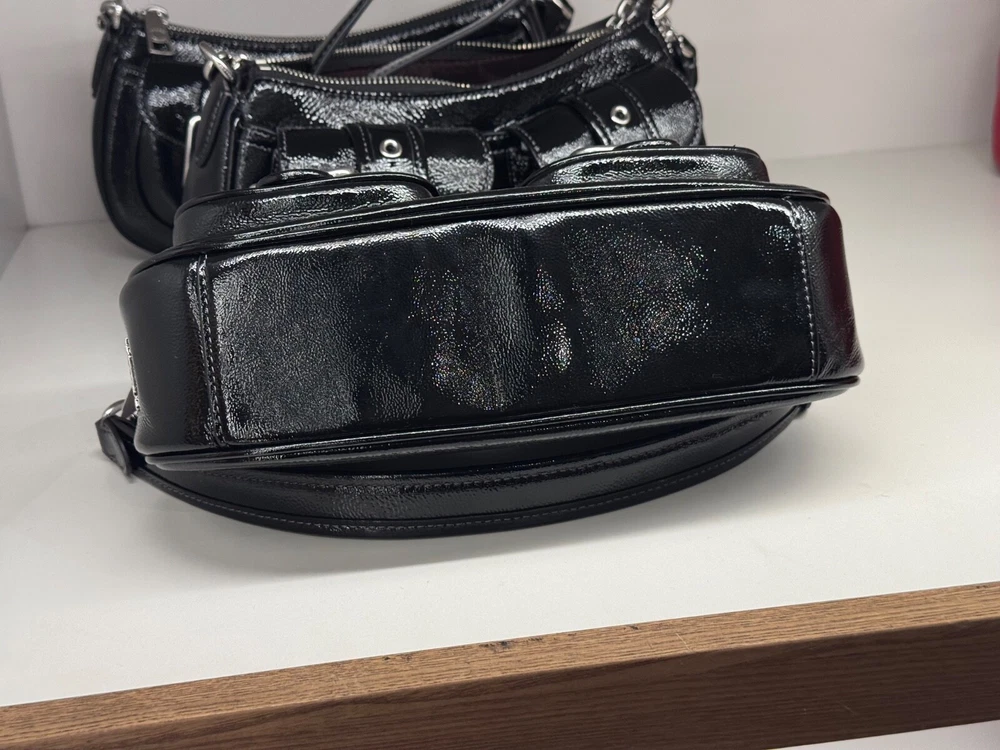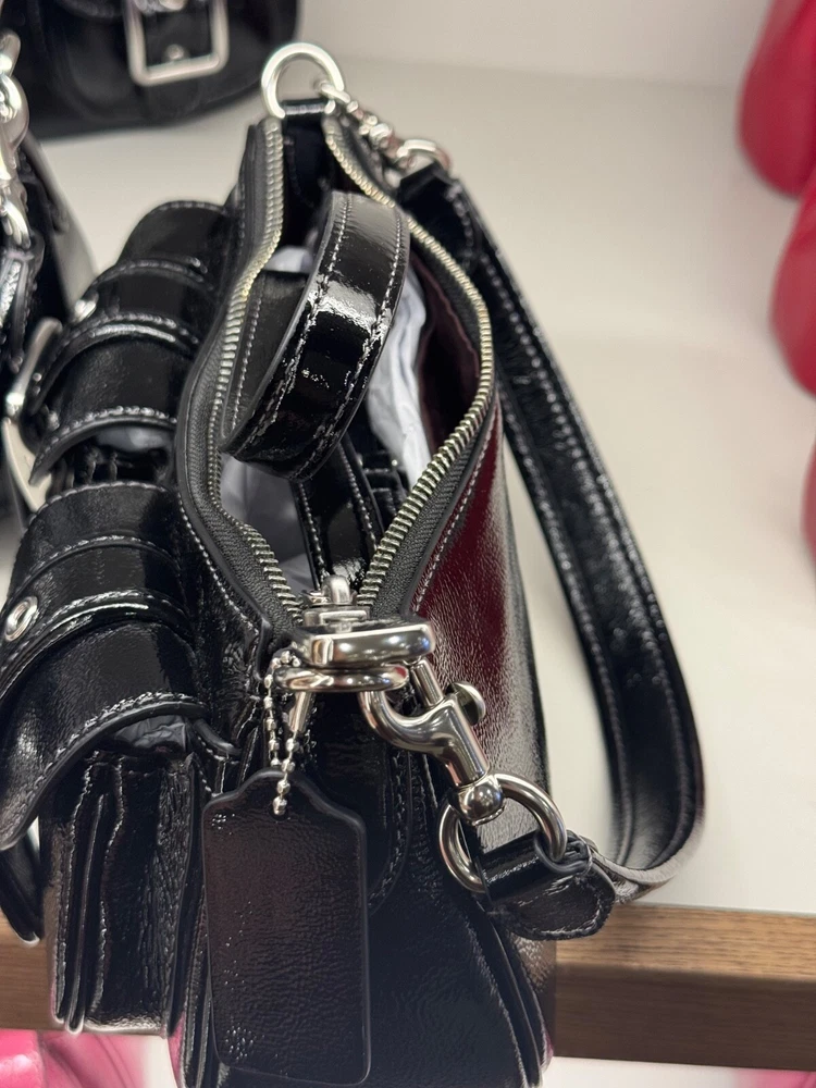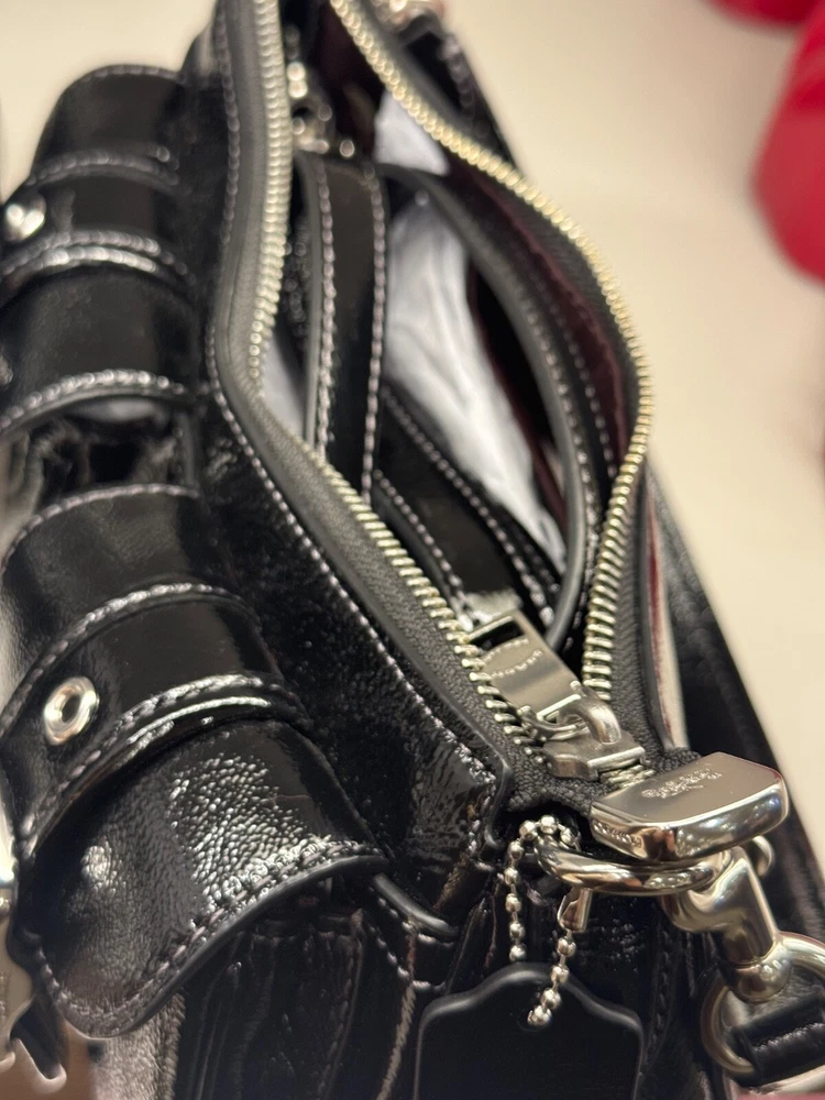 This Coach Ashton baguette is a dream! The glossy patent leather gives it a sleek, luxurious look, and the perfect compact size fits all my essentials without being bulky. Love the detachable strap—so versatile for shoulder or crossbody wear. The inside pockets keep me organized, and the zip closure adds security. The quality is amazing, and it still has the tags—definitely 100% authentic. A must-have for any bag lover!