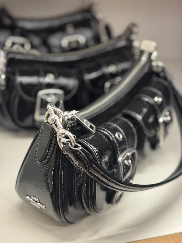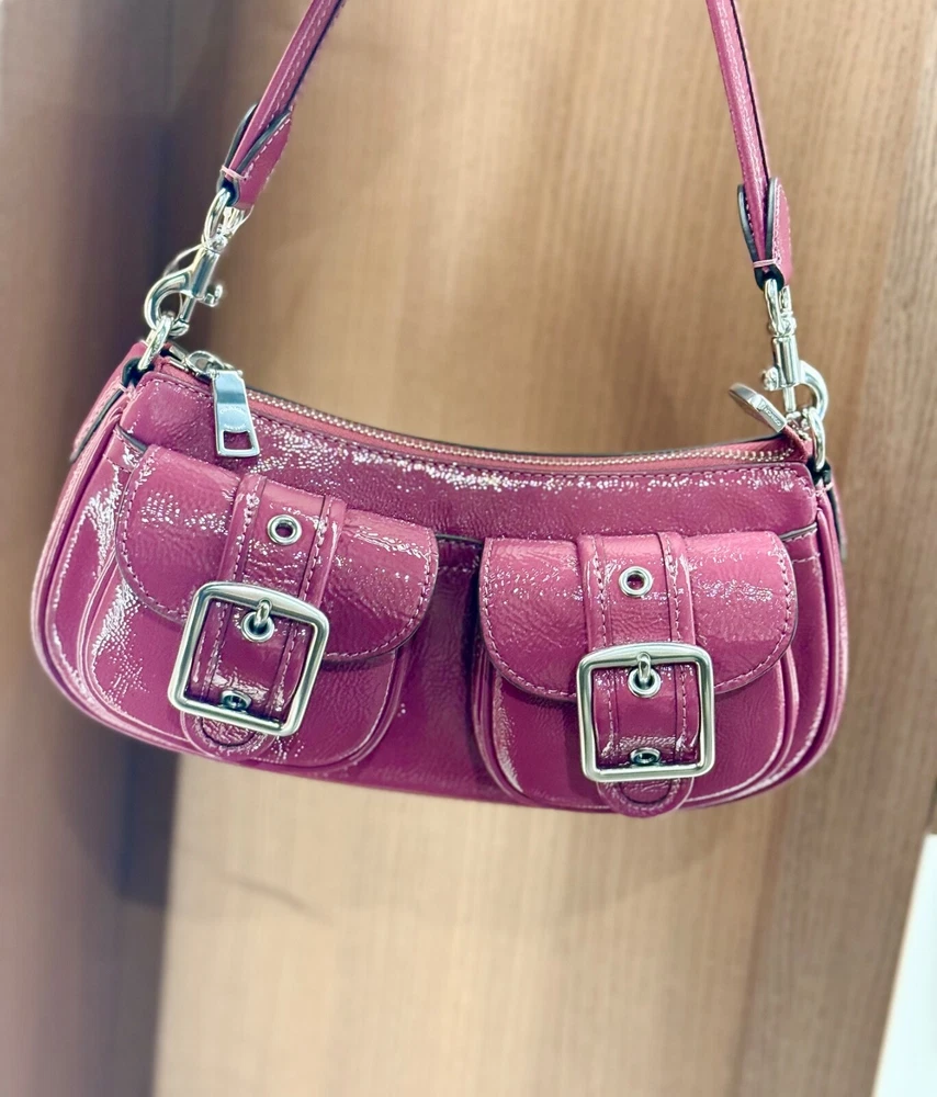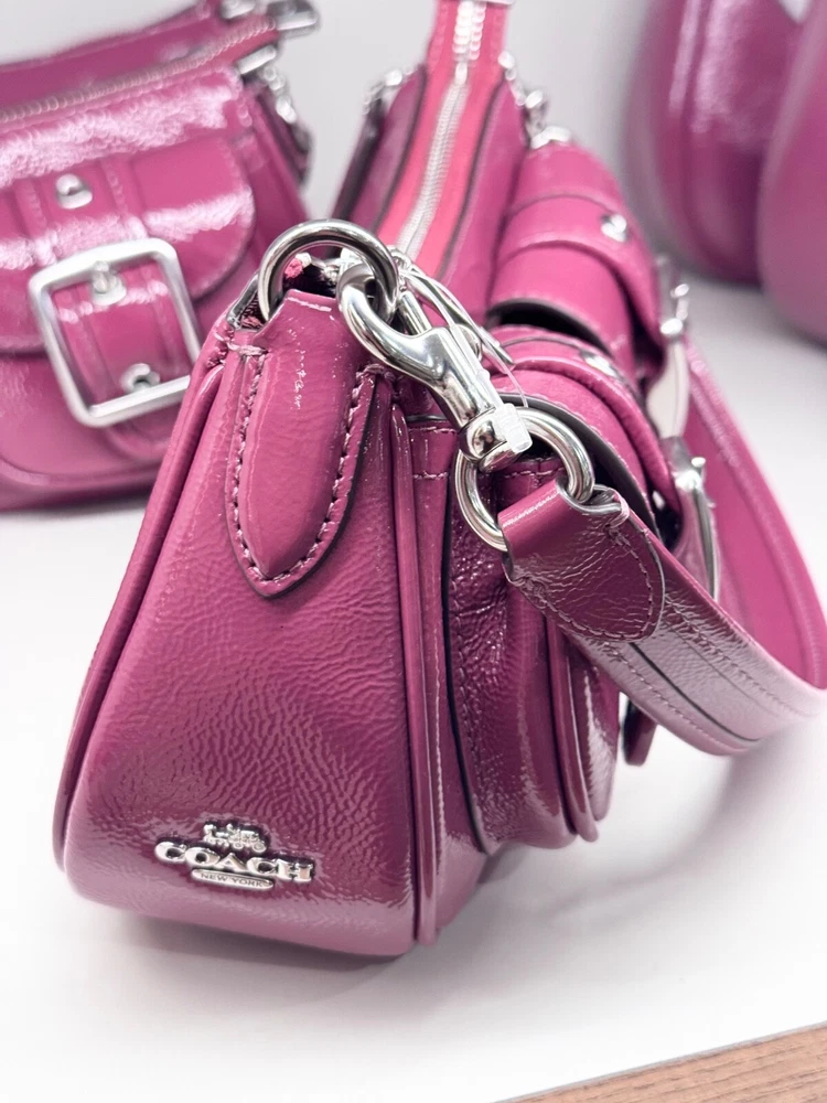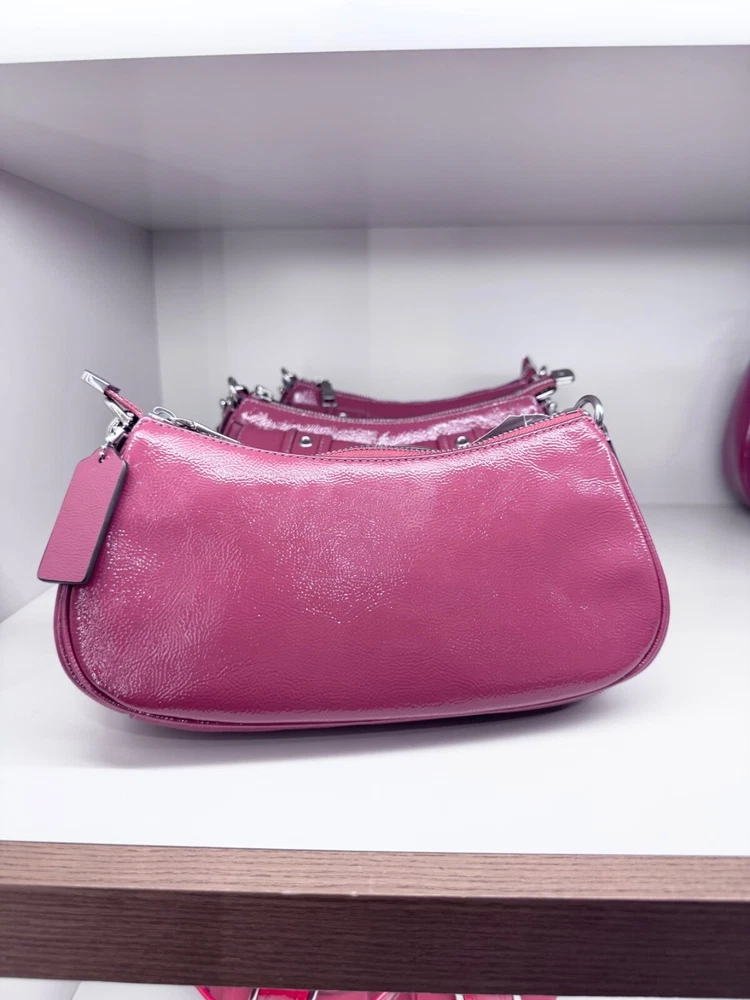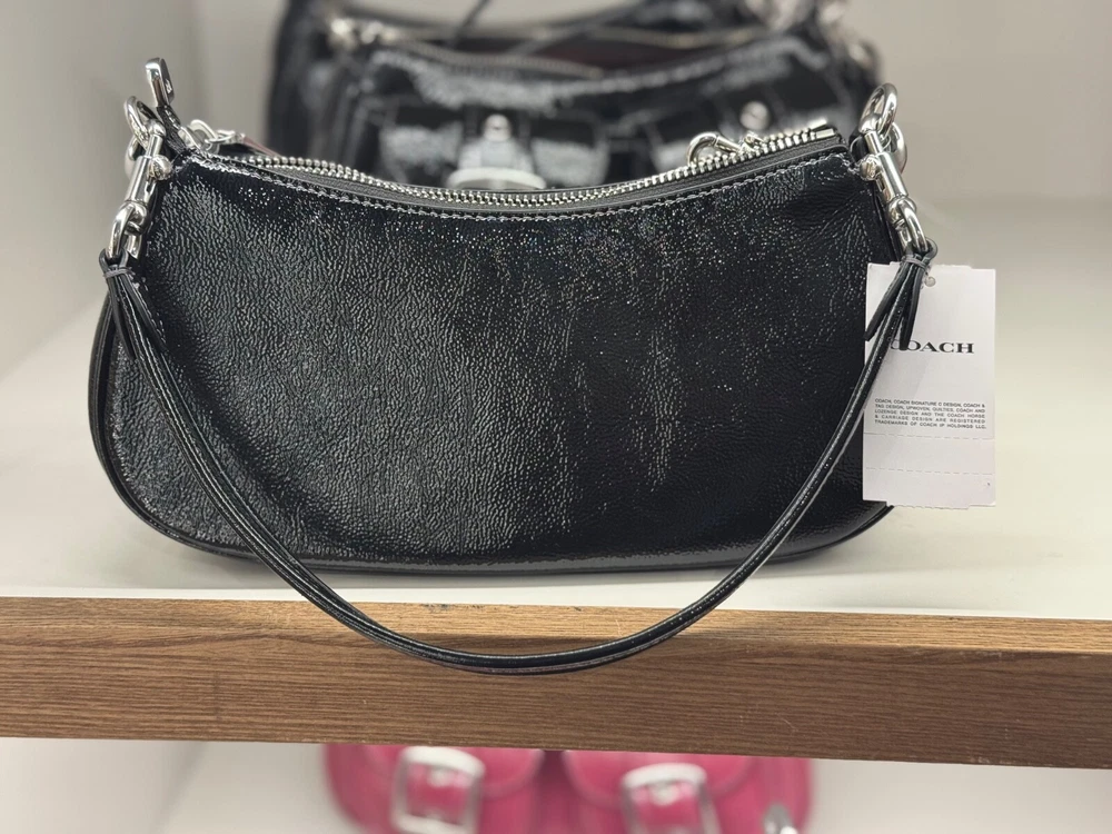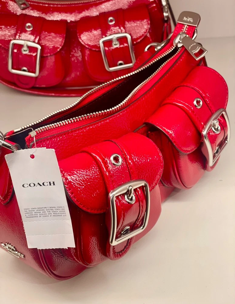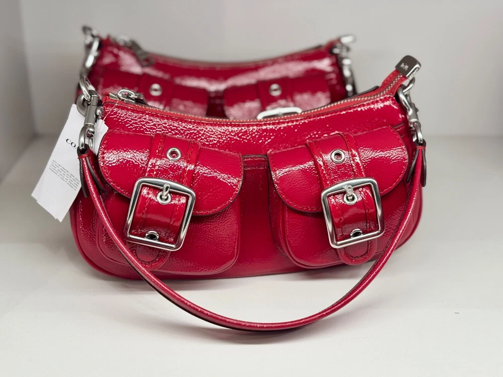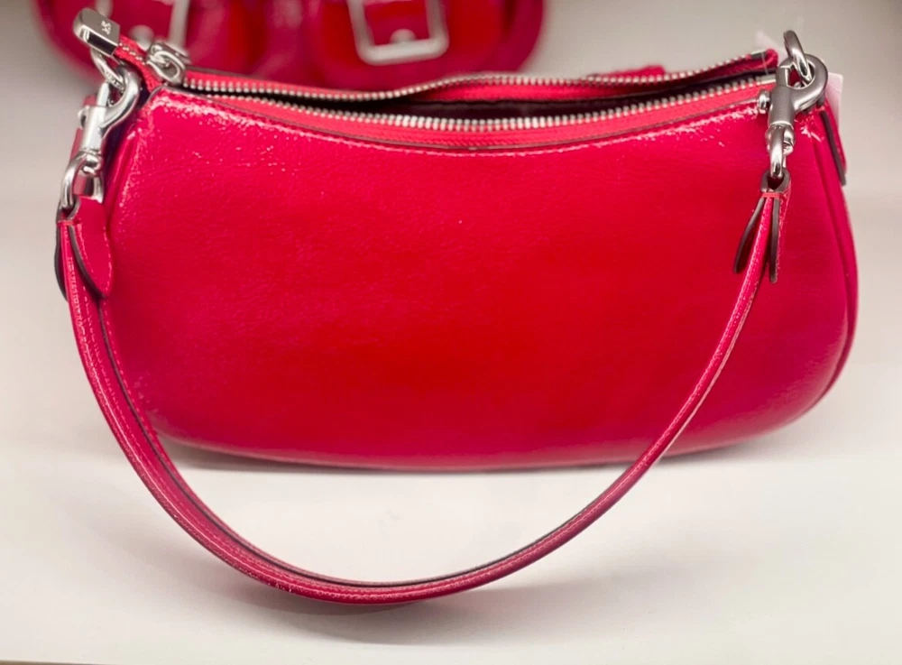This Coach Ashton baguette is a dream! The glossy patent leather gives it a sleek, luxurious look, and the perfect compact size fits all my essentials without being bulky. Love the detachable strap—so versatile for shoulder or crossbody wear. The inside pockets keep me organized, and the zip closure adds security. The quality is amazing, and it still has the tags—definitely 100% authentic. A must-have for any bag lover!