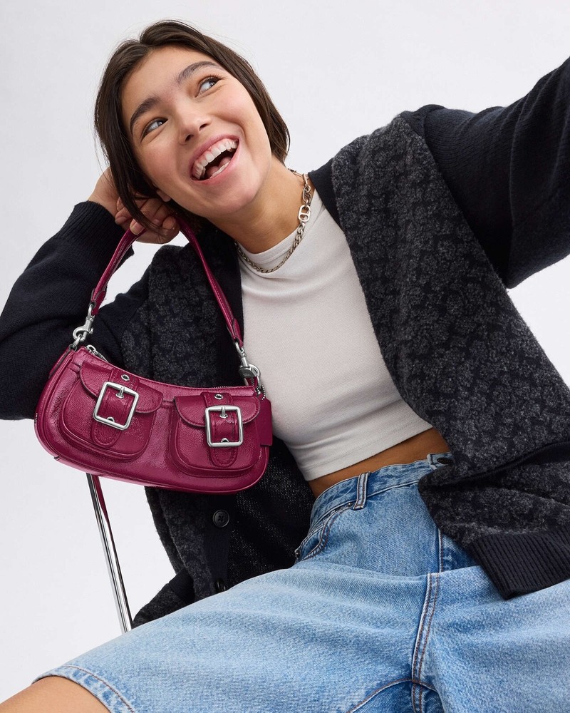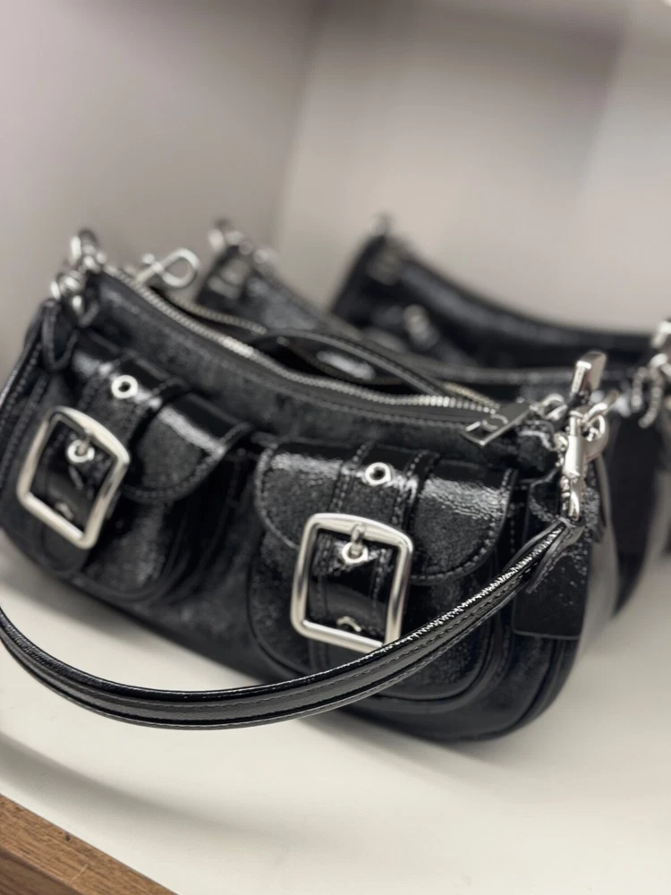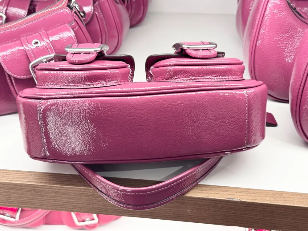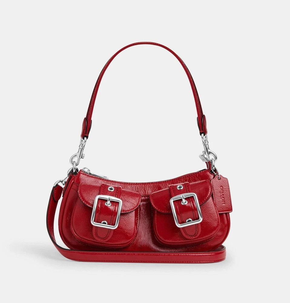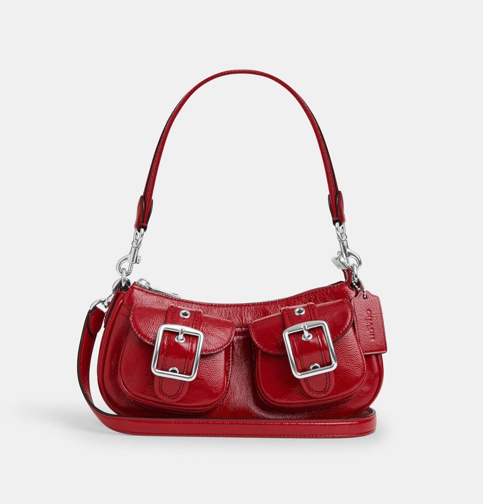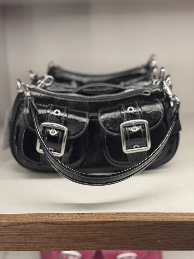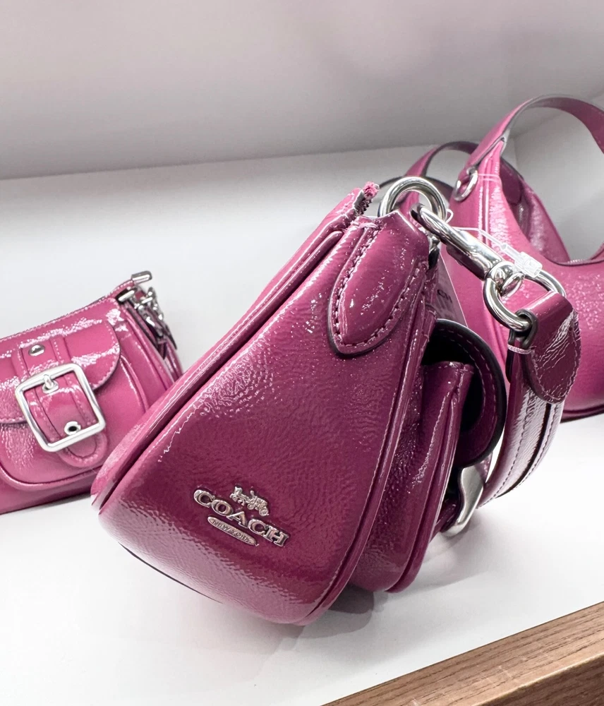 This Coach Ashton baguette is a dream! The glossy patent leather gives it a sleek, luxurious look, and the perfect compact size fits all my essentials without being bulky. Love the detachable strap—so versatile for shoulder or crossbody wear. The inside pockets keep me organized, and the zip closure adds security. The quality is amazing, and it still has the tags—definitely 100% authentic. A must-have for any bag lover!