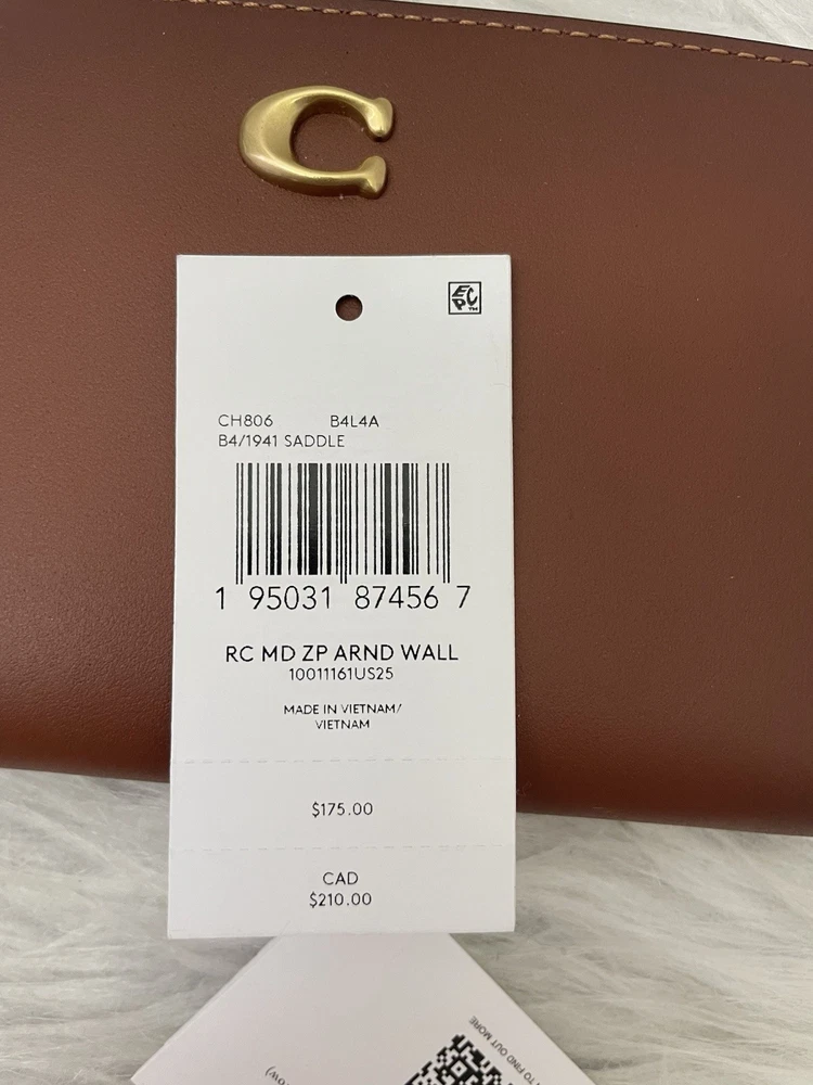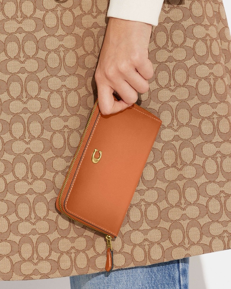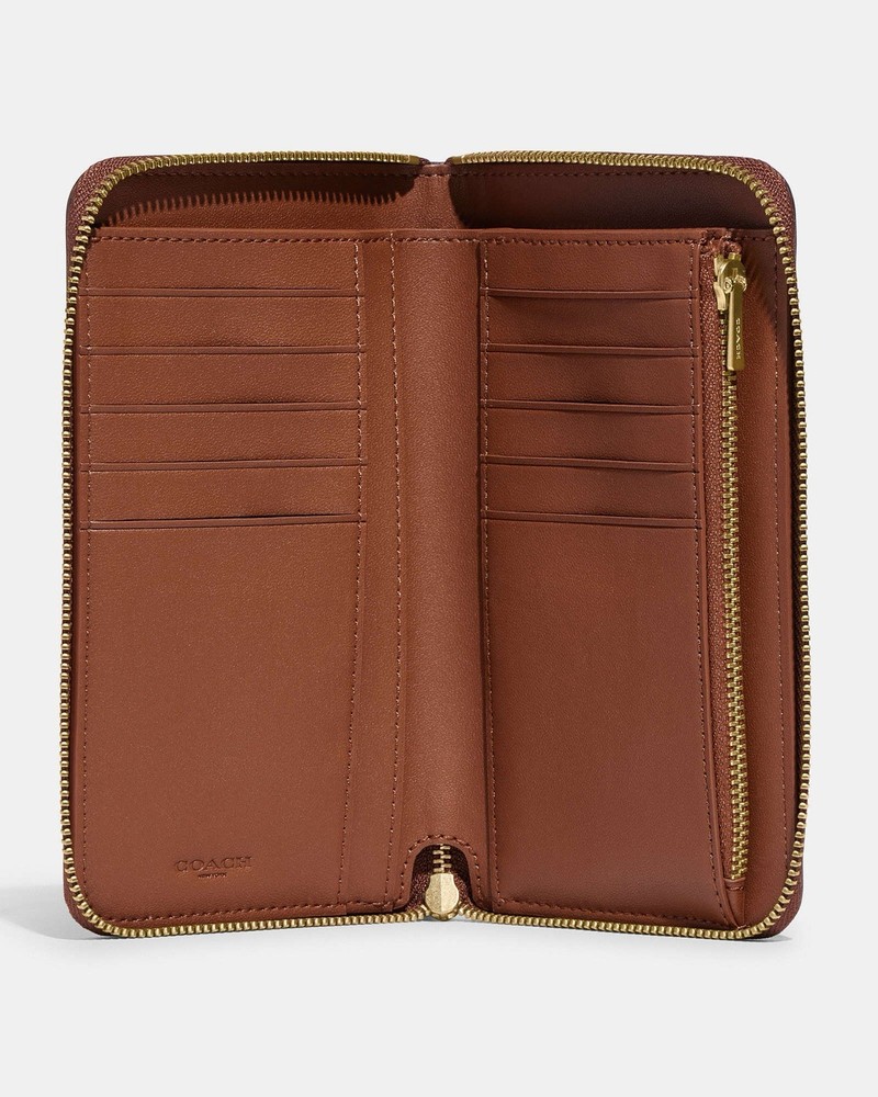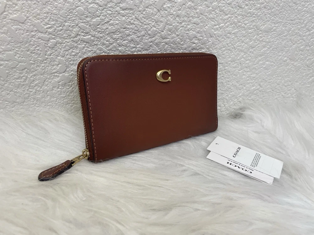 Coach Medium Zip Around Wallet Brand new with tags 100% Authentic Color: 1941 saddle Style Number CH806 Measurements Length: 6.5" Height: 3.75" Width: 0.75" Materials Refined calf leather Features Zip coin pocket Ten credit card slots Zip-around closure Full-length bill compartment Price is firm