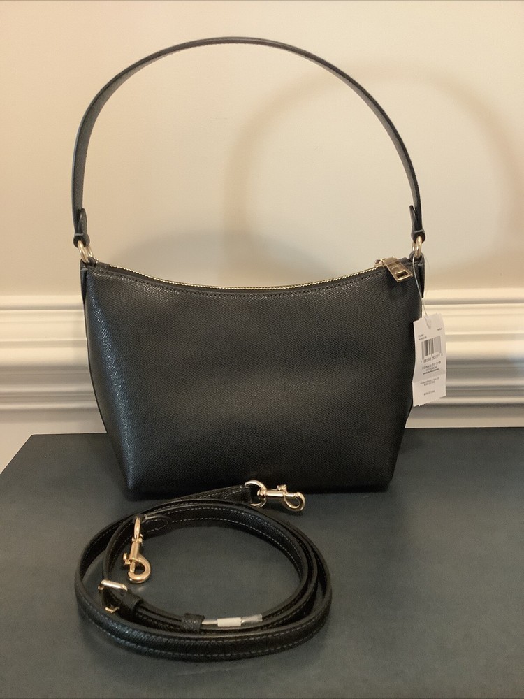 Coach Zip Top Shoulder Bag In Crossgrain Leather Black Style: CW390 Color: IM/Black Details Measurements Length: 7.75" Height: 6.75" Width: 4.25" Materials Crossgrain leather and printed coated canvas Fabric lining Handle Handle with 8.25" drop Strap Detachable strap with 22.5" drop for shoulder or crossbody wear Features Inside multifunction pocket Zip-top closure IN SMOKE AND PET FREE HOME!! ALL ITEMS ARE GUARANTEED 100% AUTHENTIC and BRAND NEW ! *Please note that the color in pictures might differ slightly due to lighting, flash and screen resolution.