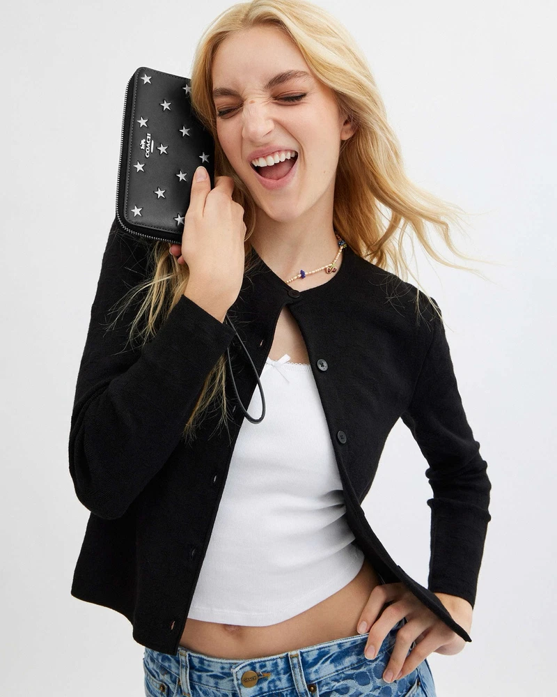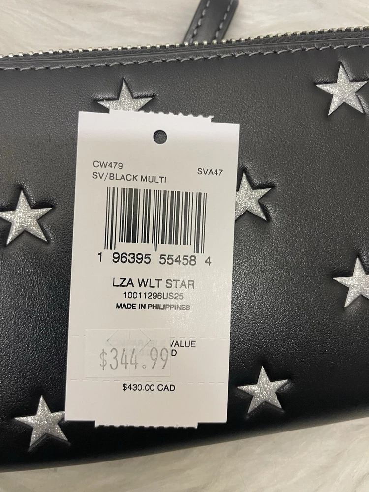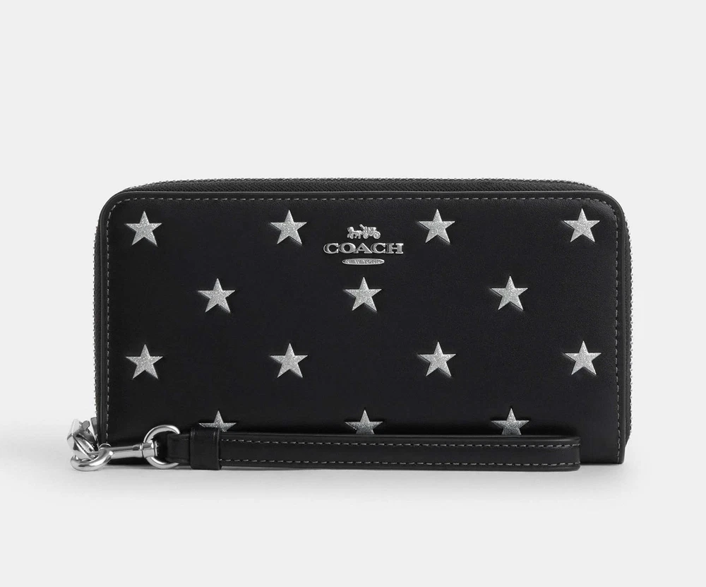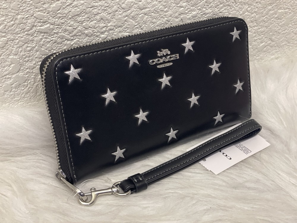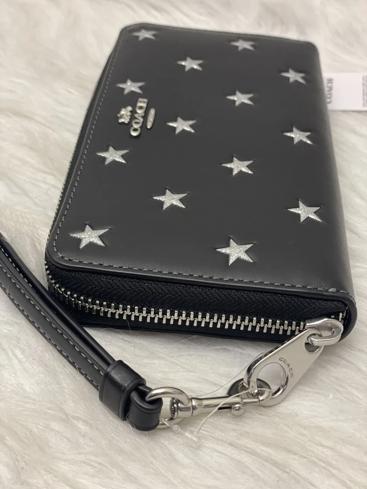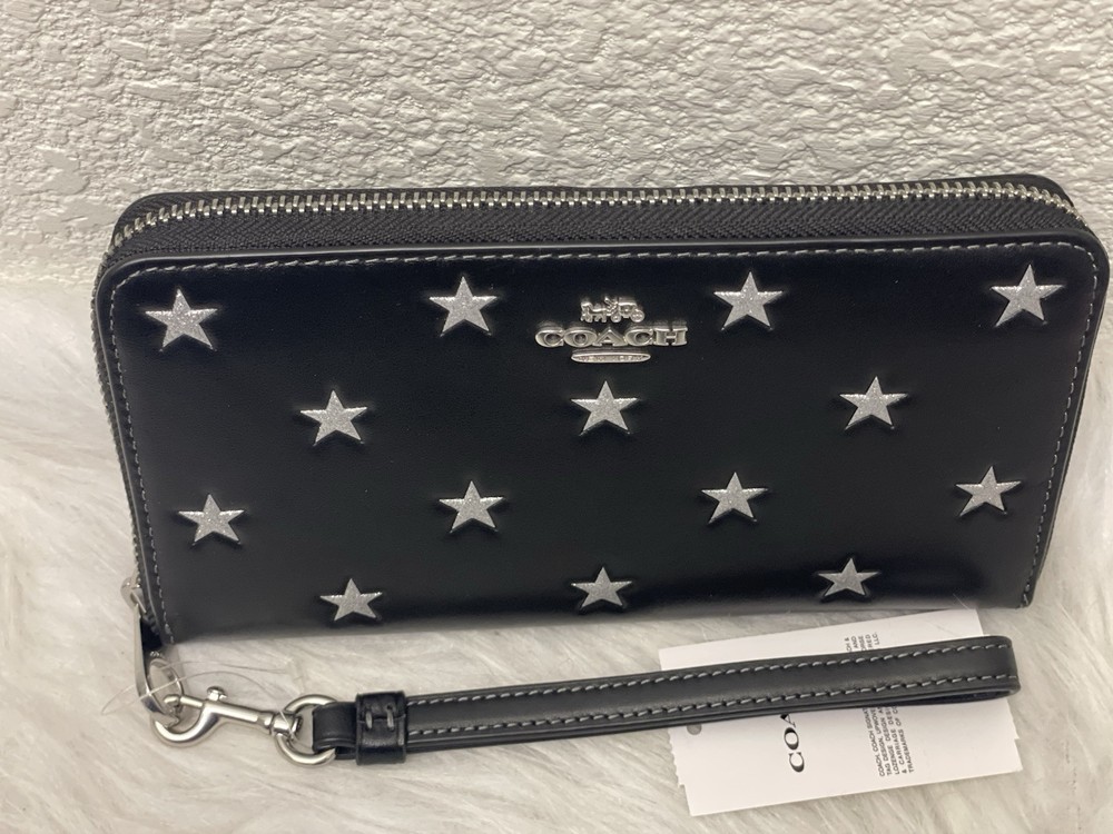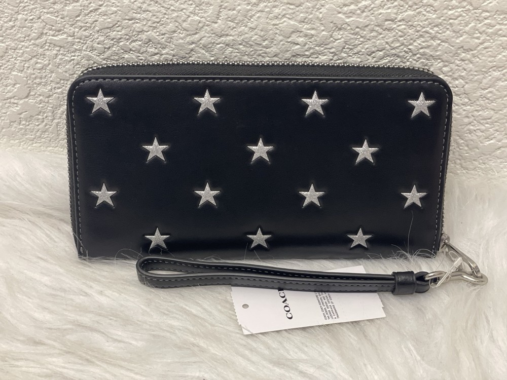 Coach Long Zip Around Wallet With Star Print 100% Authentic Brand new with tags Limited Edition Color: black multi product Details Style Number CW479 Measurements Length: 7.5" Height: 4.0" Width: 1.0" Materials Refined calf leather Strap Detachable wrist strap Features Inside zip coin pocket 14 credit card slots Zip-around closure Full-length bill compartments Fits all iPhone and Samsung Galaxy phones Price is firm