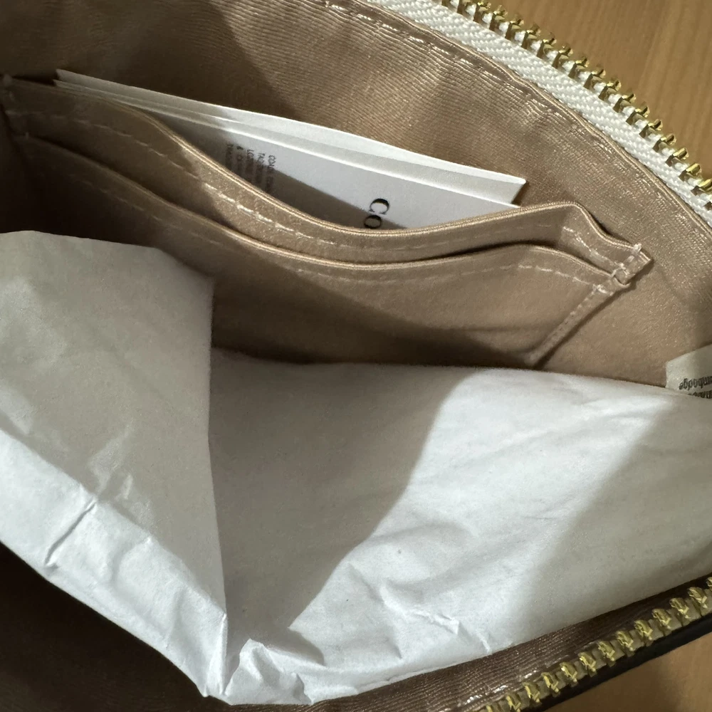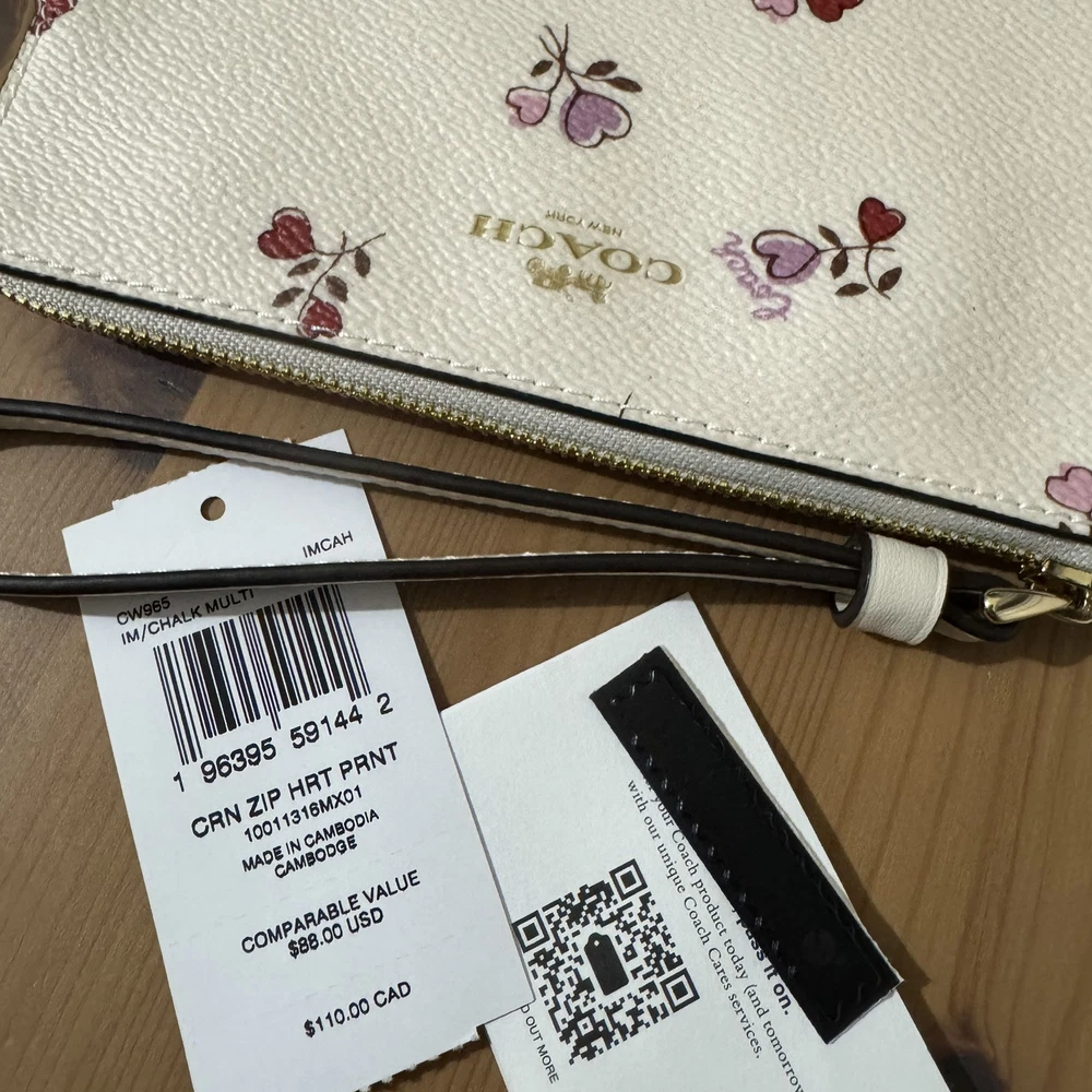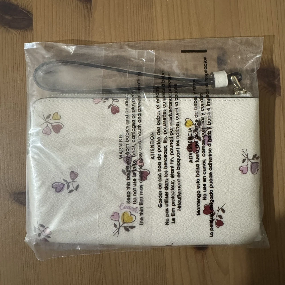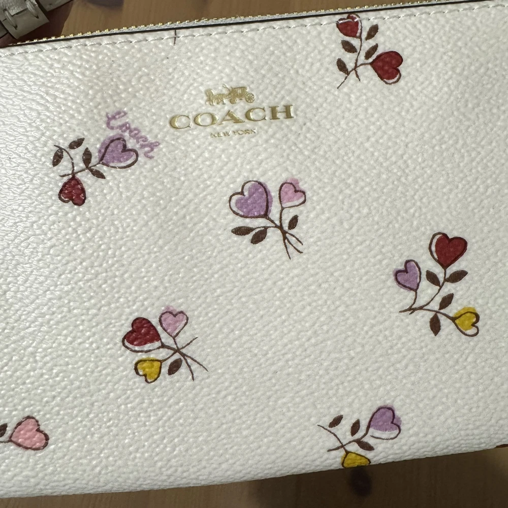 1. This wristlet is such a stylish little gem! The heart print adds a cute touch, and the gold accents make it feel luxe without being flashy. It’s surprisingly roomy—fits cards, cash, and my phone easily. The zip closure keeps everything secure, and the wrist strap is super handy for quick outings. Love the coated canvas—it feels durable yet sleek. Perfect for tossing in my tote or using solo. A total win for Coach fans!