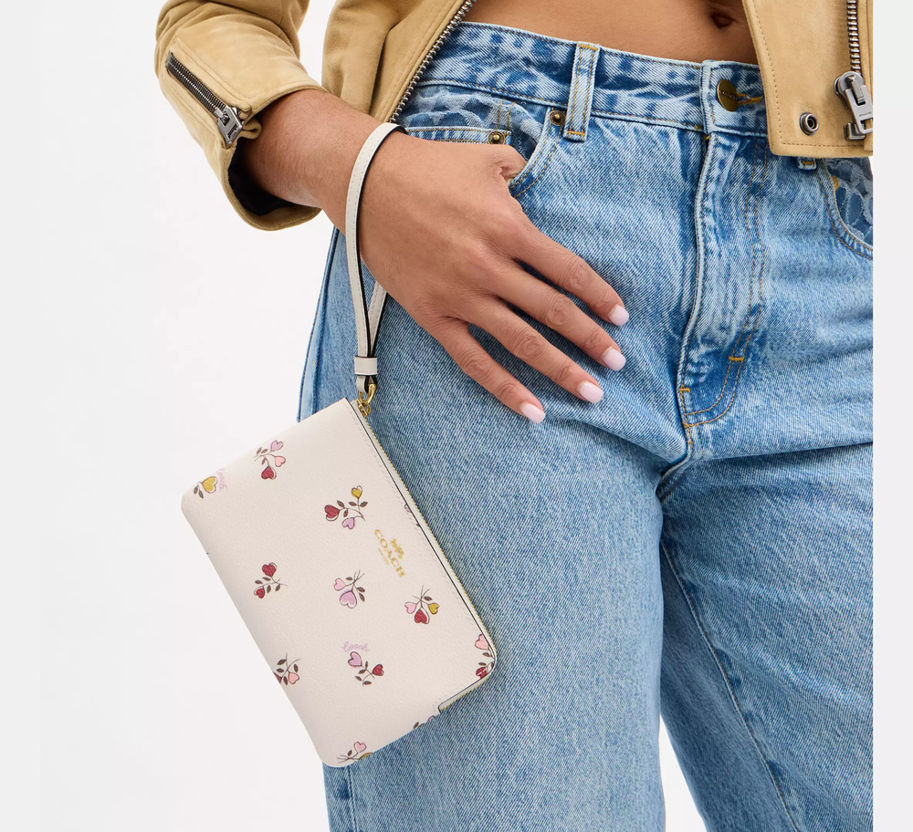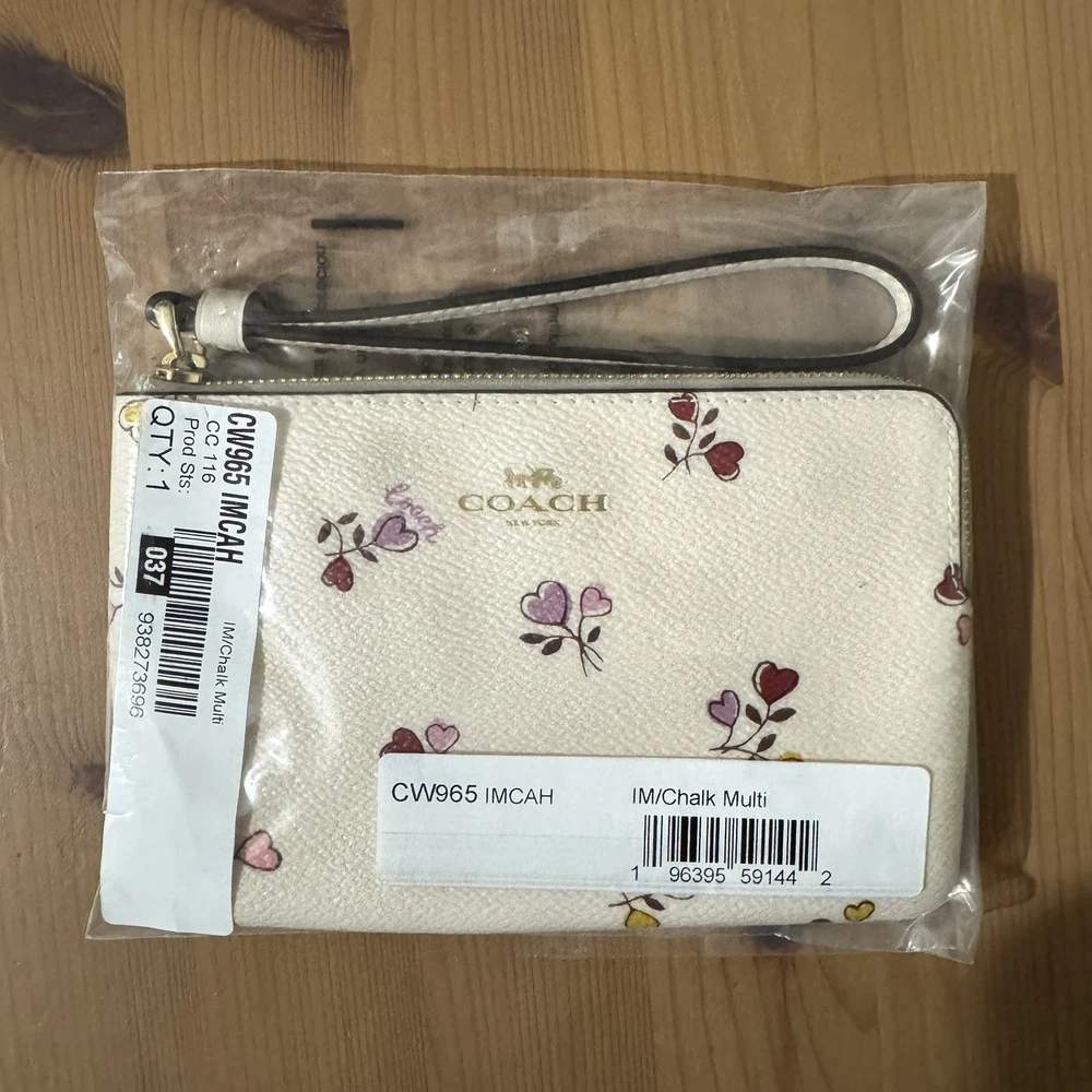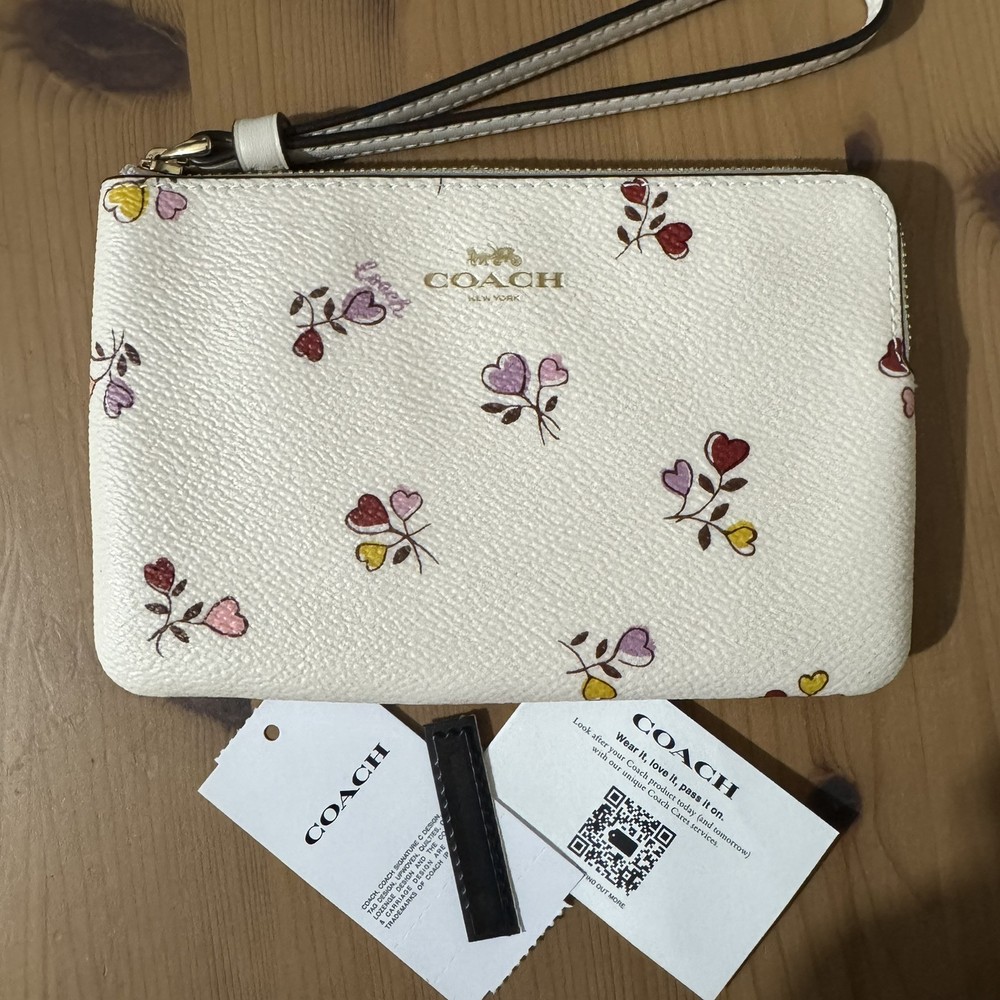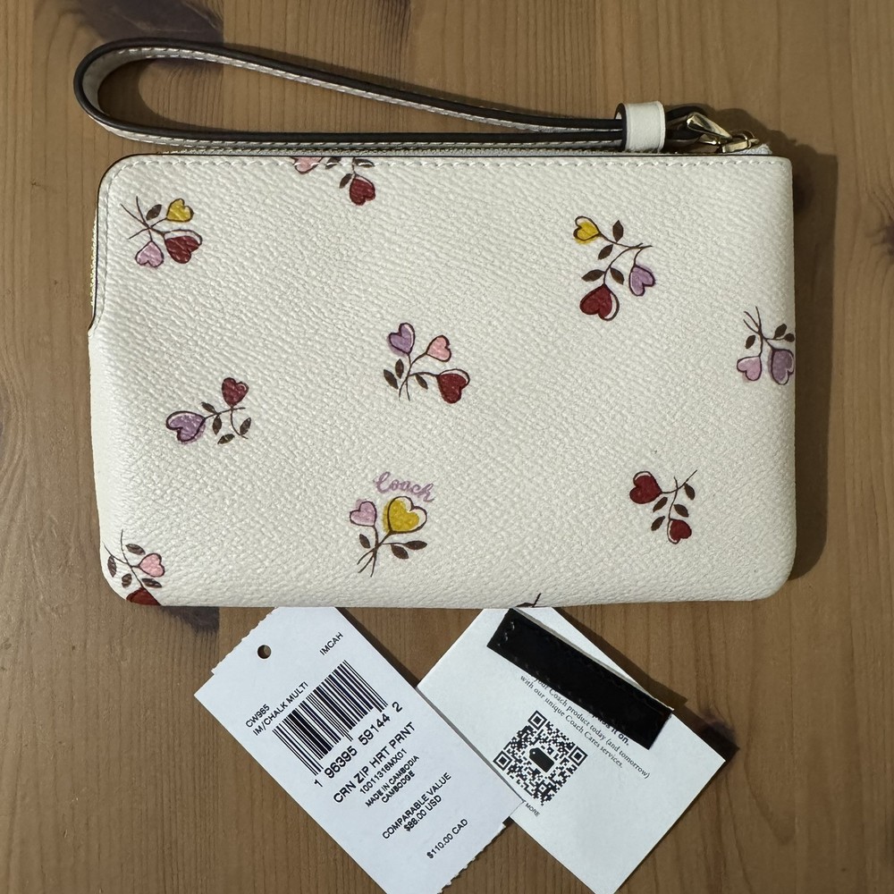 NWT Coach Corner Zip Wristlet Heart Print CW965 Chalk Multi