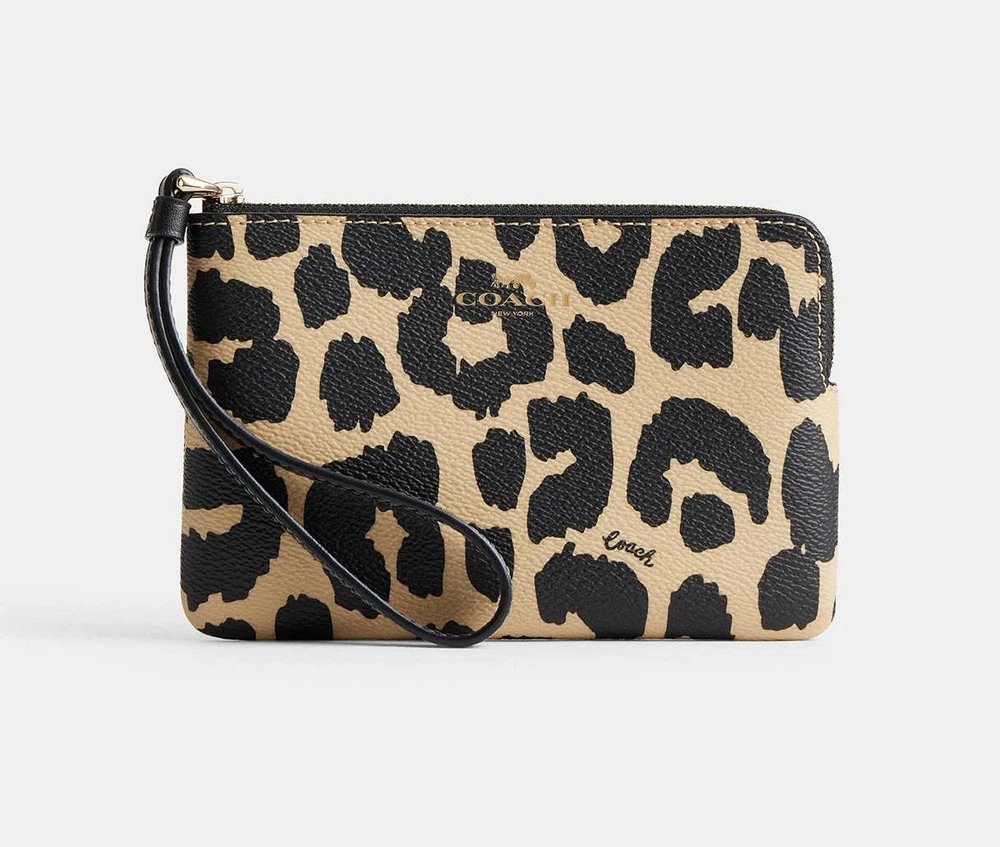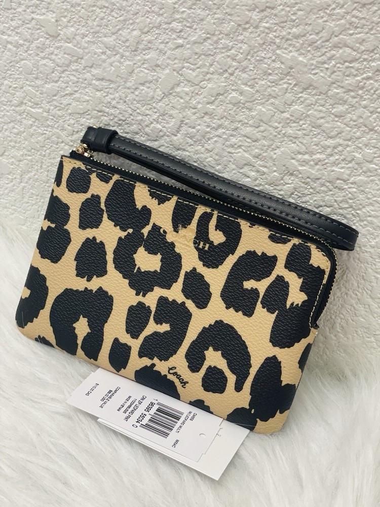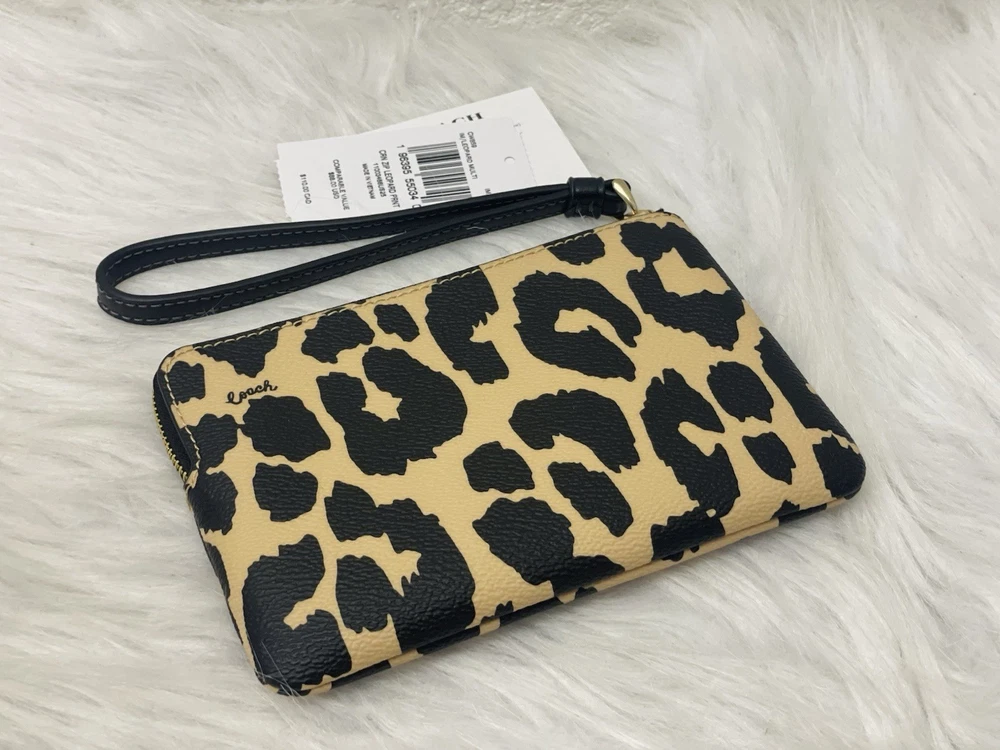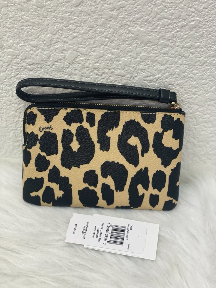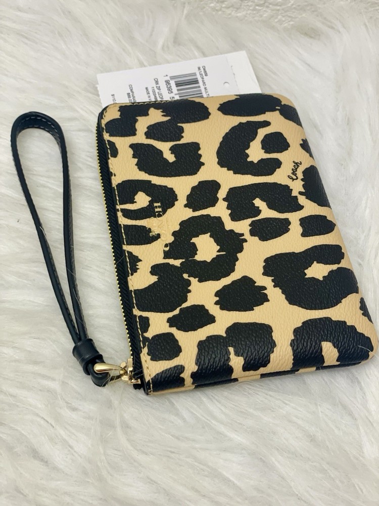 NWT Coach Corner Zip Wristlet With Leopard Print CW859 Color: Leopard Multi Limited Edition New with tags 100% authentic Style Number: CW859 Measurements Length: 6.25" Height: 4.0" Width: 0.5" Materials Printed coated canvas Fabric lining Strap Wrist strap attached Features Zip-top closure Two credit card slots Editor's Notes Add a wild touch to your everyday look with the Corner Zip Wristlet with Leopard Print. Crafted of printed coated canvas and featuring a bold (yet take-anywhere) print, this wristlet is both durable and eye-catching. Whether you're running errands or meeting up with friends, this wristlet adds a playful vibe to any outfit while keeping your essentials secure and handy.