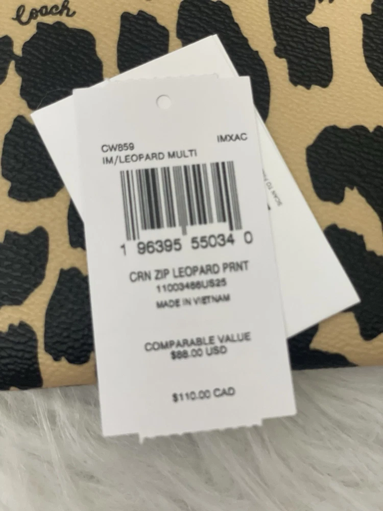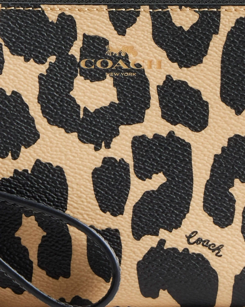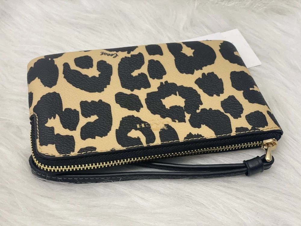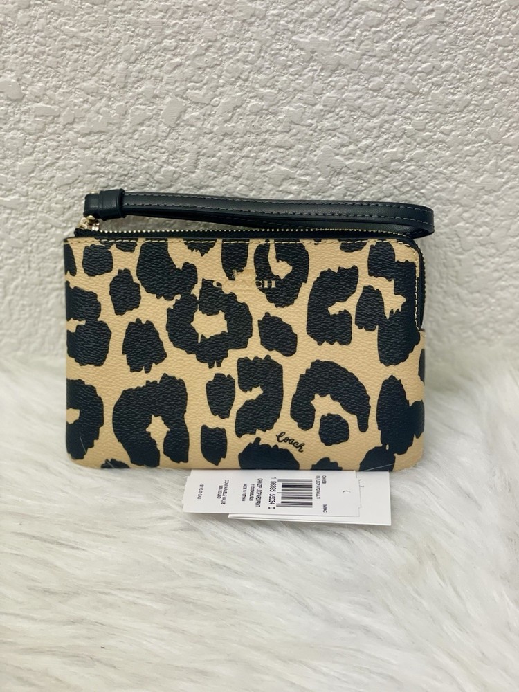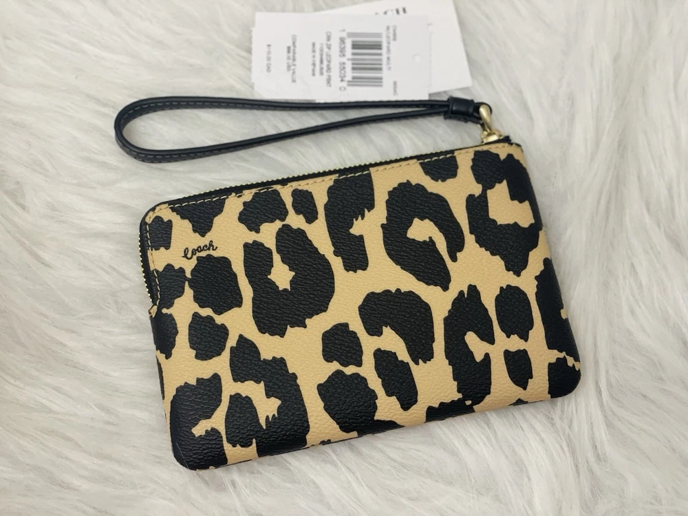 NWT Coach Corner Zip Wristlet With Leopard Print CW859 Color: Leopard Multi Limited Edition New with tags 100% authentic Style Number: CW859 Measurements Length: 6.25" Height: 4.0" Width: 0.5" Materials Printed coated canvas Fabric lining Strap Wrist strap attached Features Zip-top closure Two credit card slots Editor's Notes Add a wild touch to your everyday look with the Corner Zip Wristlet with Leopard Print. Crafted of printed coated canvas and featuring a bold (yet take-anywhere) print, this wristlet is both durable and eye-catching. Whether you're running errands or meeting up with friends, this wristlet adds a playful vibe to any outfit while keeping your essentials secure and handy.