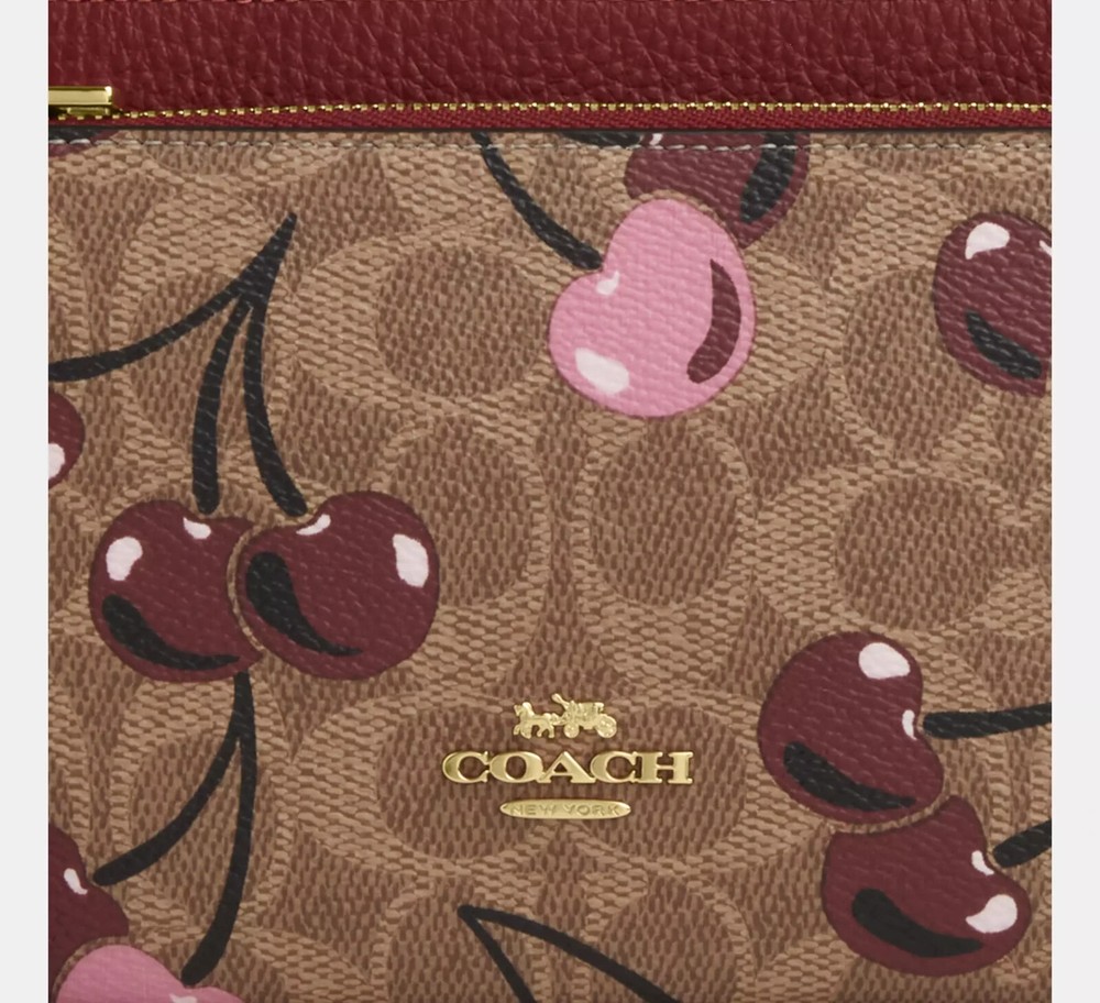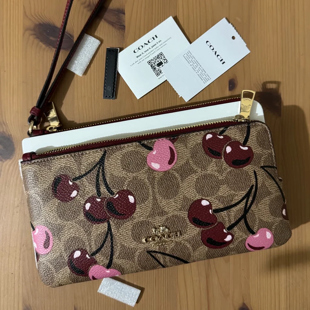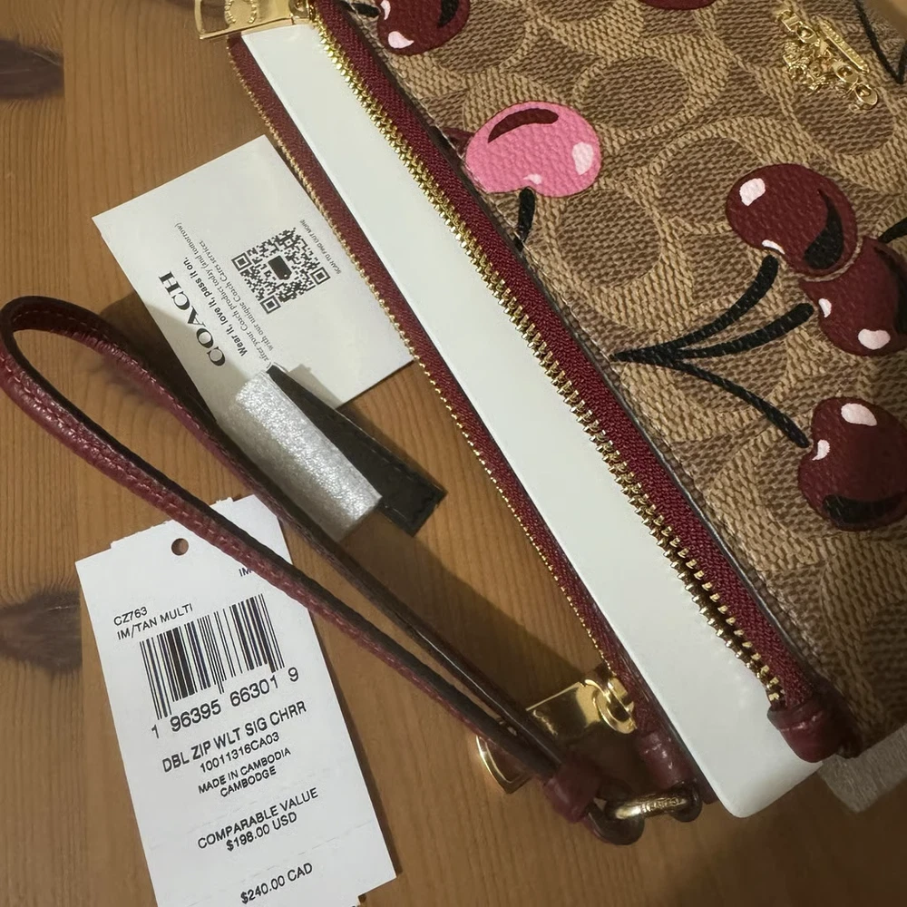 Bag came brand new. It's so cute! I was disappointed that it wasn't exactly like in the picture. The one I got had the cherries upside down which isn't what I was expecting. That's my bad though for not just asking the seller first. I still love it though. My first coach bag! Good price and amazing seller. Thank you!
