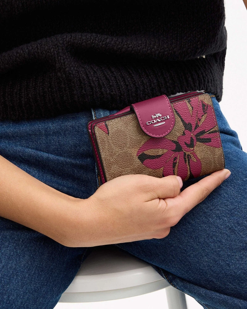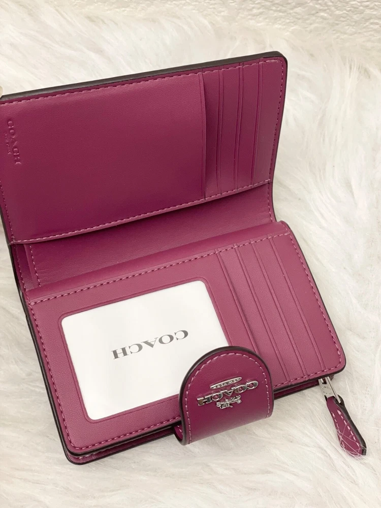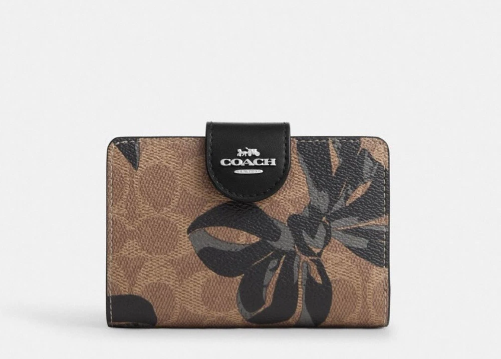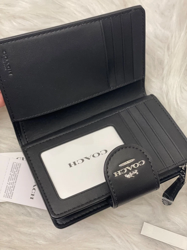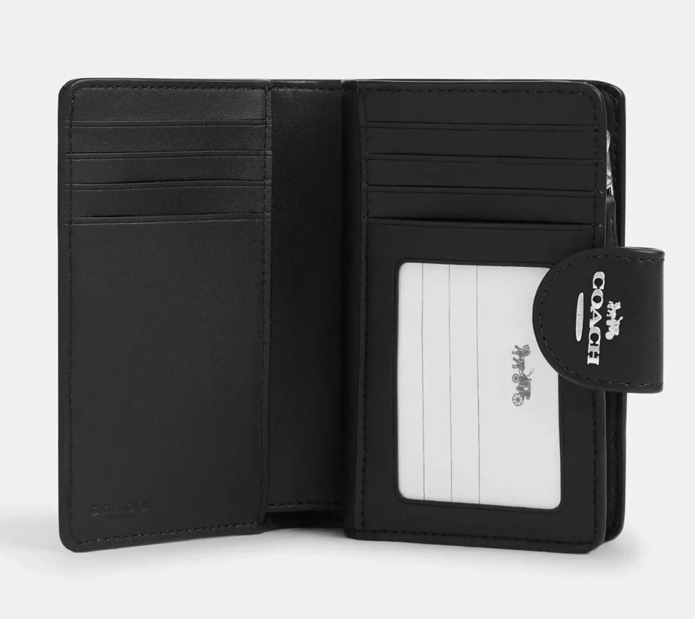 NWT COACH SIGNATURE BOW CORNER ZIP MEDIUM WALLET Fast shipping Brand new with tags 100% Authentic Style Number CZ340 Measurements Length: 5.0" Height: 3.5" Width: 0.5" Materials Signature coated canvas Features Zip coin pocket Seven credit card slots Snap closure Bill compartment Additional Details ID window Price is firm *NOTE: Bow print is randomly arranged, so each wallets may look slightly different m