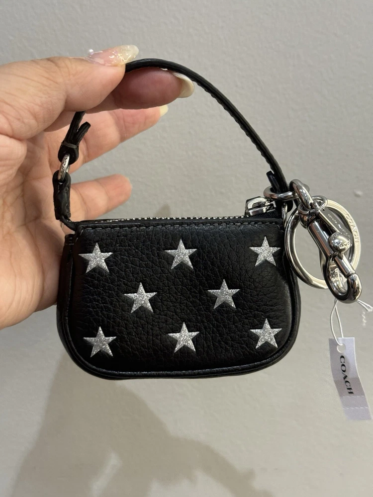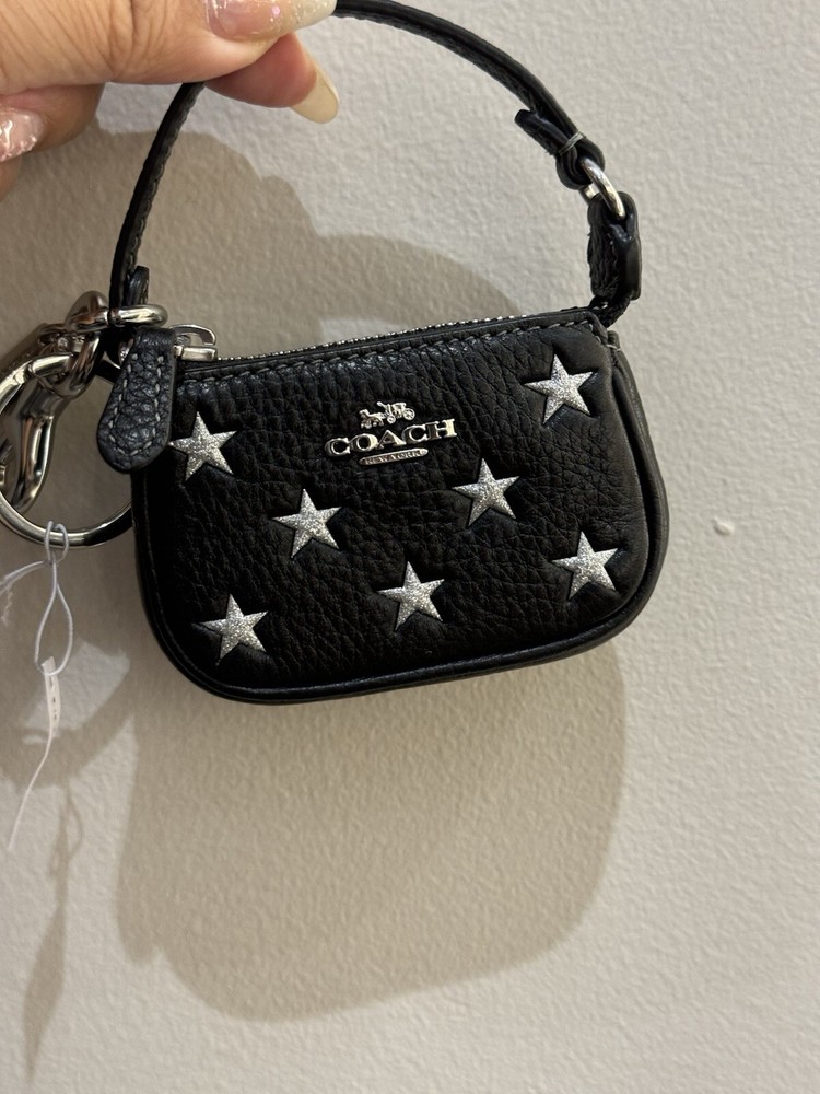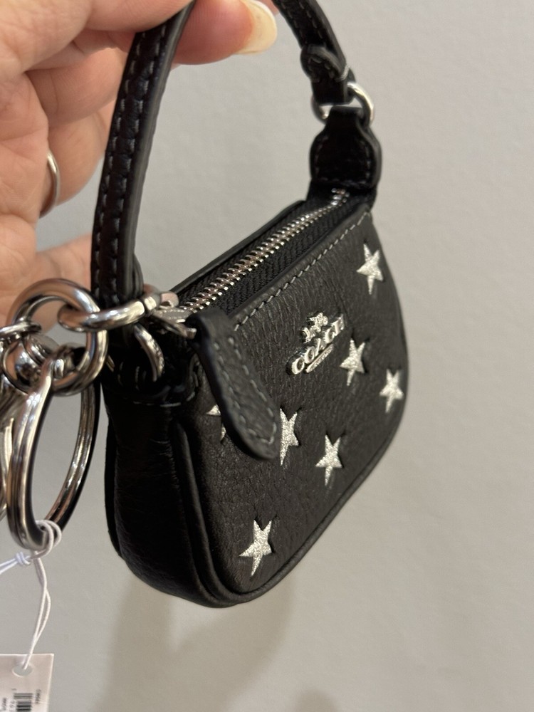 Coach Mini Nolita Bag Charm With Star Print Brand new with tags 100% Authentic Coach Mini Nolita Bag Charm Key Chain - CW542 Black Refined Pebble Leather w/Star Print - NWT Free Shipping Refined pebble leather Fabric lining Length: 3.25" / Height: 2.25" / Width: 1.0" Zip-top closure Handle with 2.25" drop Attached split key ring and dogleash clip MSRP $138 Price is firm