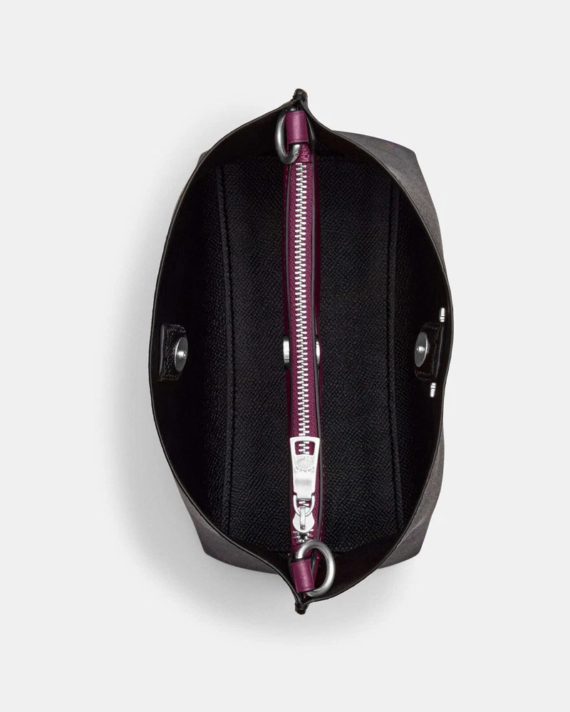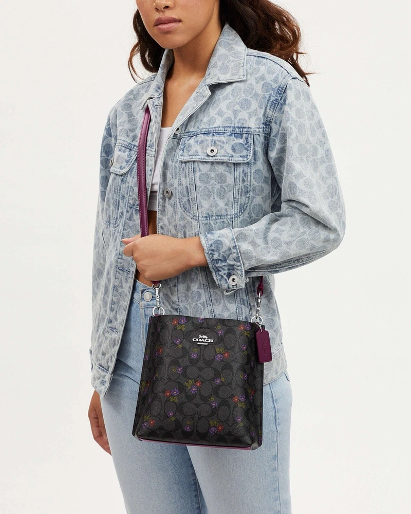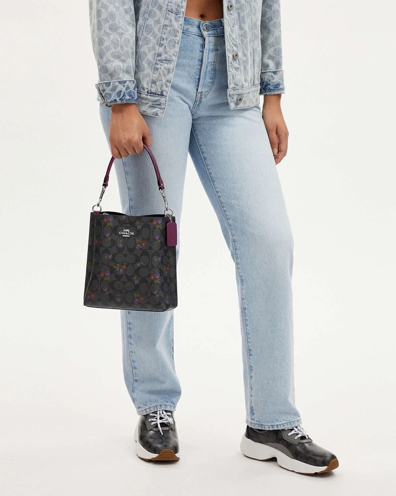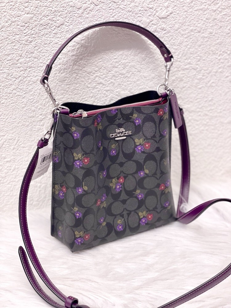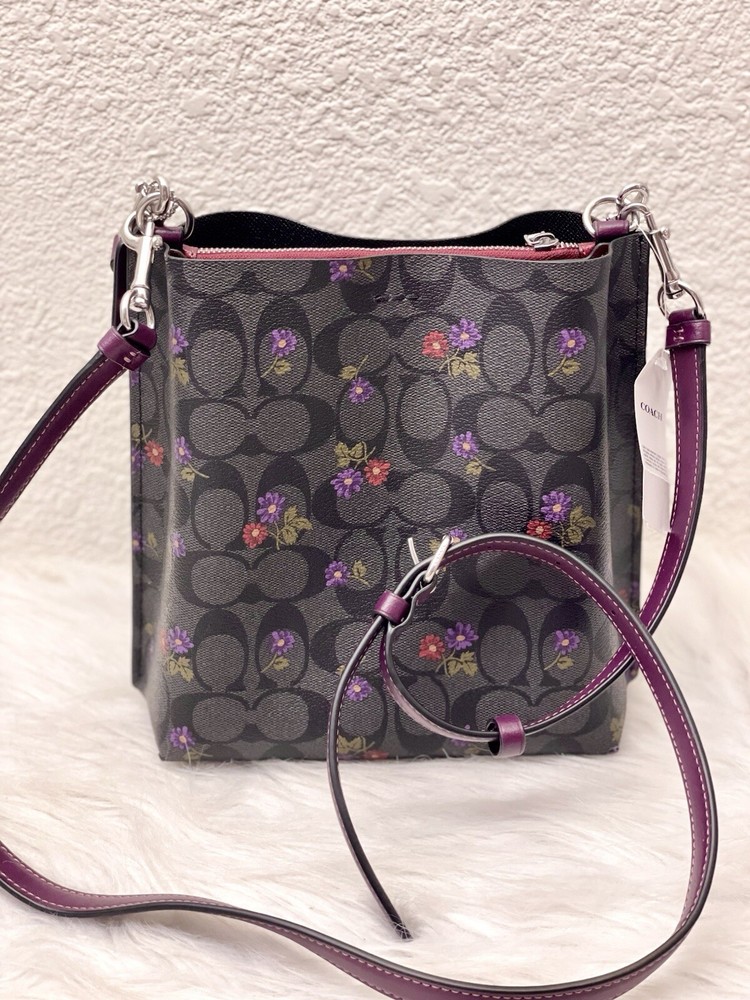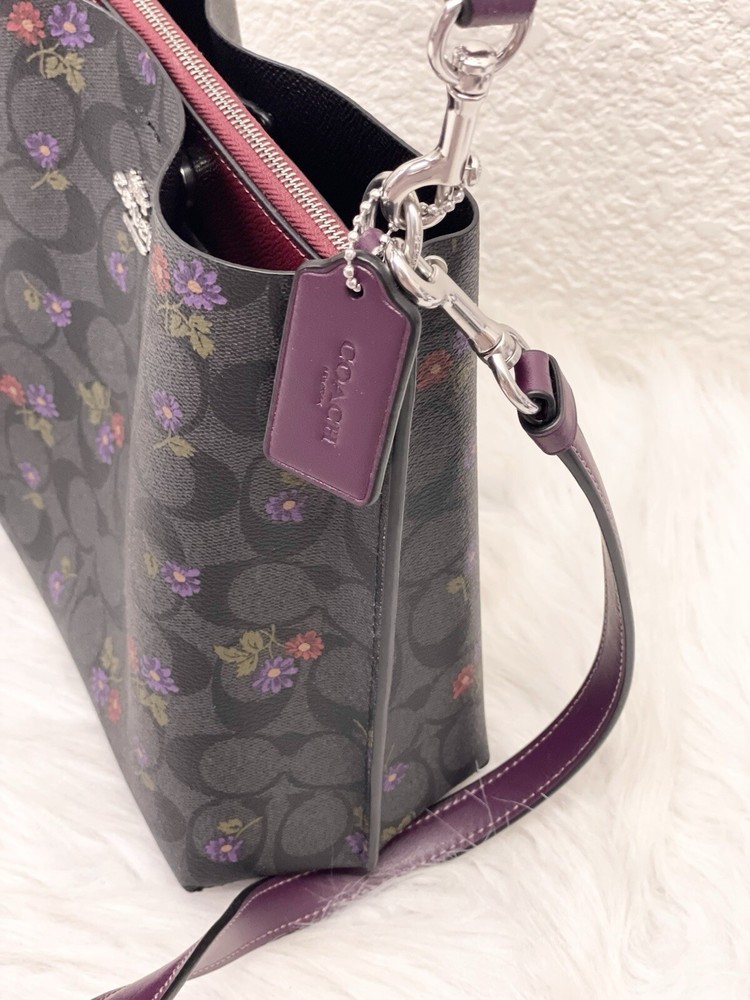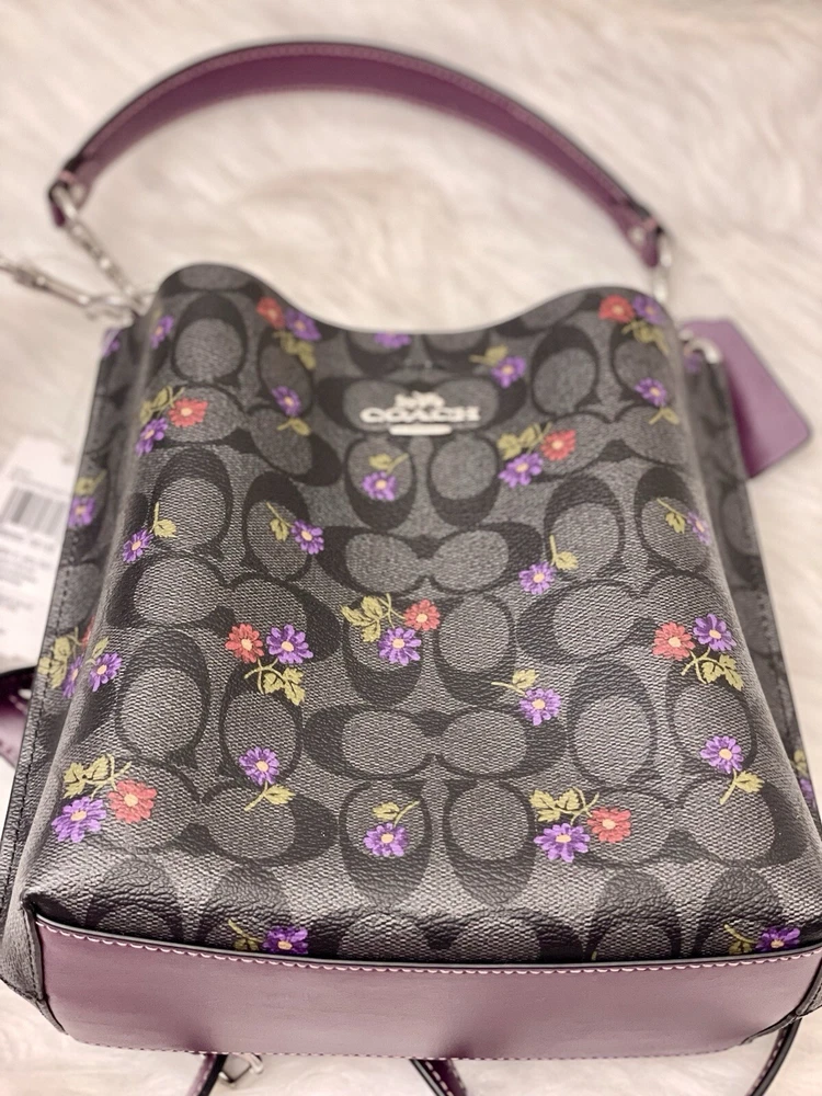 Coach Mollie Bucket Bag 22 In Signature Canvas With Country Floral Print Brand new with tags 100% Authentic Limited Edition Color:Silver/Graphite/Deep Berry Product Details Signature coated canvas and smooth leather Center zip compartment Snap closure Detachable handle with 6 3/4" drop Detachable strap with 22" drop for shoulder or crossbody wear 8" (L) x 8 1/2" (H) x 4" (W) Style No. CN144 Price is firm