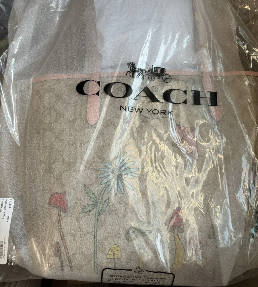Bag came brand new. It's so cute! I was disappointed that it wasn't exactly like in the picture. The one I got had the cherries upside down which isn't what I was expecting. That's my bad though for not just asking the seller first. I still love it though. My first coach bag! Good price and amazing seller. Thank you!