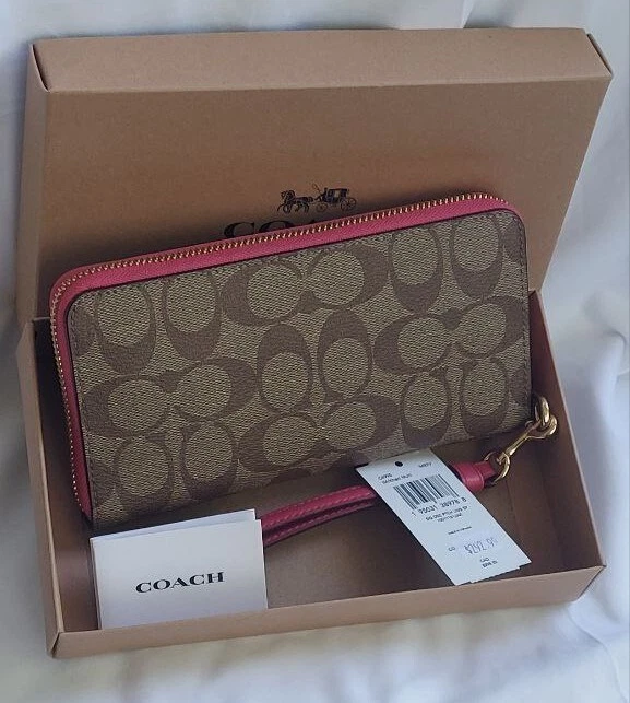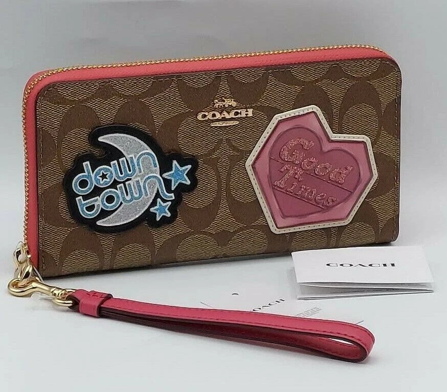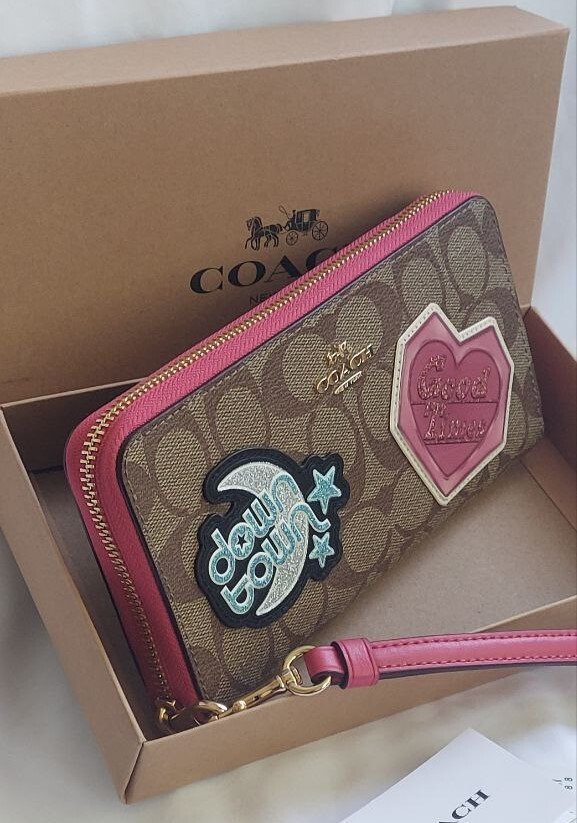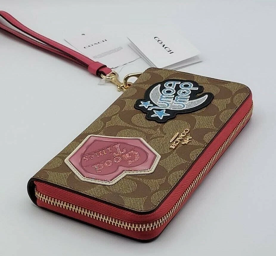NWT Coach C6995 giftable Signature Disco Patch Long Zip Around Wristlet Wallet Color: IM/Khaki Multi Details: Signature Canvas and Smooth leather Twelve credit card slots Full-length bill compartments Inside zip coin pocket Zip-around closure Detachable wrist strap 7 1/2" (L) x 4" (H) x 1" (W) 👉Please review all photos, dimensions and descriptions thoroughly before your purchase.👈 Thank you! Please feel free to contact me if you have any question about this product before your purchase! I respond very soon. *Please note that the color in pictures might differ slightly due to lighting, flash and screen resolution.