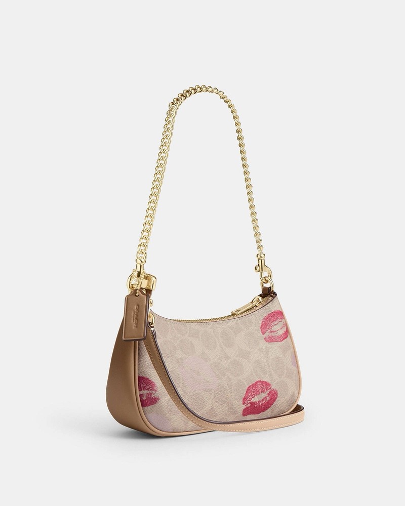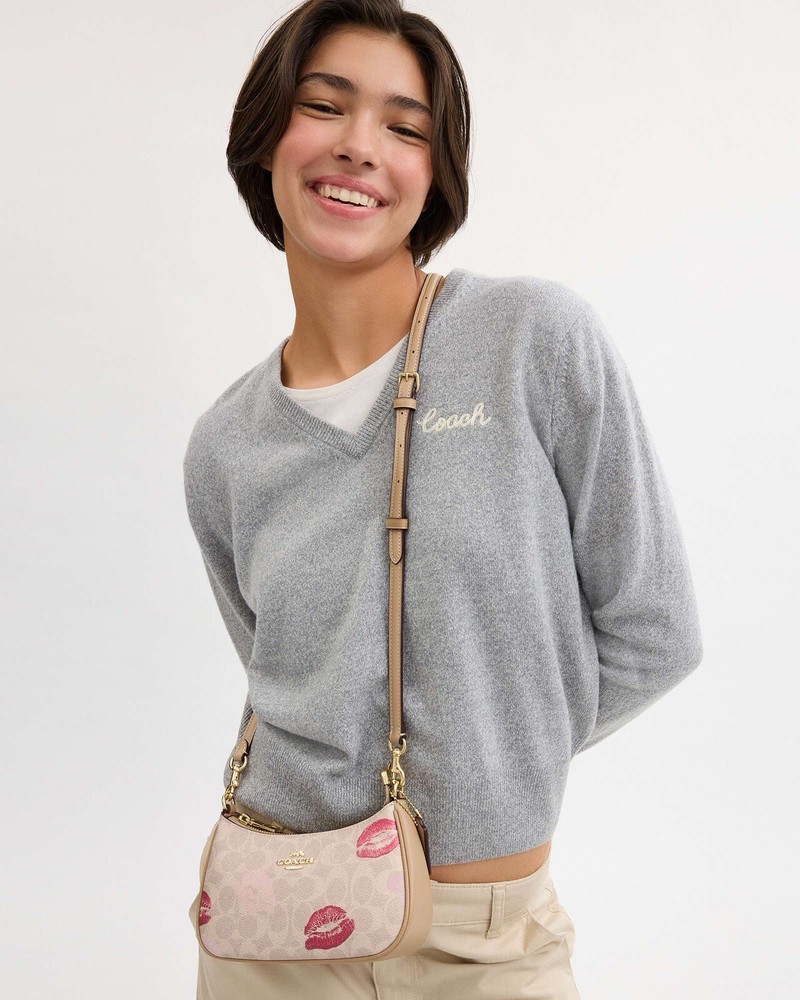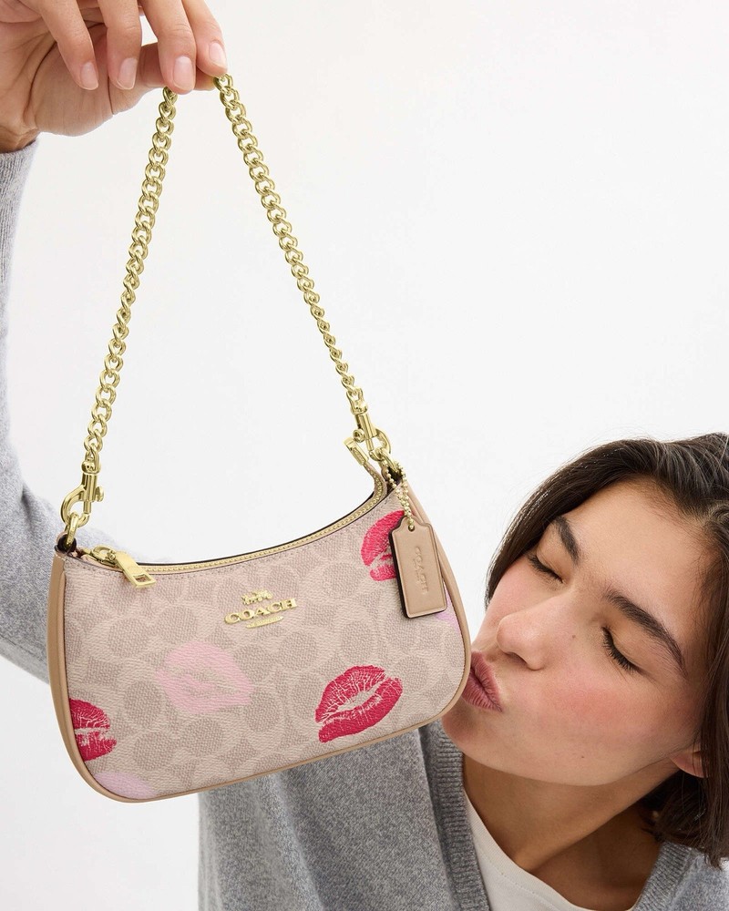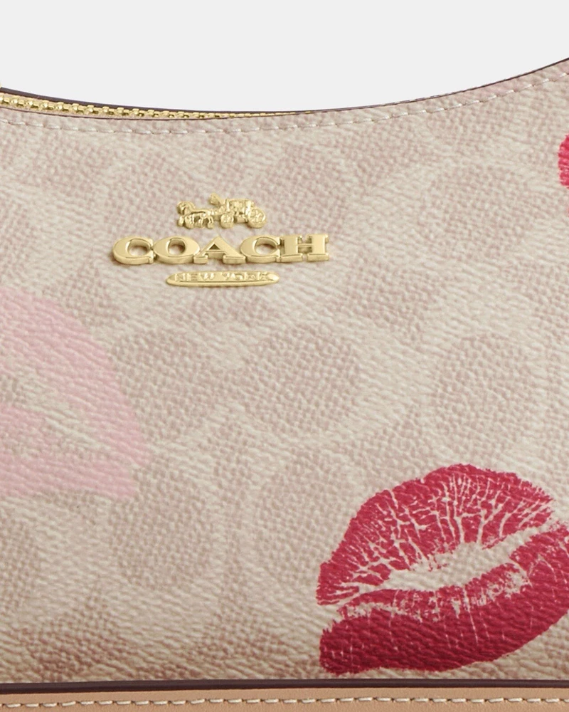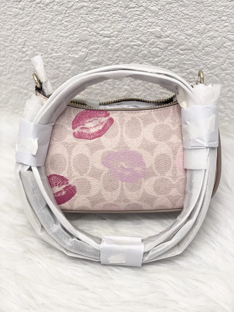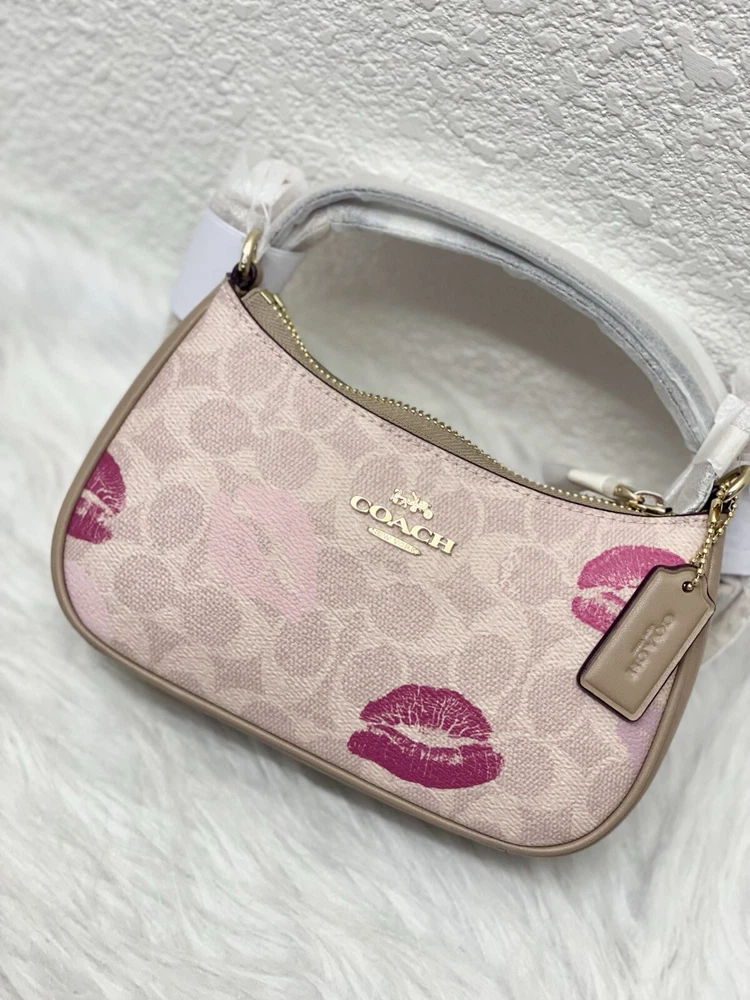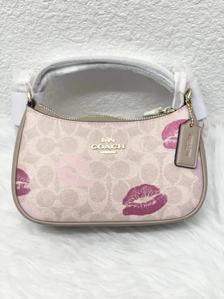 Coach Teri Mini Crossbody Bag In Signature Canvas With Lips Print Brand new with tags Come with original packaging Price is firm Confidence to shop! Guaranteed Authentic ~ Purchased directly from Coach! Product Details Style Number CZ943 Measurements Length: 7.75" Height: 5.0" Width: 2.25" Materials Signature coated canvas Fabric lining Strap Detachable short strap with 8.75" drop Detachable long strap with 22.5" drop for shoulder or crossbody wear Features Inside snap pocket Two credit card slots Zip-top closure Additional Details Trim partially made with recycled leather fiber layer *Please note that the color in pictures might differ slightly due to lighting, flash and screen resolution.
