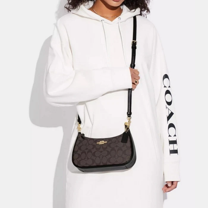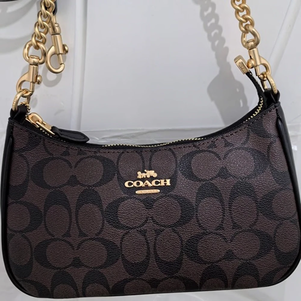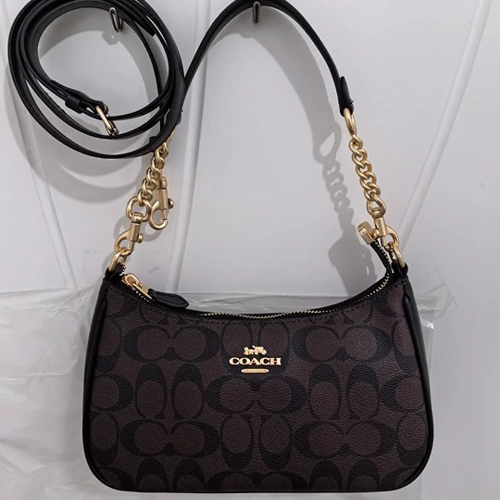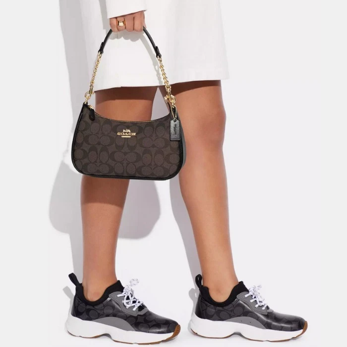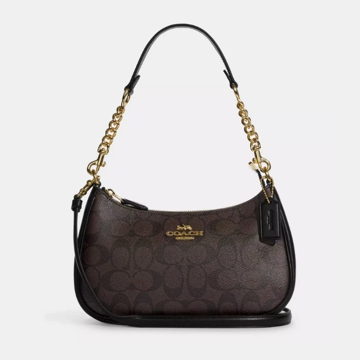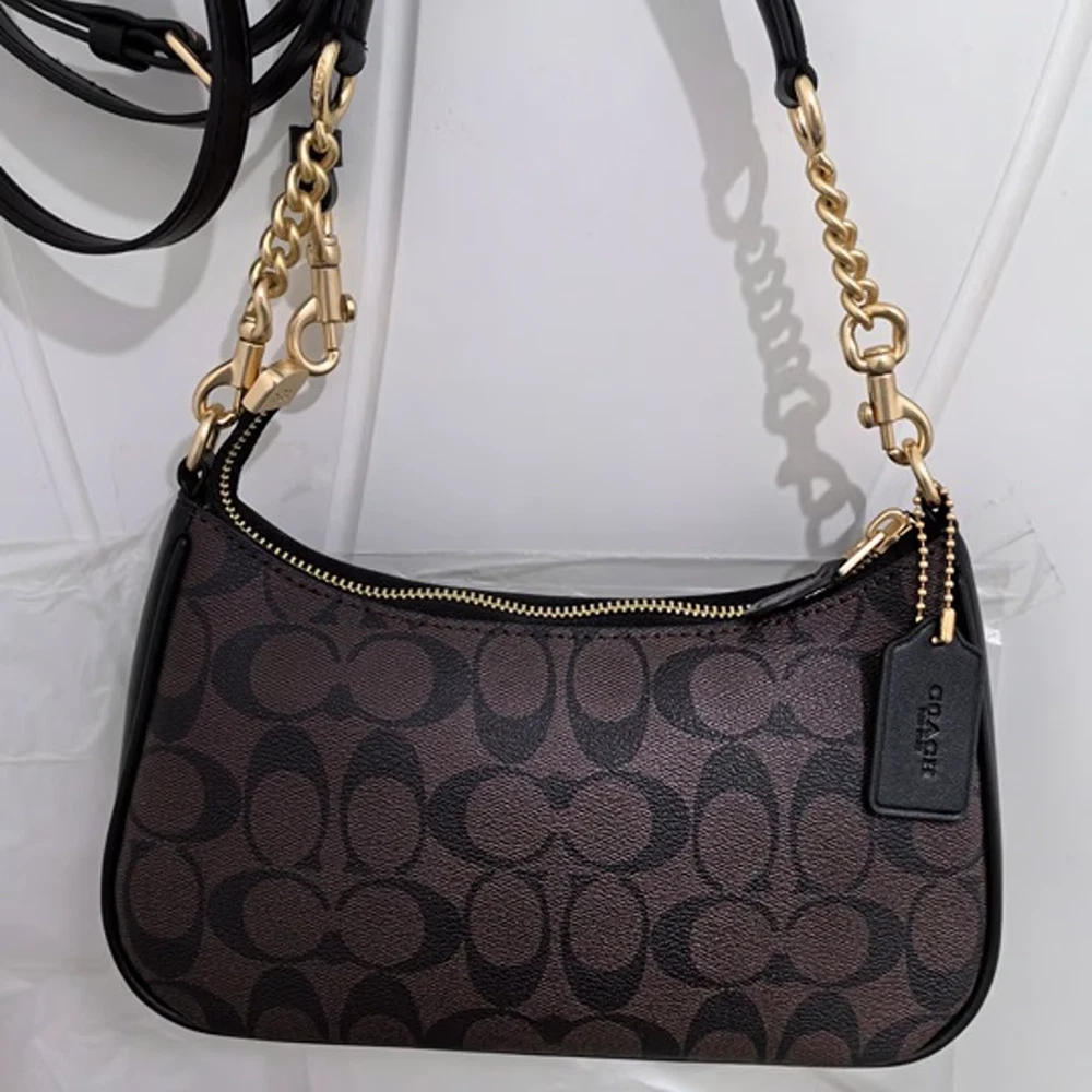 NWT Coach Teri Shoulder Bag In Signature Canvas Leather Vintage Black Brown