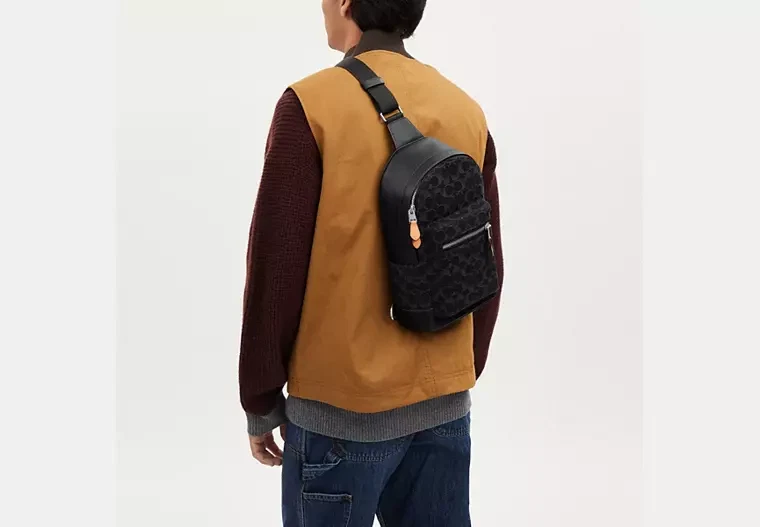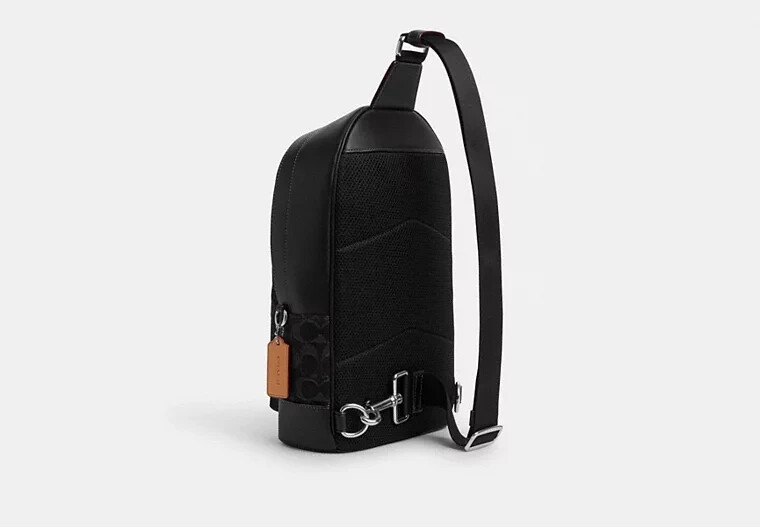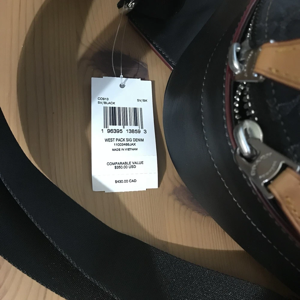 Silver/BlackSignature denim and smooth calf leatherInside multifunction pocketZip closure, fabric liningOutside zip pocketAdjustable shoulder strap with 44" length for crossbody wear7 3/4" (L) x 13" (H) x 3 1/4" (W)Style No. CO913