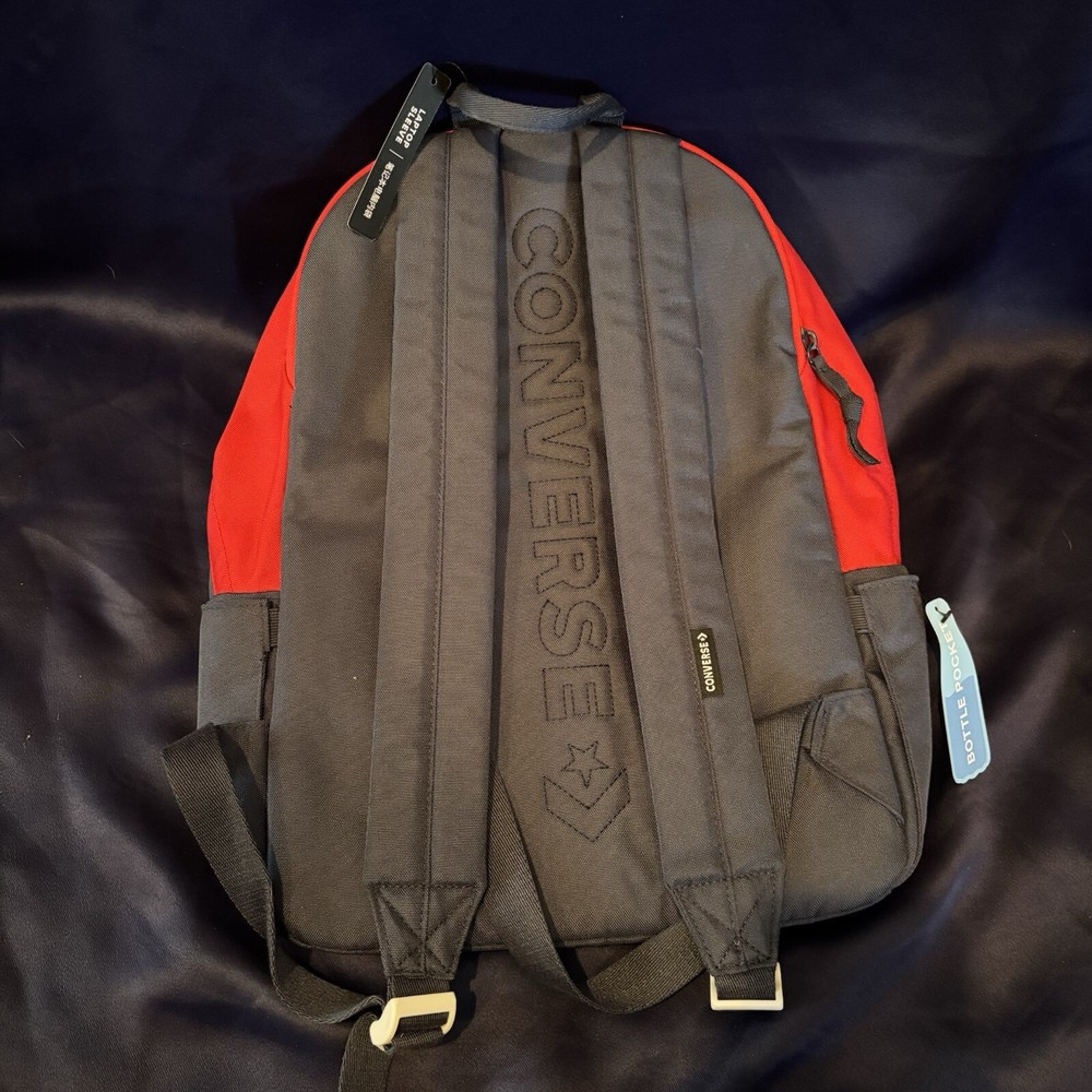 The New NWT Converse Red & Blue Varsity Backpack is a medium-sized backpack designed for Unisex Adults. It features a multicolor exterior with a padded laptop pocket, making it ideal for school or everyday use. The backpack is made of polyester material and has a width of 17 inches, providing enough space for carrying essentials while on the go. Perfect for those who value both style and functionality, this Converse backpack is a trendy and practical accessory for anyone in need of a reliable bag for their daily activities.